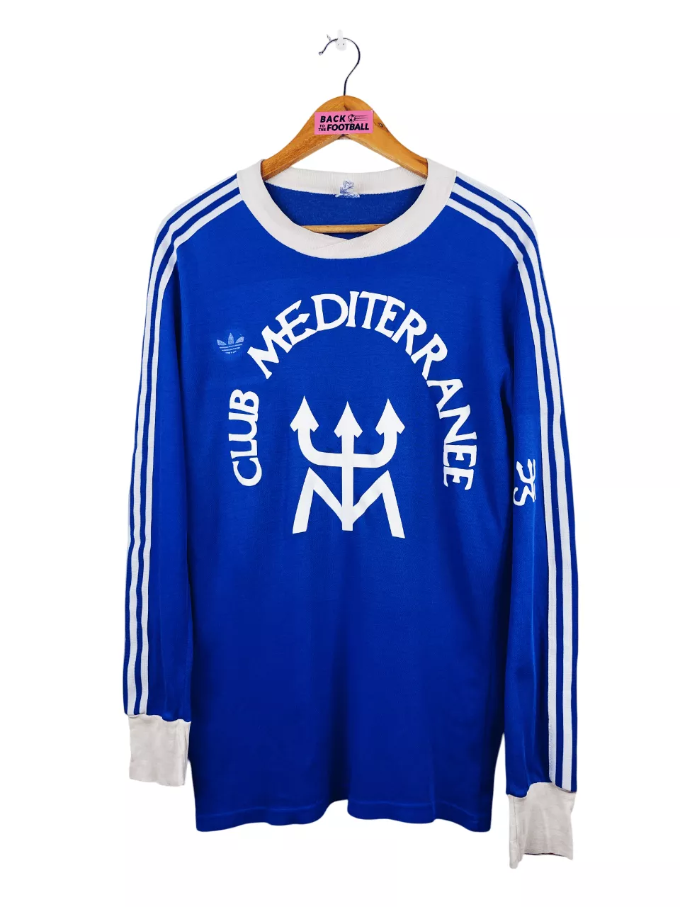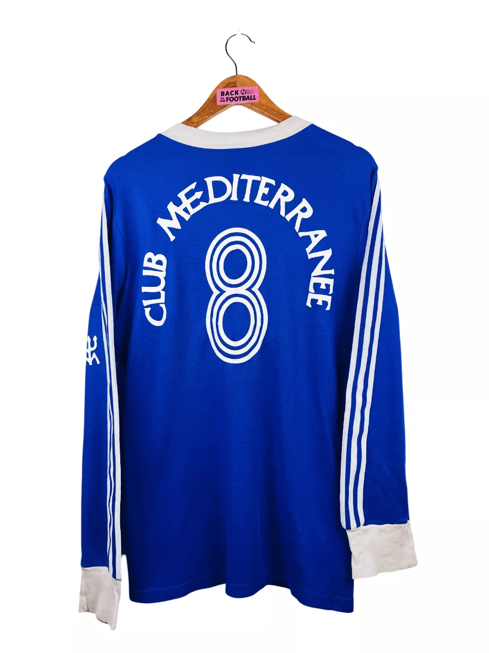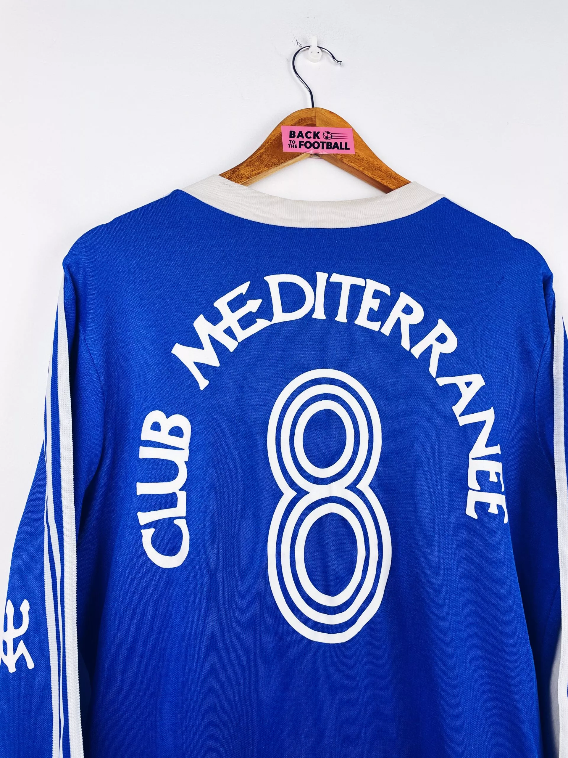 Taille : M Largeur : 50cm (aisselle à aisselle) Longueur : 72cm (base du col au bas) Si tu veux plus de détails, tu peux nous contacter par mail ou sur les réseaux 😉 Etat : 7.5/10, très bon état hormis le logo Adidas abimé et quelques légers accrocs sur la manche (voir photo) Le maillot : maillot vintage domicile du SC Bastia 1978/1979 manches longues. Il s’agit d’un template Adidas d’époque sur lequel a été posé plus tard la feutrine du sponsor Club Méditerranée et le numéro 8. Joli maillot rétro de Bastia ! Histoire : le SEC Bastia…