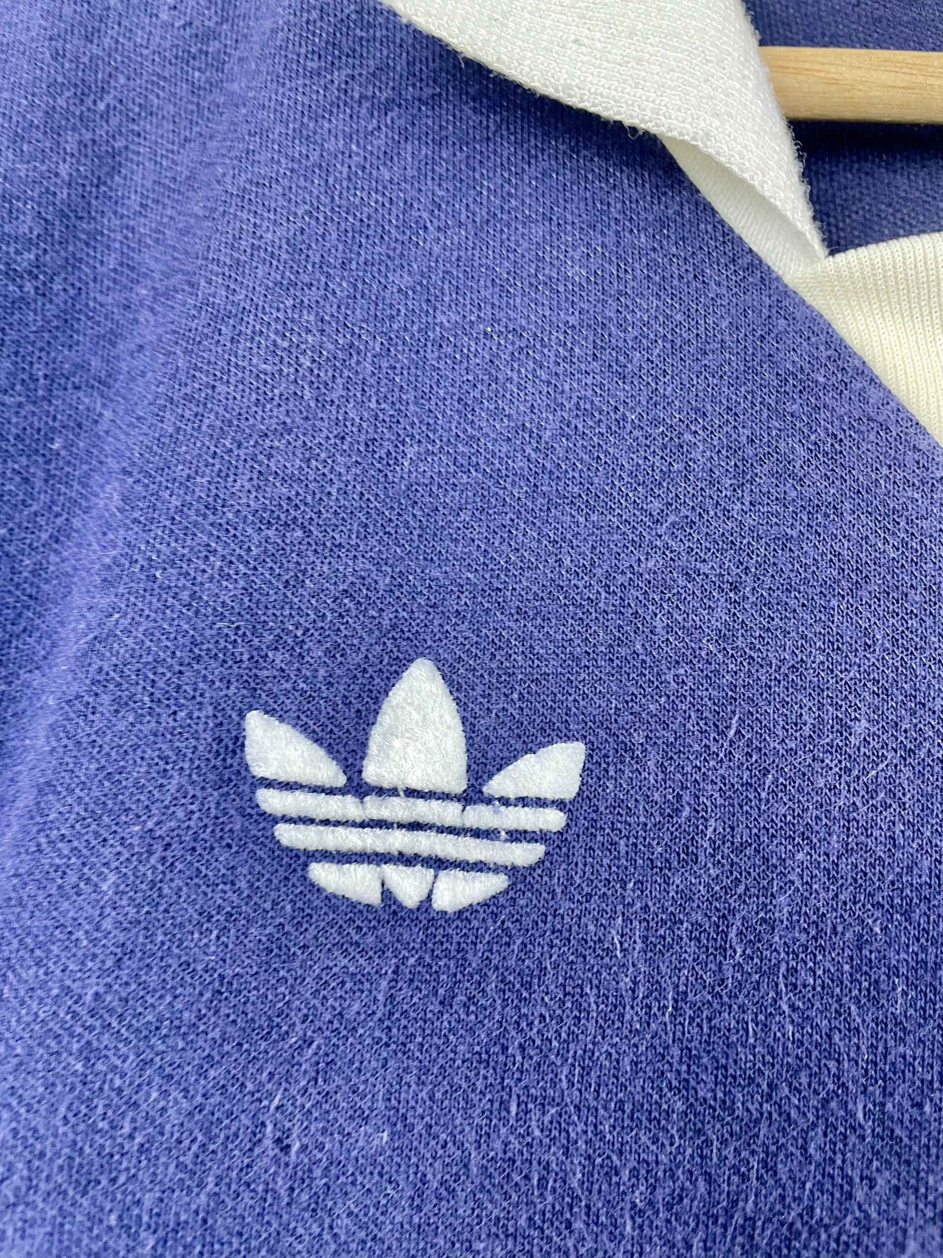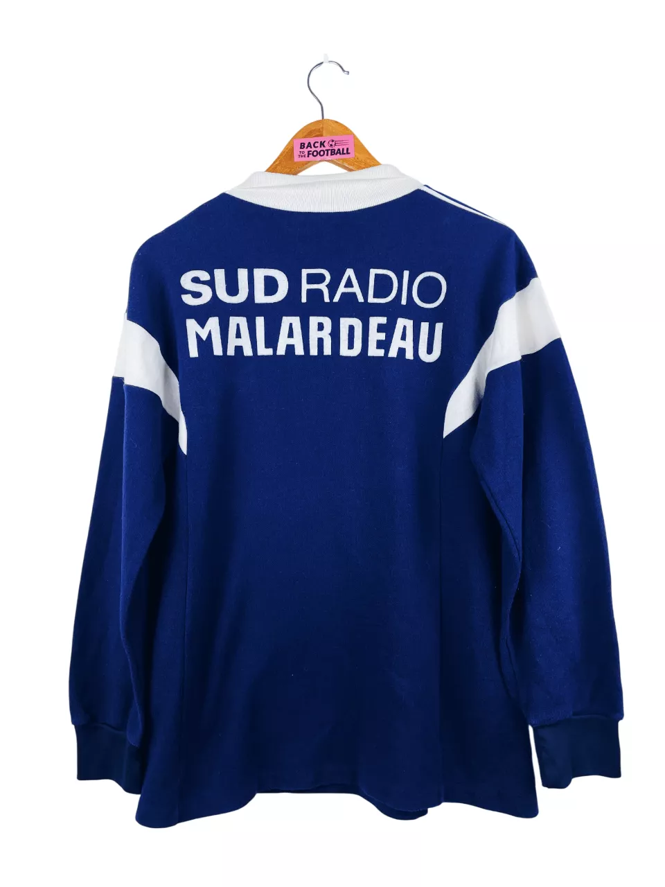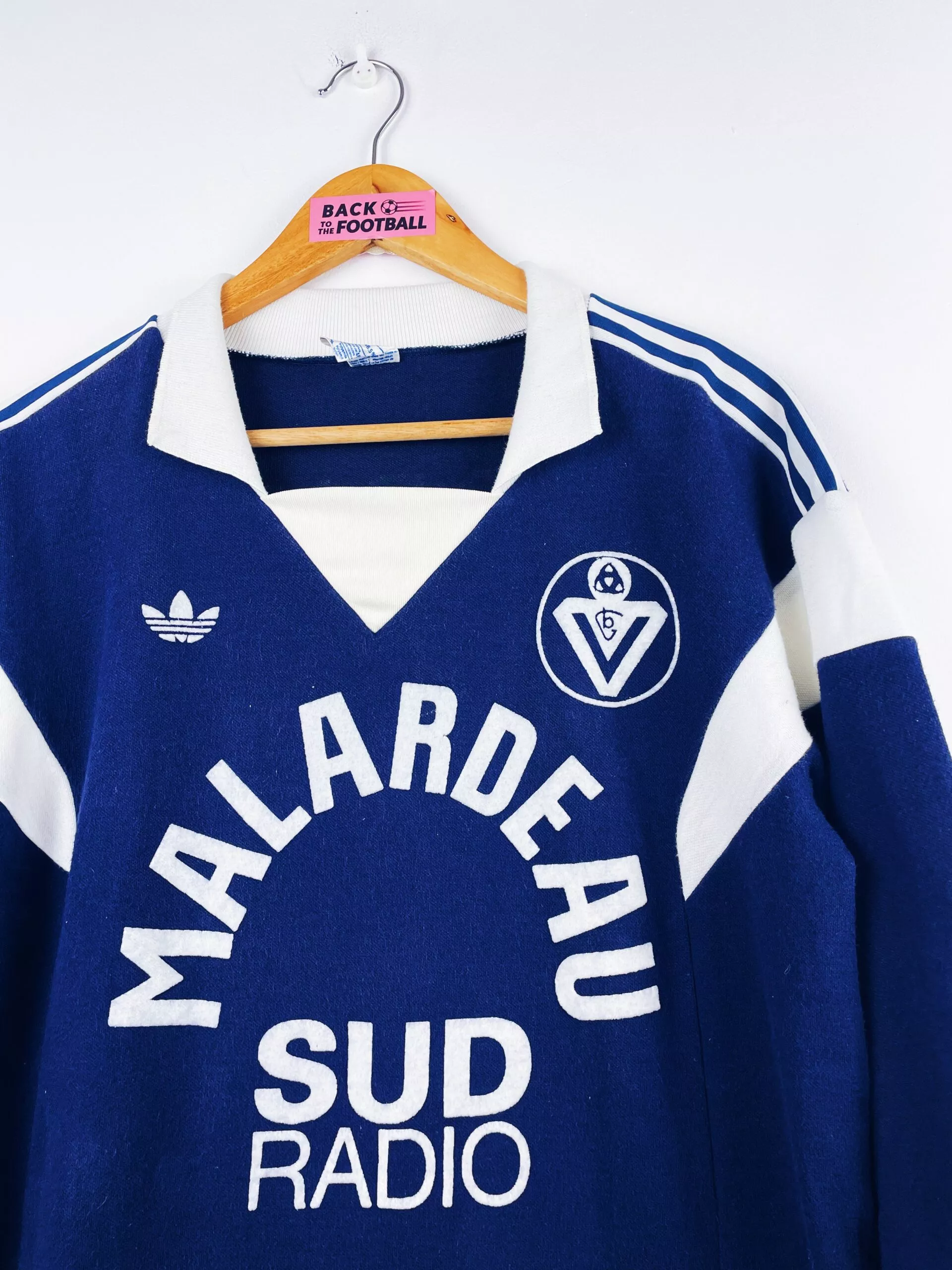 Taille : M Largeur : 50cm (aisselle à aisselle) Longueur : 68cm (base du col au bas) Si tu veux plus de détails, tu peux nous contacter par mail ou sur les réseaux 😉 Etat : 9/10, excellent état Le maillot : maillot vintage domicile Girondins de Bordeaux 1984/1985 manches longues. L’écusson, le logo Adidas à trèfle, les sponsors Malardeau et Sud Radio sont en feutrine. Très beau maillot rétro des Girondins ! Histoire : Bordeaux remporte un deuxième titre de D1 d’affilée en terminant devant Nantes. Beau parcours en Coupe d’Europe puisqu’ils iront jusqu’en demi-finale mais seront battus par…
