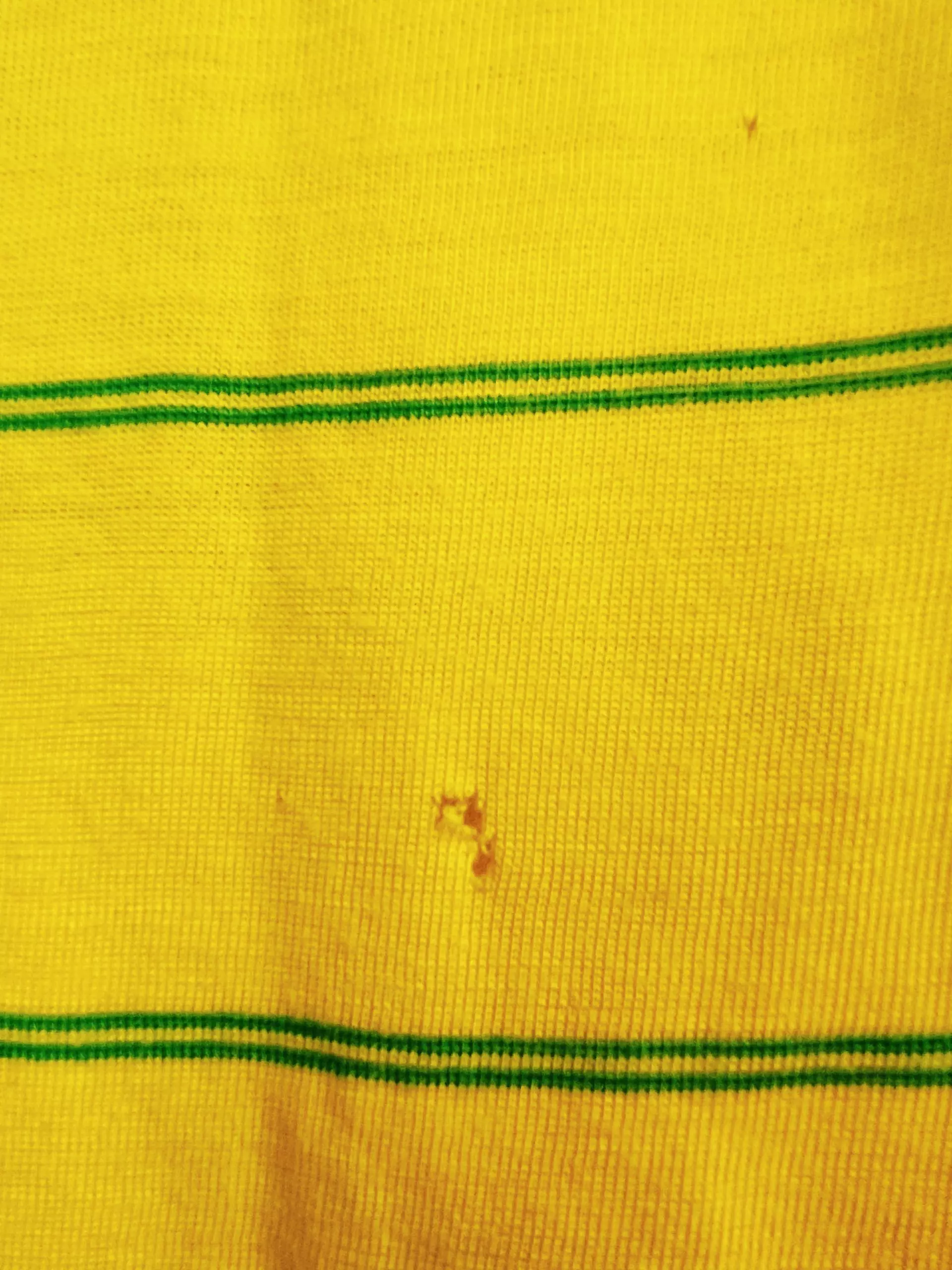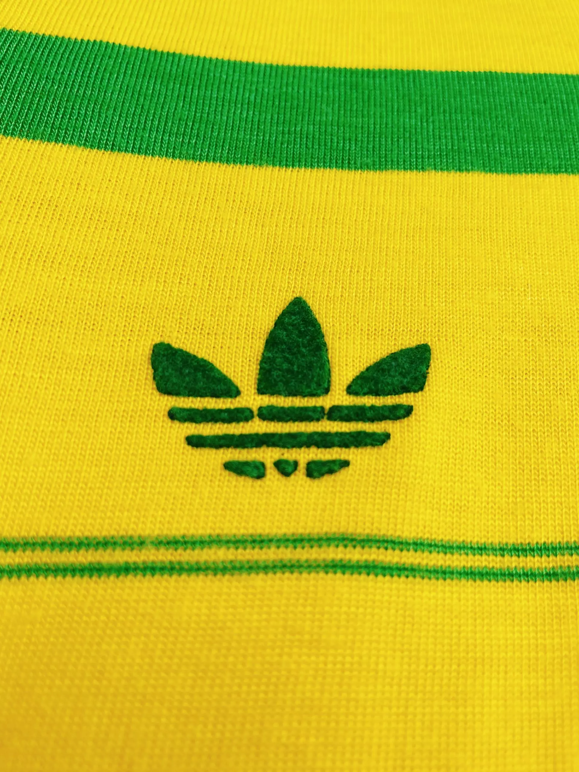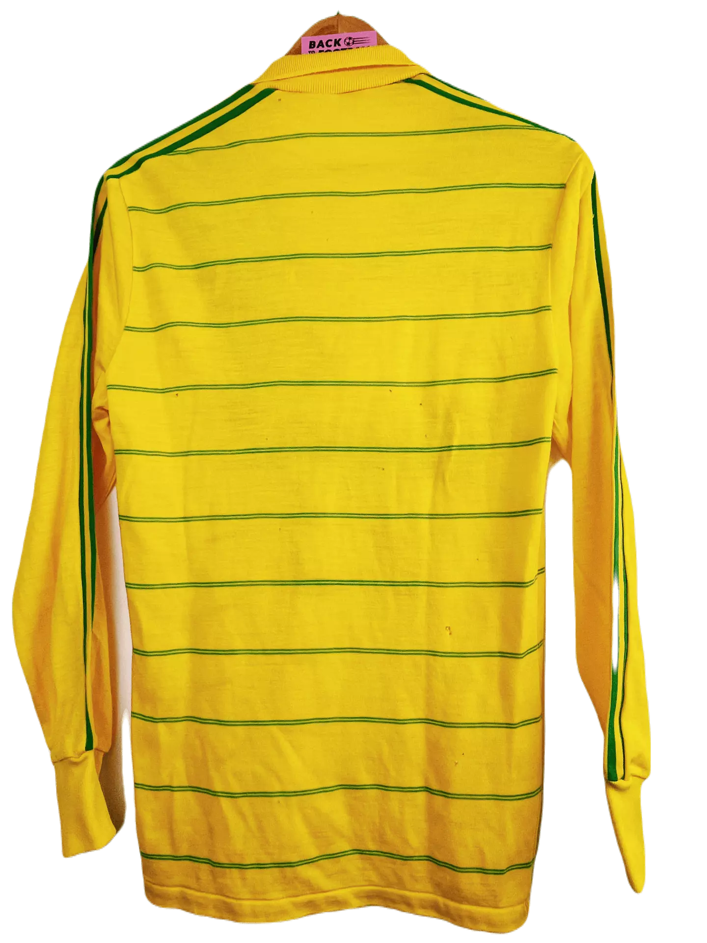 Taille : S Etat : 5/10, il y a des petits trous dans le dos (voir photo) Le maillot : rare maillot vintage du FC Nantes 1986/1987. L’ancien écusson, le logo Adidas à fleur et le sponsor Europe 1 sont en feutrine. Le maillot est fabriqué en France par Ventex. Histoire : saison moyenne pour les Nantais qui terminent à la 12ème place de Ligue 1. Ils seront éliminés très vite en coupes. Philippe Anziani sera le meilleur buteur des canaris avec 11 buts. Quelques joueurs : Deschamps, Desailly, Kombouaré, Zakarian, Morice…