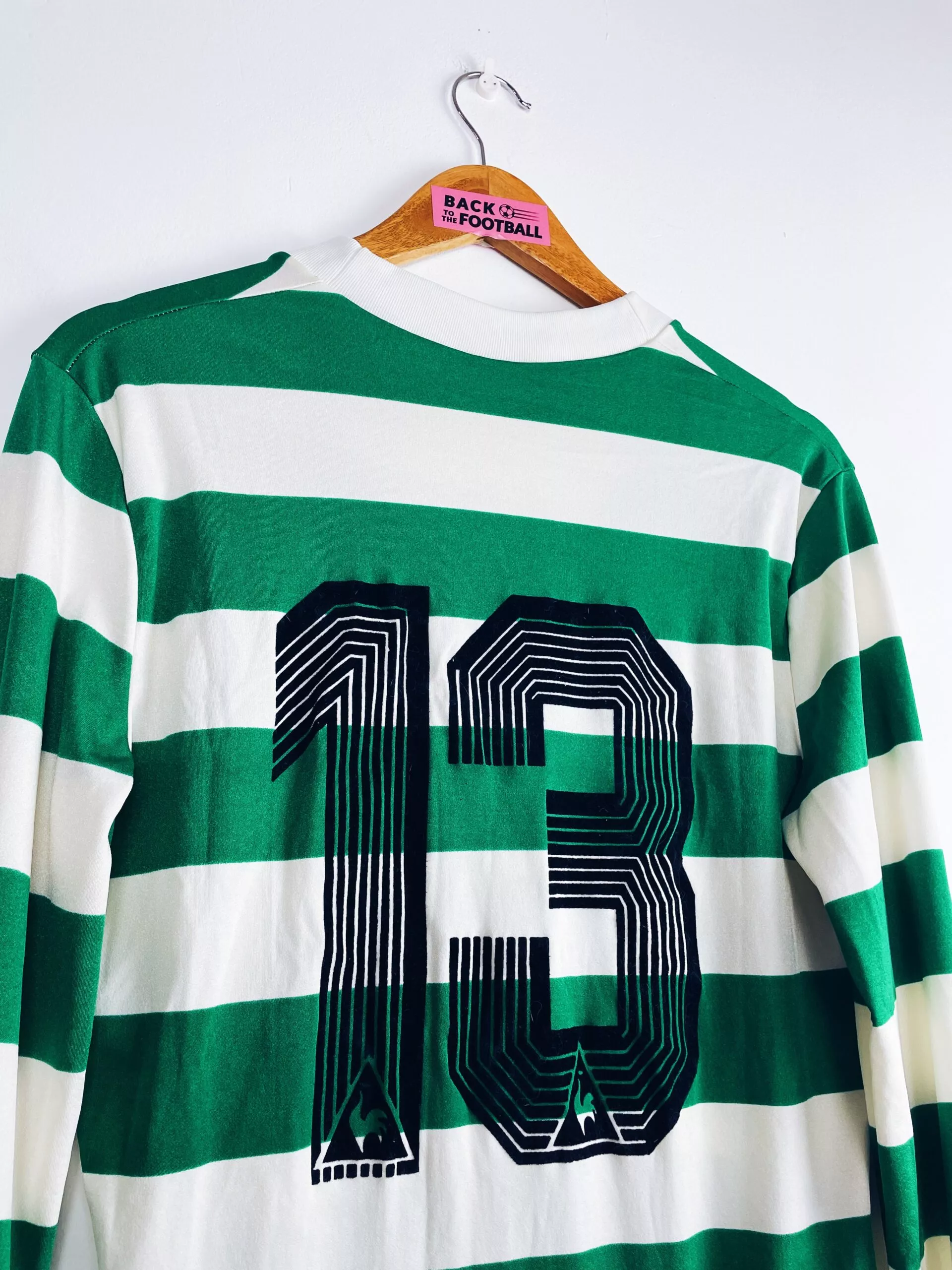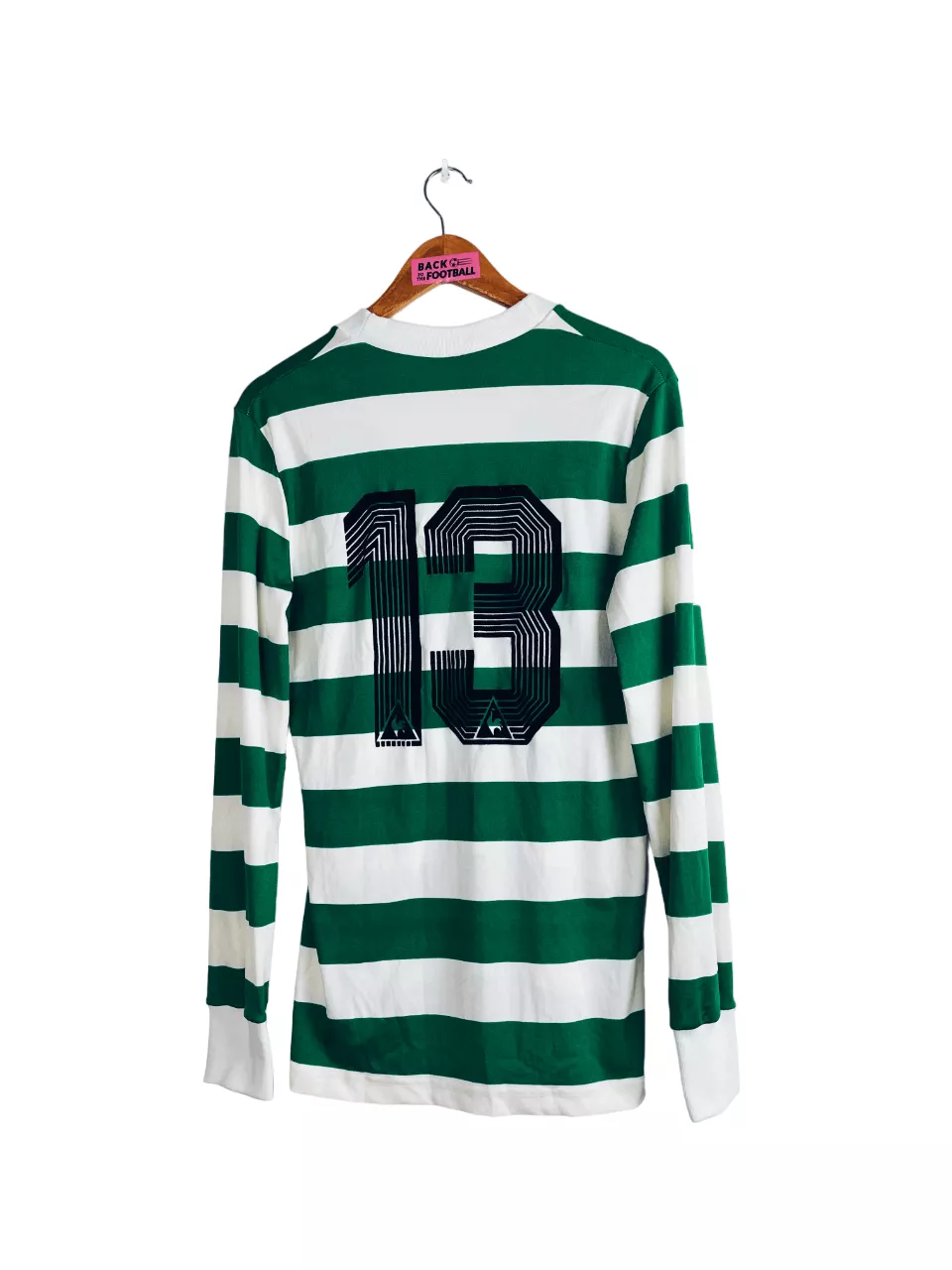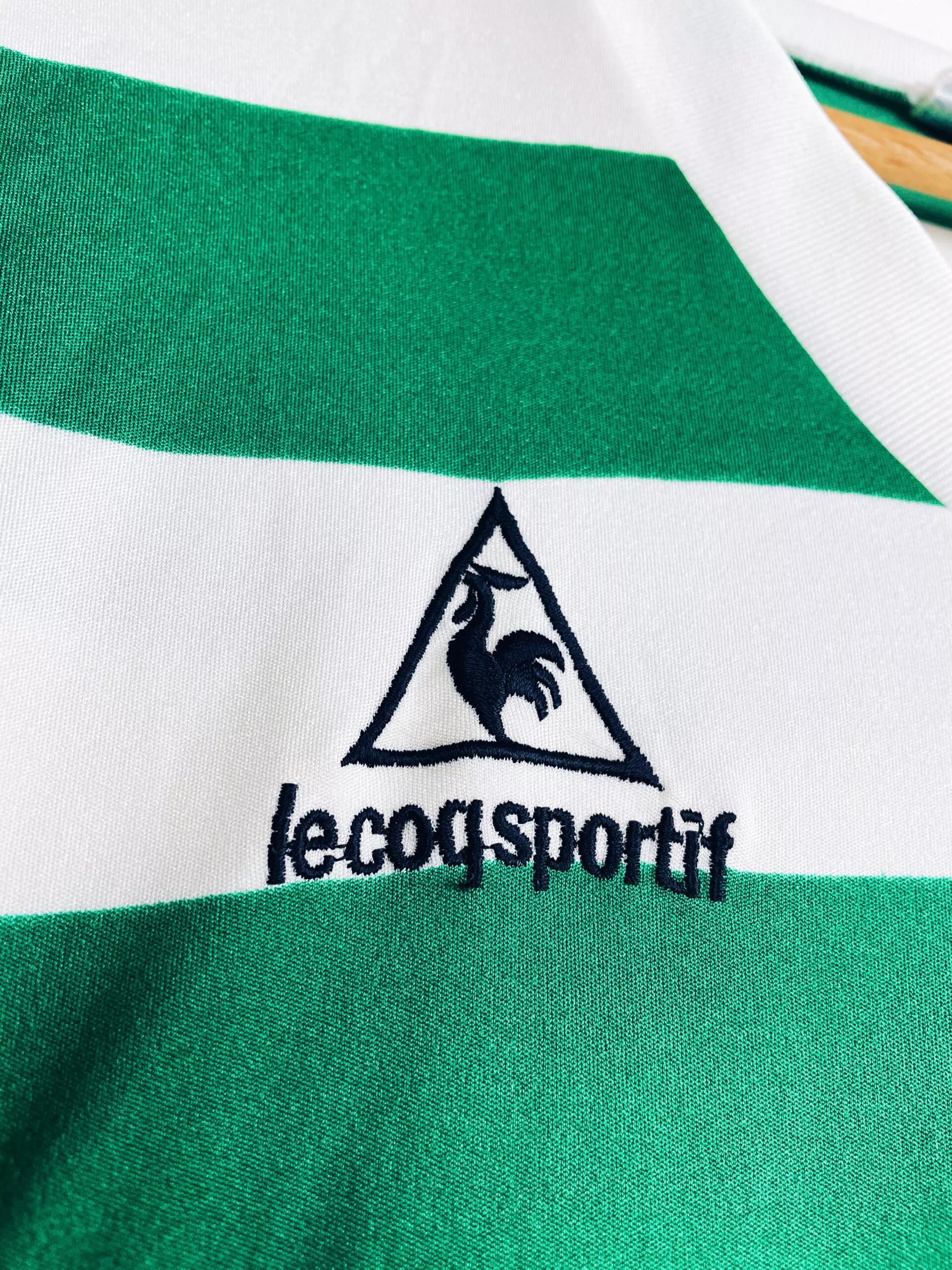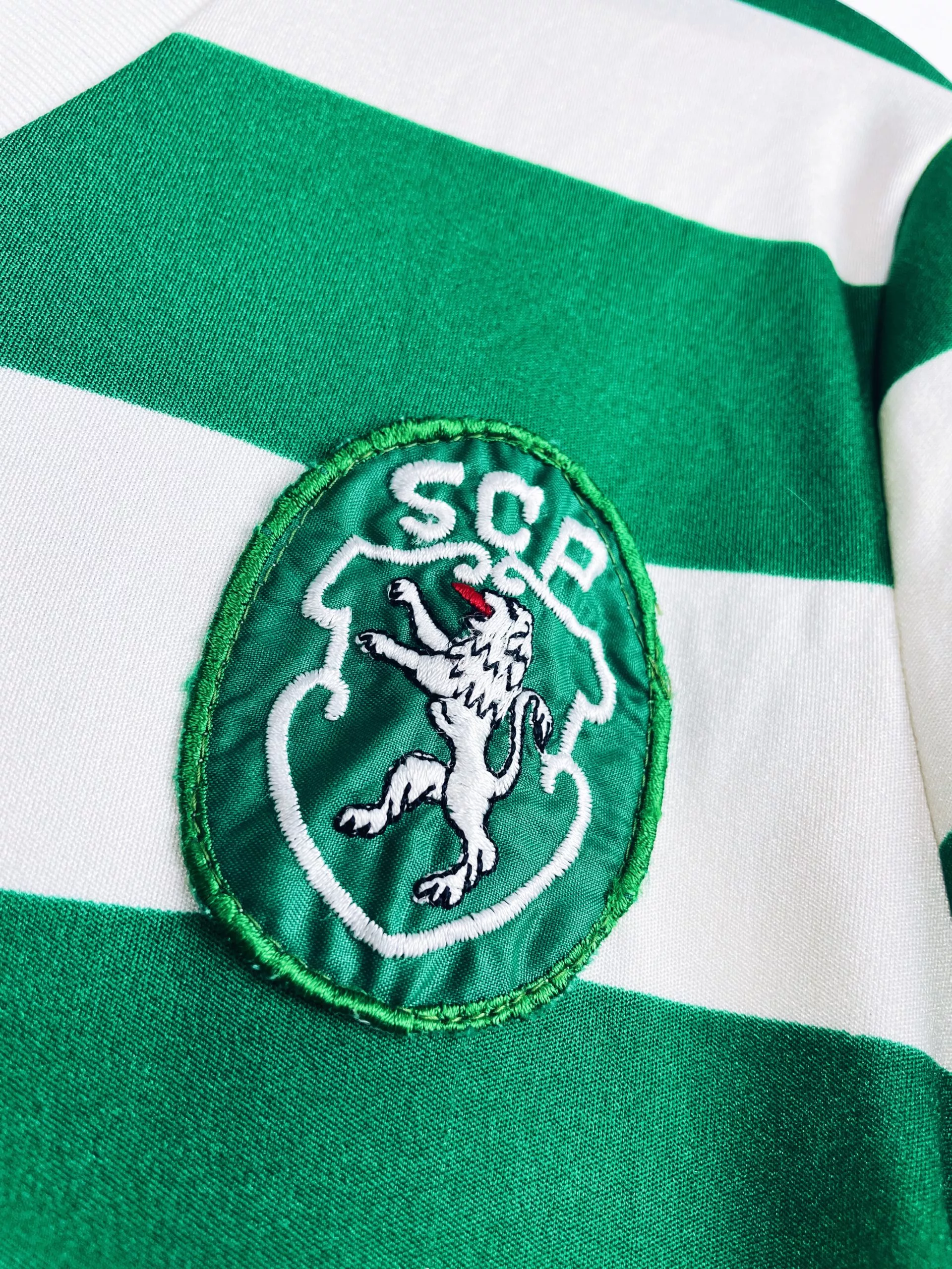 Taille : M Si tu veux plus d’infos, tu peux nous contacter par mail ou sur les réseaux 😉 Etat : 8.5/10. Excellent état, quelques légères bouloches Le maillot : maillot vintage domicile du Sporting CP 1986/1987 manches longues porté (match worn) par le numéro 13. L’écusson et le logo Le Coq Sportif sont brodés, le numéro 13 au dos est en feutrine. Si t’as le nom du joueur, on est preneur ! Histoire : en championnat, le Sporting Lisbonne termine à la 4ème place En Coupe du Portugal, le Sporting Portugal s’inclinera contre le rival de Lisbonne, le Benfica,…