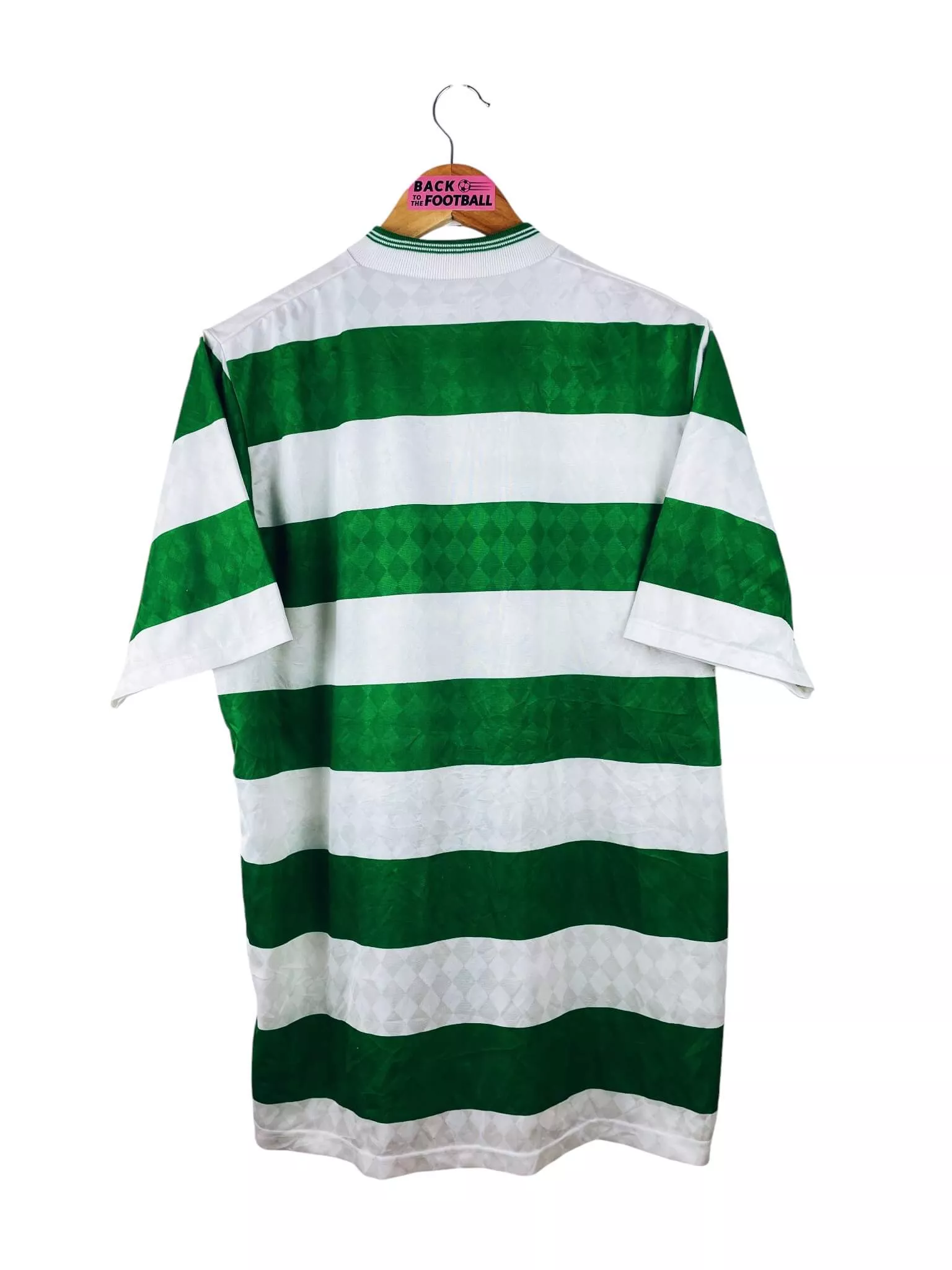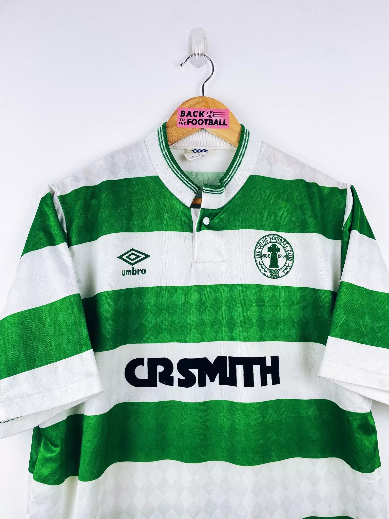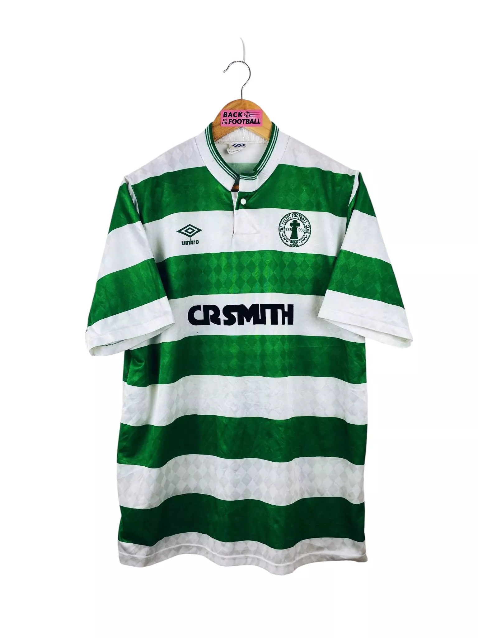 Taille : L Largeur : 56cm (aisselle à aisselle) Longueur : 74cm (base du col au bas) Si tu veux plus d’infos, tu peux nous contacter par mail ou sur les réseaux 😉 Etat : 8/10, très bon état hormis quelques minis points (voir photos) Le maillot : maillot vintage domicile du Celtic 1987/1989 centenaire. L’écusson spécial 100 ans, le logo Umbro et le sponsor CR Smith sont en feutrine. Très beau maillot rétro du Celtic ! Histoire : la 1ère saison, les Bhoys font le doublé championnat / Coupe d’Ecosse. Andy Walker marquera 32 buts. La 2ème saison, le…