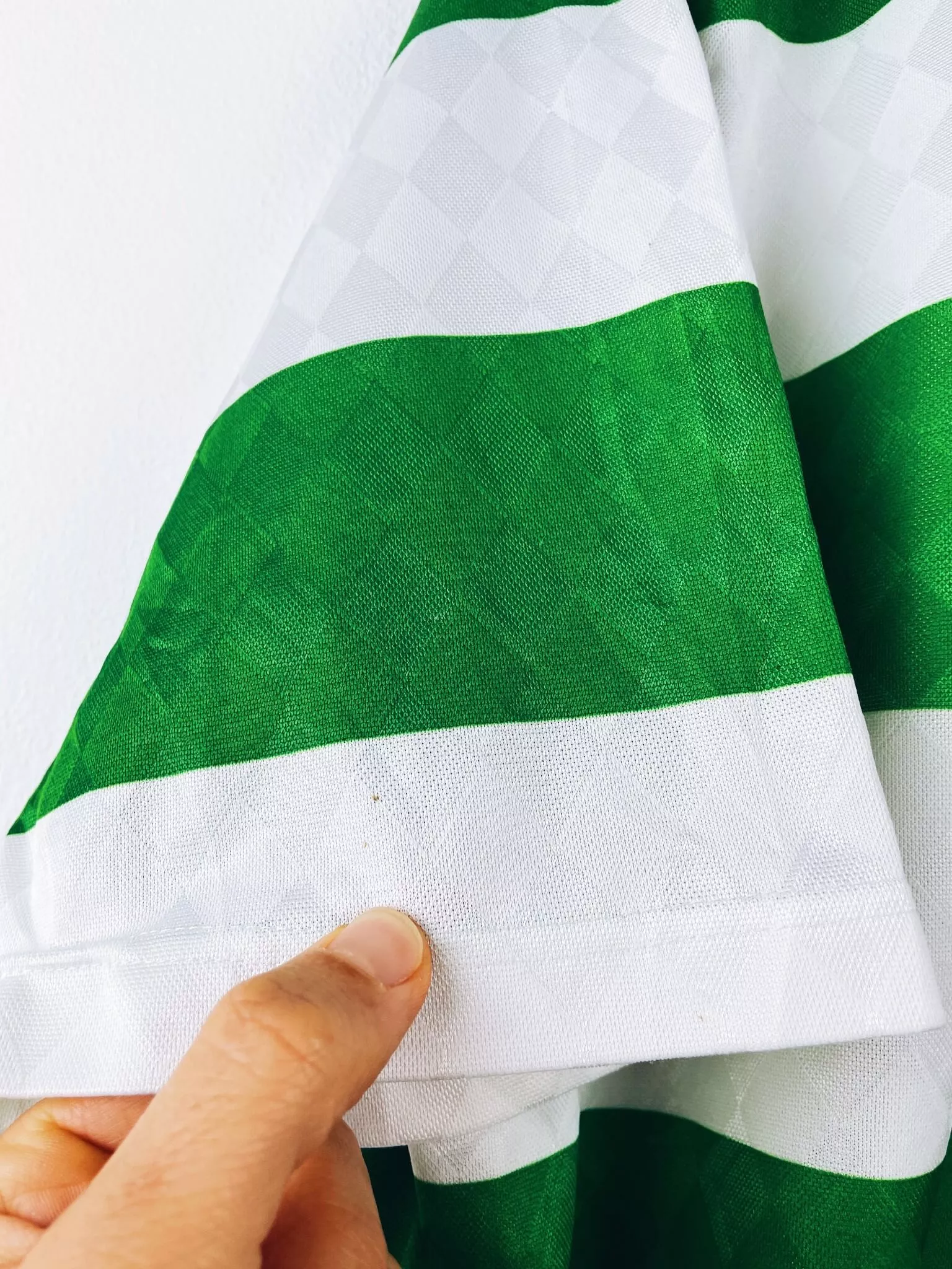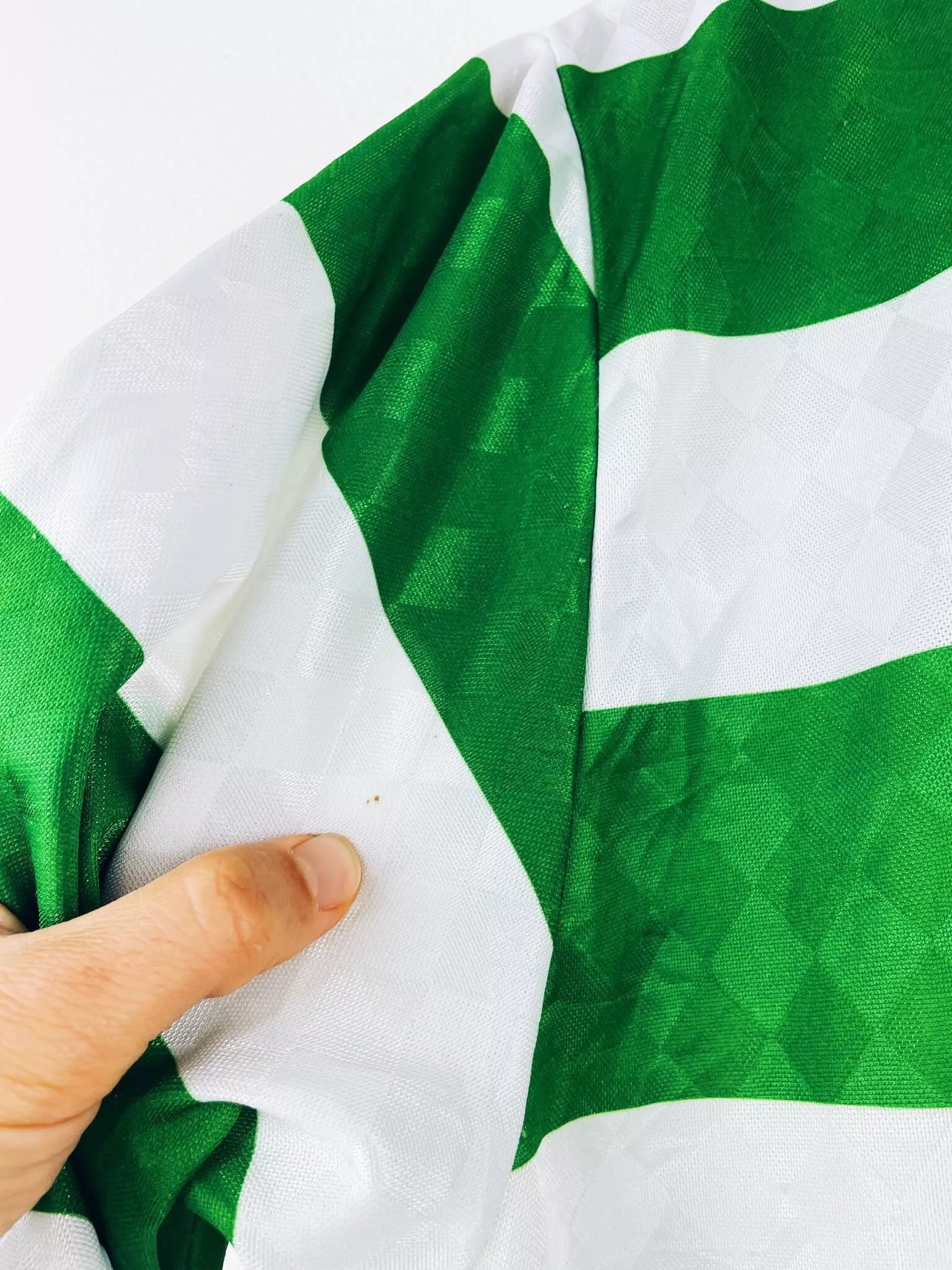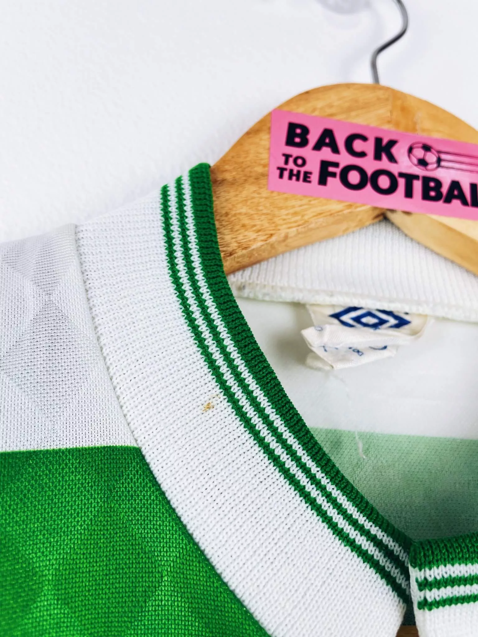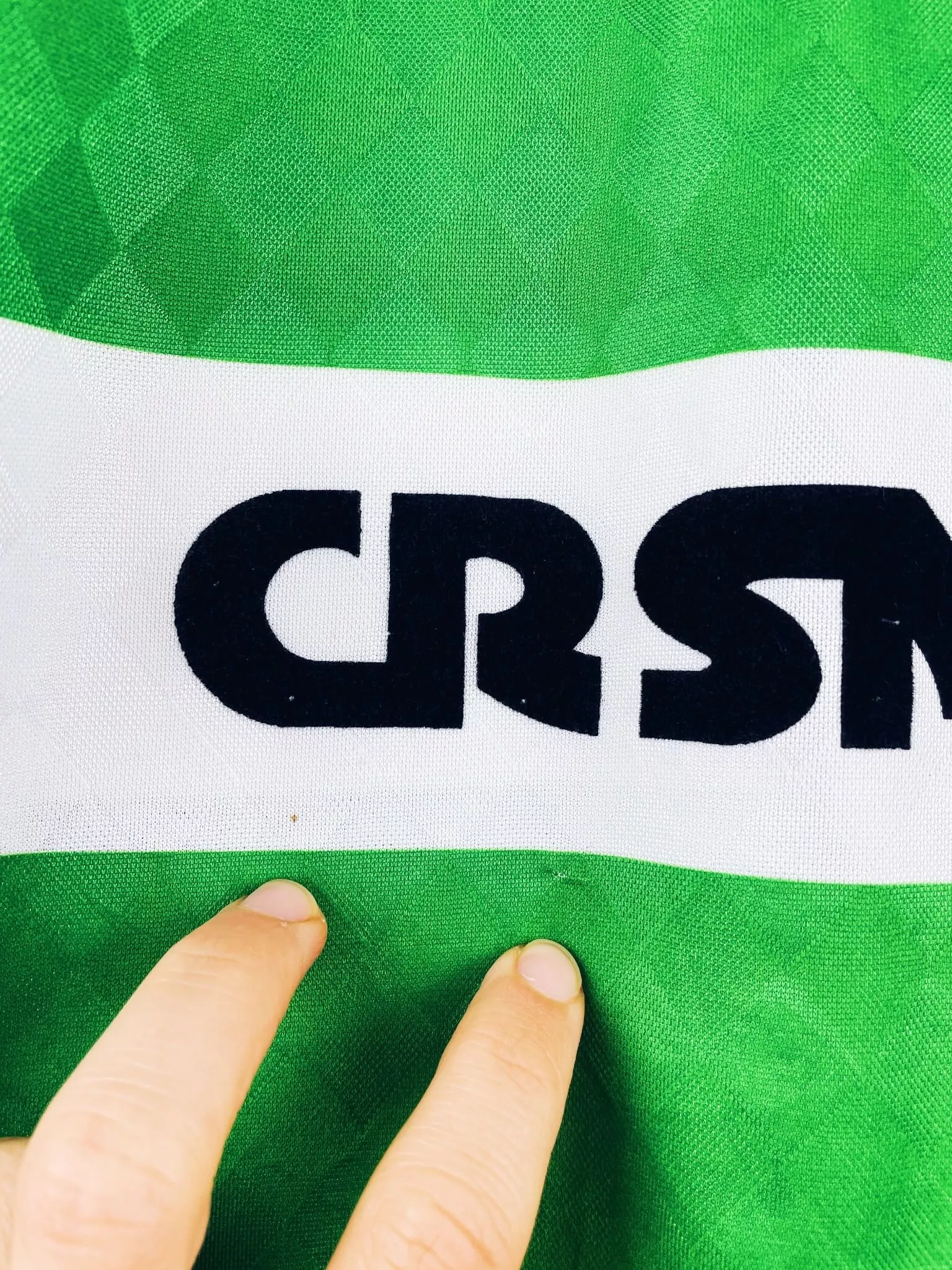 Taille : L Largeur : 56cm (aisselle à aisselle) Longueur : 74cm (base du col au bas) Si tu veux plus d’infos, tu peux nous contacter par mail ou sur les réseaux 😉 Etat : 8/10, très bon état hormis quelques minis points (voir photos) Le maillot : maillot vintage domicile du Celtic 1987/1989 centenaire. L’écusson spécial 100 ans, le logo Umbro et le sponsor CR Smith sont en feutrine. Très beau maillot rétro du Celtic ! Histoire : la 1ère saison, les Bhoys font le doublé championnat / Coupe d’Ecosse. Andy Walker marquera 32 buts. La 2ème saison, le…
