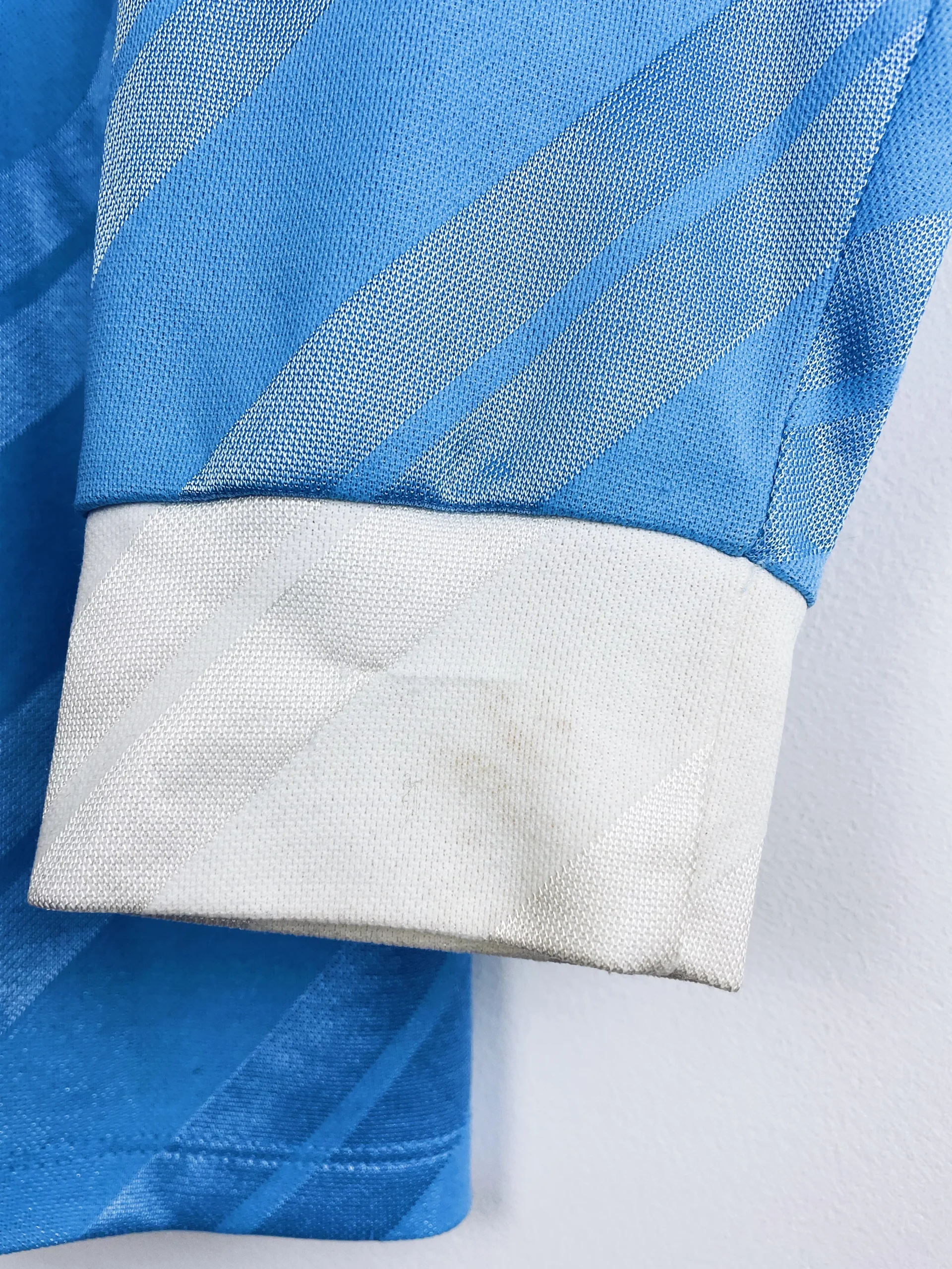 Taille : M Largeur : 46cm (aisselle à aisselle) Longueur : 65cm (base du col au bas) Si tu veux plus de détails, tu peux nous contacter par mail ou sur les réseaux 😉 Etat : 8/10, excellent état pour son âge, le bout des manches est moins blanc et petite trace sur une des manches (voir photos) Le maillot : maillot vintage de l’AS Monaco 1989/1990 manches longues, préparé (match issue) pour le numéro 7. Si tu as le joueur on est preneur ! Il s’agit du 4ème maillot utilisé rarement en championnat. Tous les éléments sont en feutrine,…