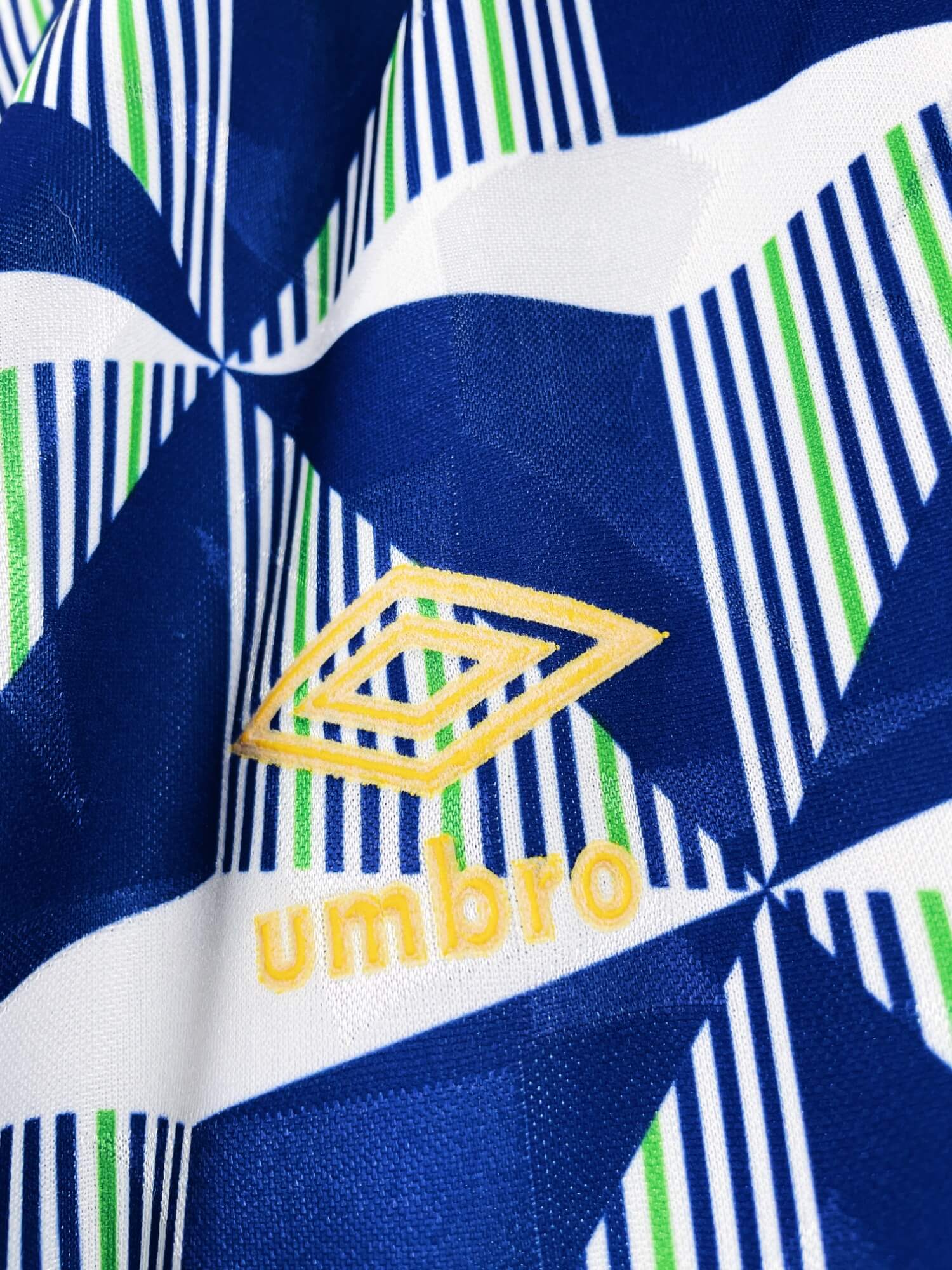Taille : L/XL Largeur : 54cm (aisselle à aisselle) Longueur : 74cm (base du col au bas) Si tu veux plus de détails, tu peux nous contacter par mail ou sur les réseaux 😉 Etat : 8/10, très bon état hormis un accroc au niveau du col et une couture décousue sur 4cm en bas (voir photos) Le maillot : maillot vintage extérieur de l’Irlande du Nord 1990/1992. L’écusson et le logo Umbro sont en feutrine. Le col est à bouton à pression. Le design du maillot est incroyable. Très beau maillot rétro de l’Irlande du Nord ! Histoire :…