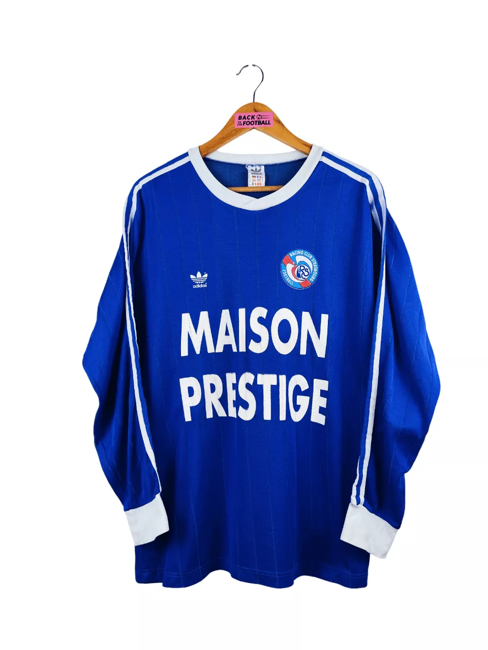 Taille : XL Si tu veux plus de détails, tu peux nous contacter par mail ou sur les réseaux 😉 Etat : 6.5/10, bon état général mais le sponsor et le numéro 12 au dos sont abimés (voir photos) Le maillot : maillot vintage domicile du RC Strasbourg 1991/1992 manches longues, issu du stock pro (player issue). Sûrement porté par un joueur de la réserve. L’écusson, le logo Adidas, le sponsor et le numéro 12 au dos sont floqués. Très beau maillot rétro du RC Strasbourg ! Histoire : le Racing Club de Strasbourg termine à la 2ème place du…