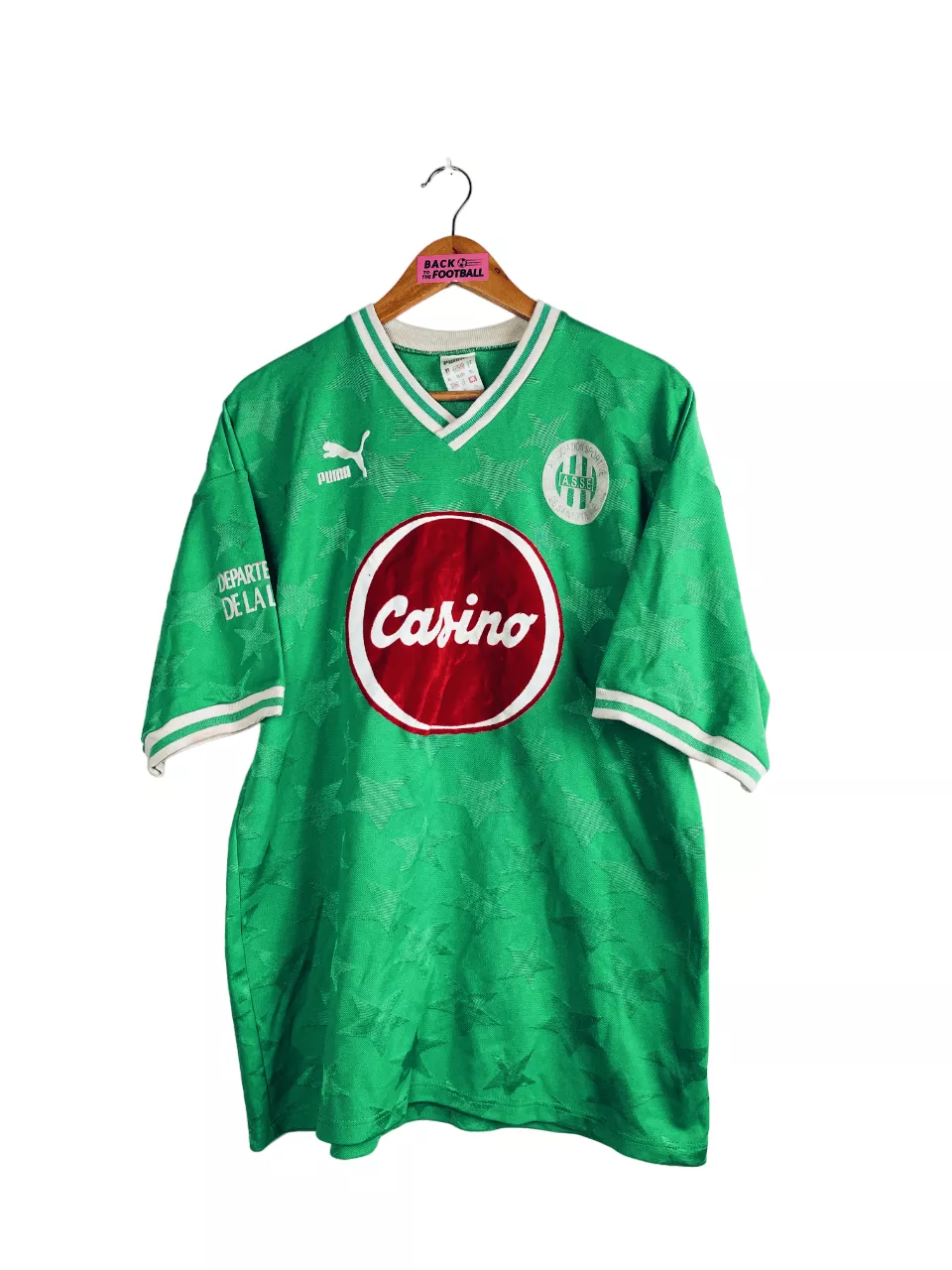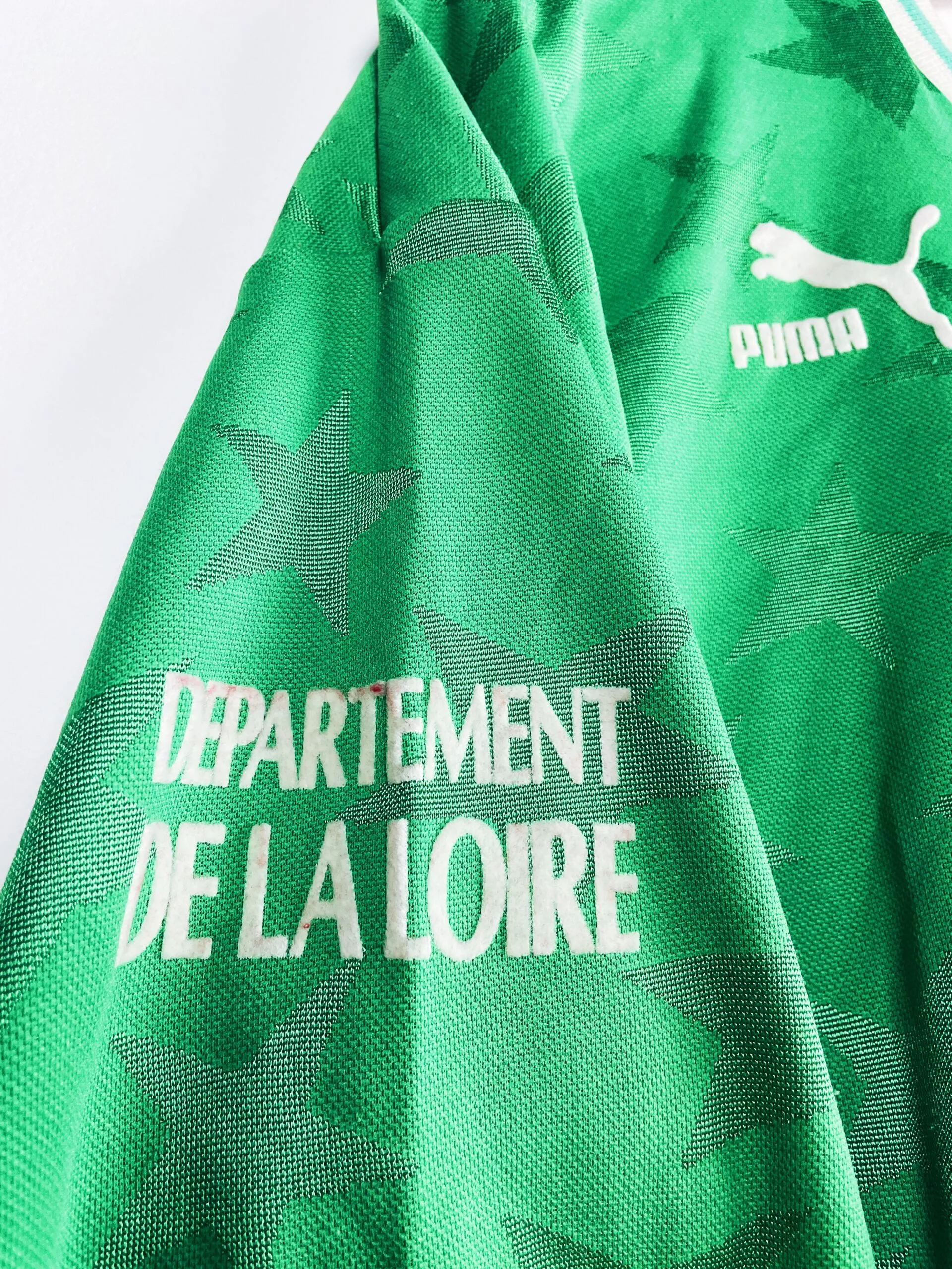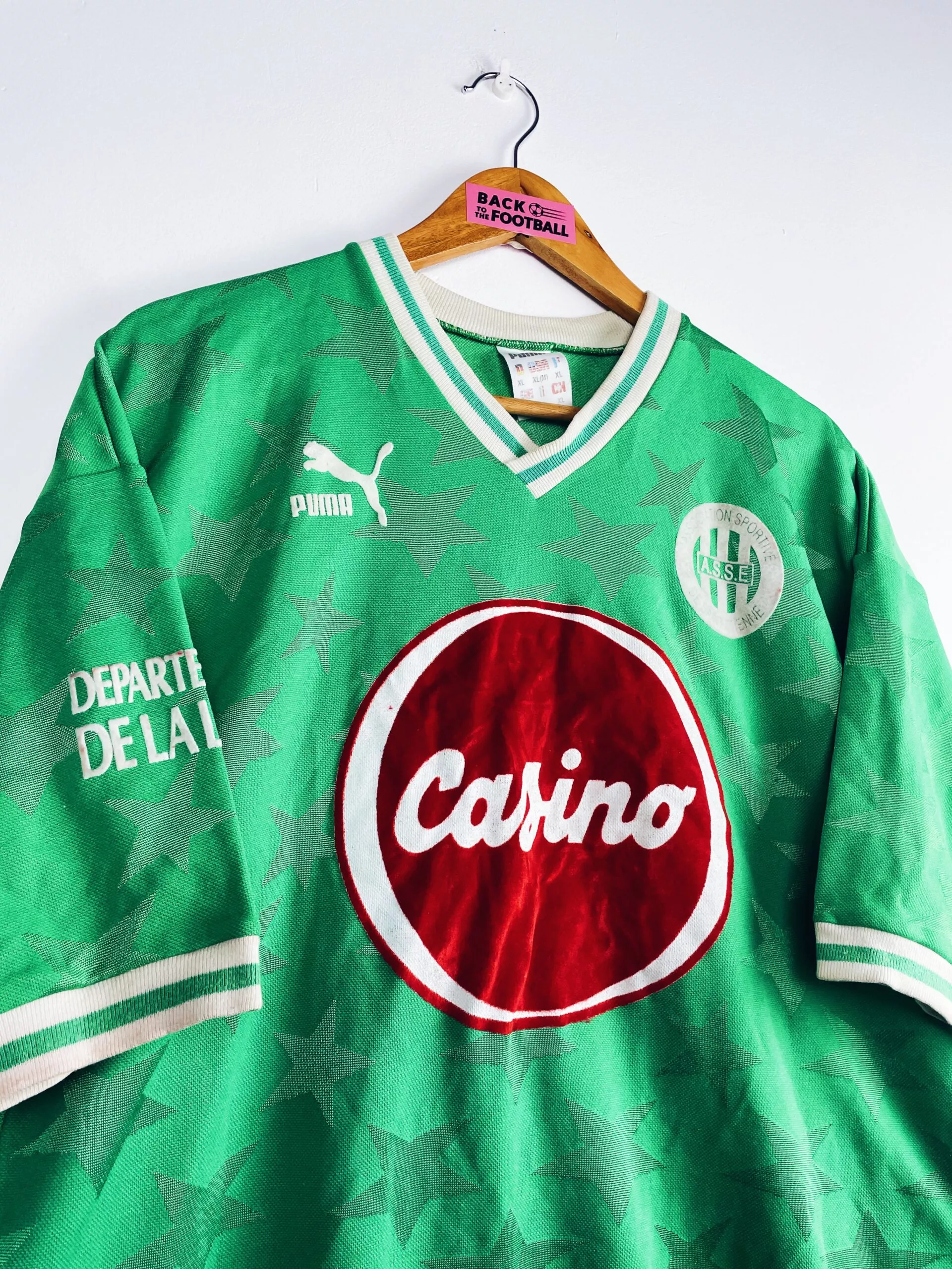 Taille : XL Si tu veux plus de détails, tu peux nous contacter par mail ou sur les réseaux 😉 Etat : 8/10, excellent état, la feutrine du numéro 14 est un peu rougie par endroit (voir photo) Le maillot : maillot vintage domicile de l’AS Saint-Etienne 1992/1993 porté (match worn) par Maurice Bouquet. Le maillot a été récupéré par un petit club du 42. L’écusson, le logo Puma et le sponsor Casino sont en feutrine. Le numéro 14 et le sponsor Département de la Loire sur la manche également. Les étoiles en tramé sur tout le maillot sont splendides.…