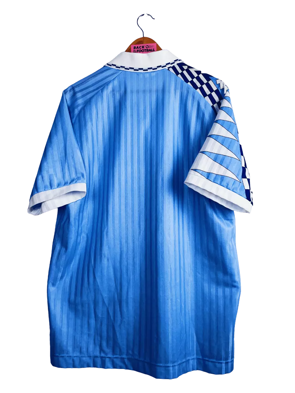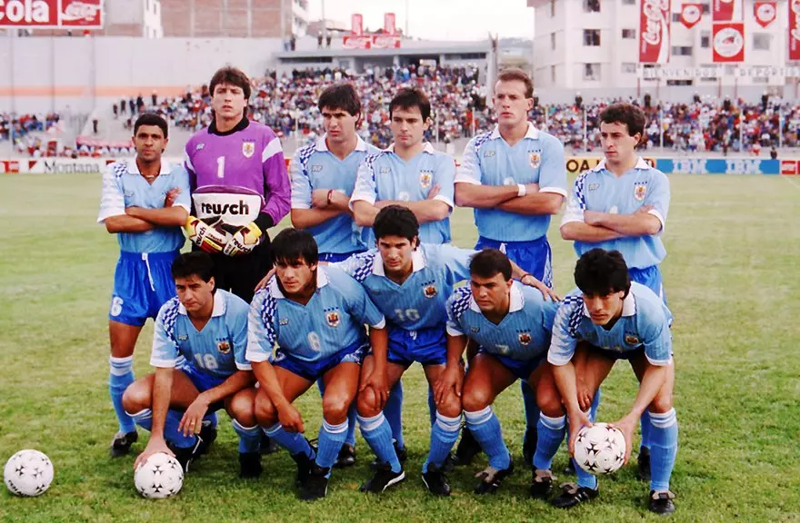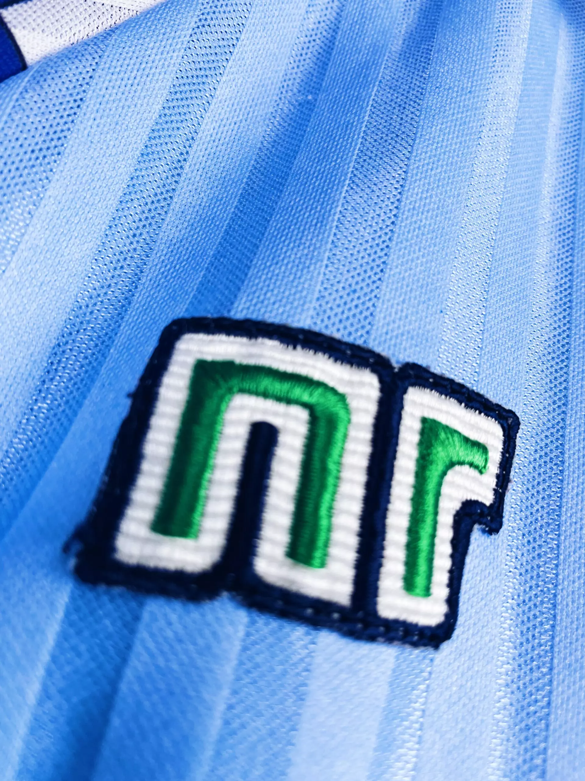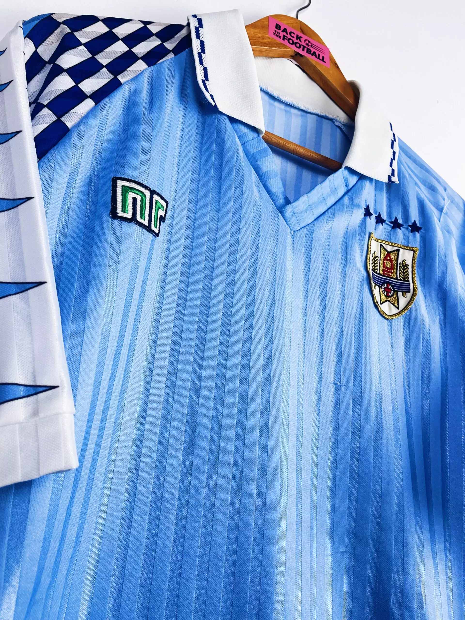 Taille : L Etat : 8/10, très bon état, quelques petits accrocs (voir photo) Le maillot : maillot vintage de l’Uruguay 1992/1994, porté notamment pendant la Copa America 1993. L’écusson est brodé, le logo NR aussi. Le design est magnifique ! Très beau maillot rétro de l’Uruguay ! Histoire : lors de la Copa America 1993 organisé par l’Equateur, l’Uruguay se qualifie lors de la phase de groupe avec une 2ème place, derrière justement le pays hôte. La Celeste se fera éliminer en quart de finale, aux tirs au buts, contre la Colombie. Les uruguayens ne se qualifieront pas pour…