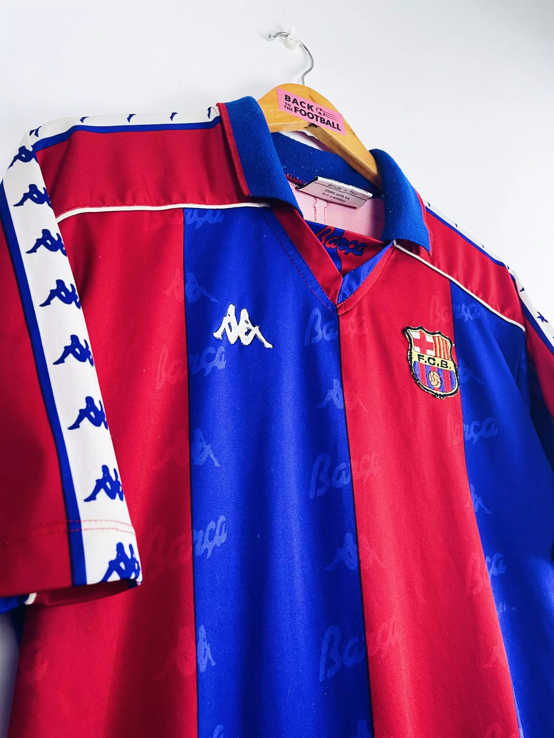 Fan du FC Barcelone? Tu ne jures que par le Tiki-taka? Tu considères que Messi, Iniesta ou Xavi sont des demi-dieux? Tu mises tous tes sous sur les pépites de la Masia? Alors tu devrais trouver ton bonheur parmi les maillots de foot vintage du FC Barcelone de Back To The Football.