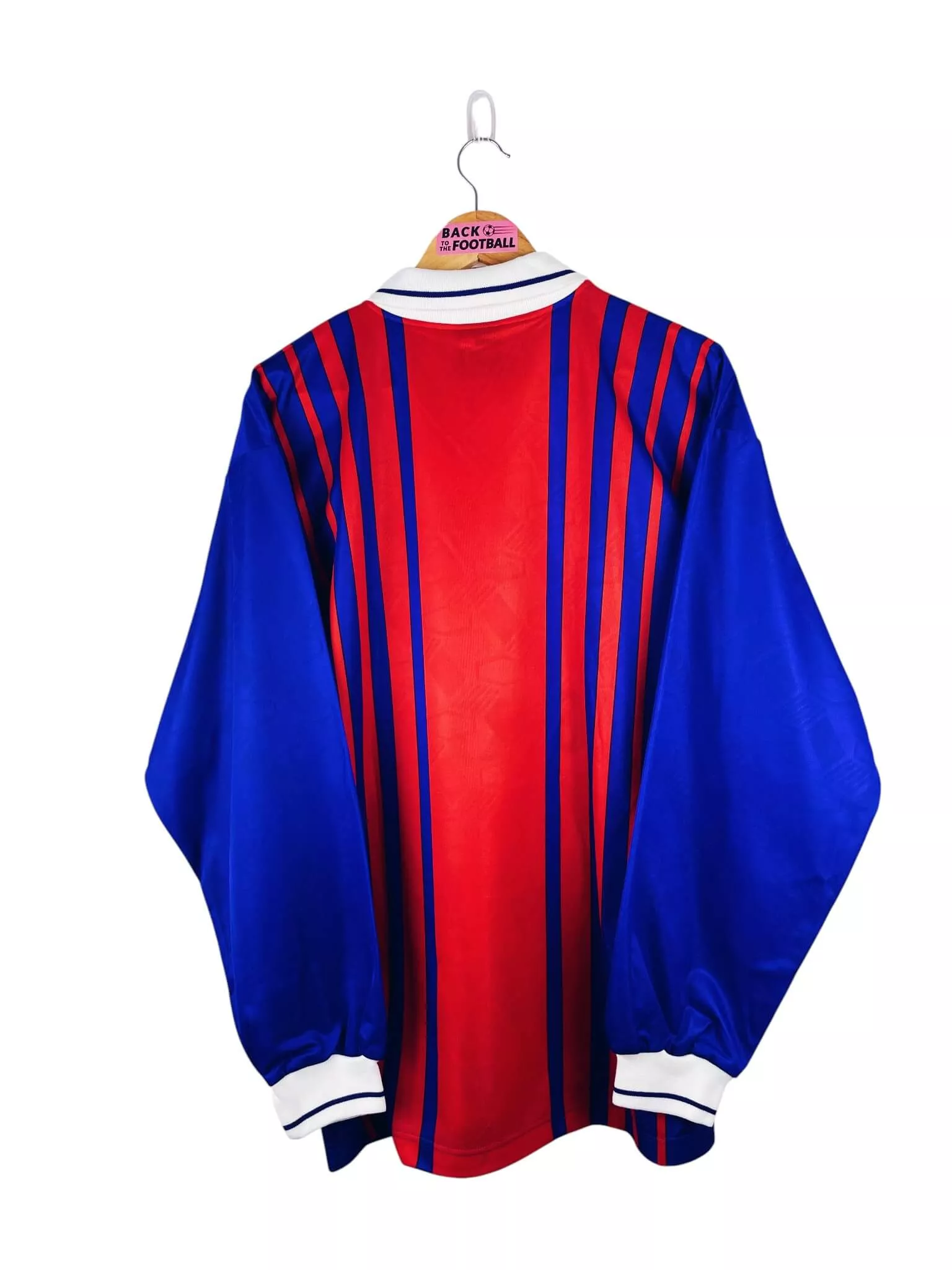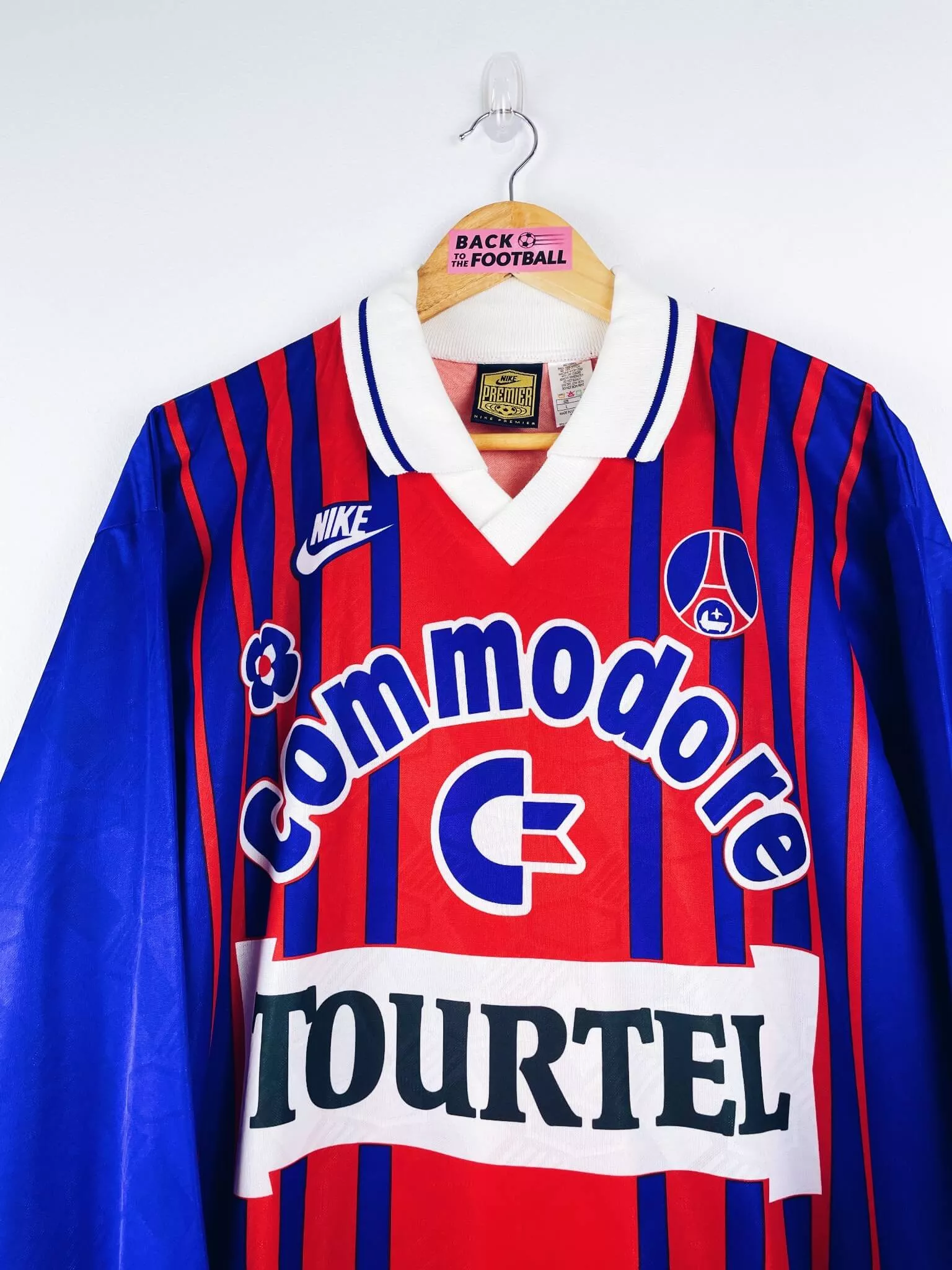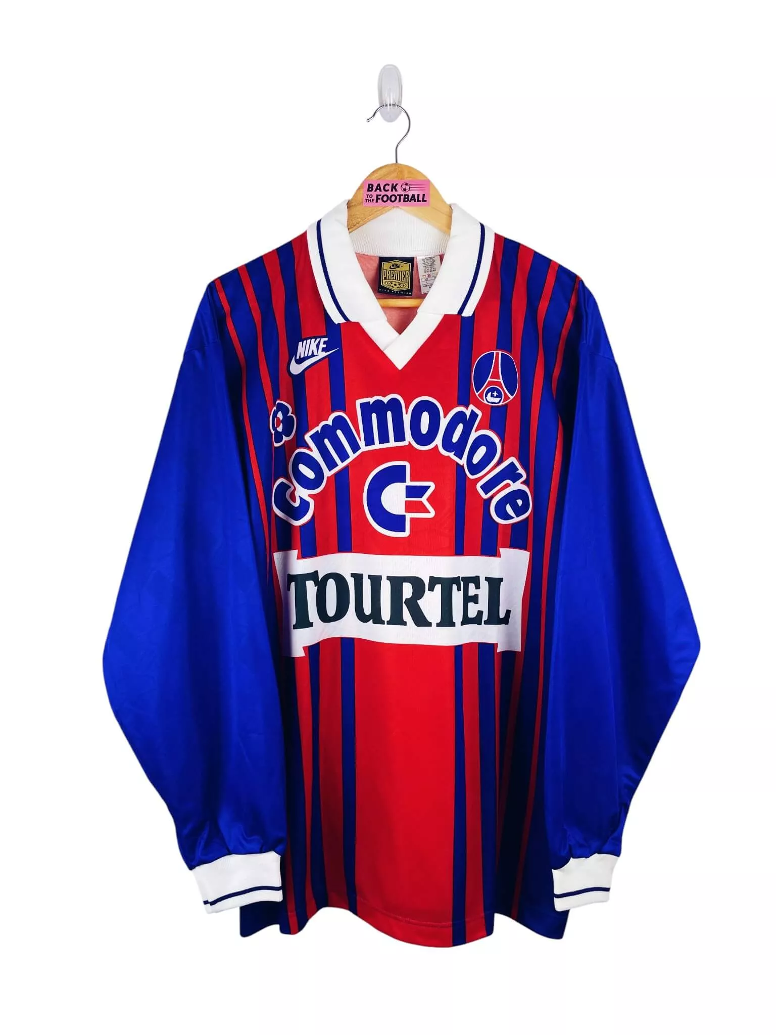 Taille : L Largeur : 57cm (aisselle à aisselle) Longueur : 75cm (base du col au bas) Si tu veux plus de détails, tu peux nous contacter par mail ou sur les réseaux 😉 Etat : 9/10, excellent état Le maillot : maillot vintage domicile du PSG 1993/1994 manches longues. L’écusson, le logo Nike et les sponsors Commodore et Tourtel sont incrustés au maillot. Très beau maillot rétro du PSG ! Histoire : énorme saison des parisiens qui remporteront leur deuxième championnat de leur histoire, devant notamment l’Olympique de Marseille… Ils ne quitteront pas leur 1ère place depuis la 13ème…
