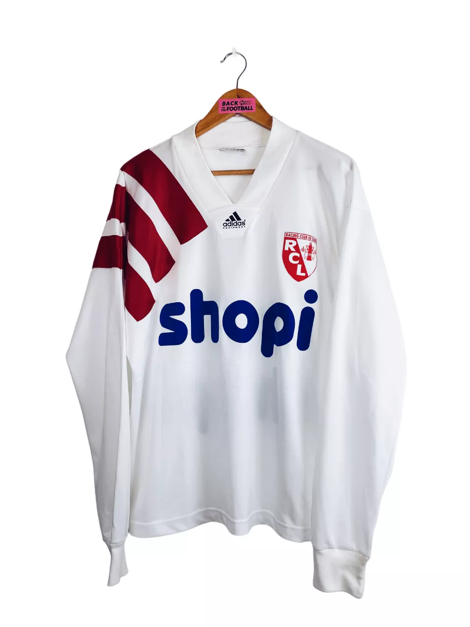 Taille : XL Si tu veux plus de détails, tu peux nous contacter par mail ou sur les réseaux 😉 Etat : 8/10, excellent état hormis l’écusson qui est légèrement abimé (voir photo) Le maillot : maillot vintage extérieur du RC Lens 1993/1994 floqué du numéro 8 (Meyrieu) en manches longues. L’écusson est floqué, le logo Adidas aussi, le sponsor Shopi est en feutrine et le numéro 8 au dos est aussi en feutrine. Très beau maillot rétro du RC Lens ! Histoire : les Sang et Or terminent à la 10ème place de Division 1. Ils feront un…