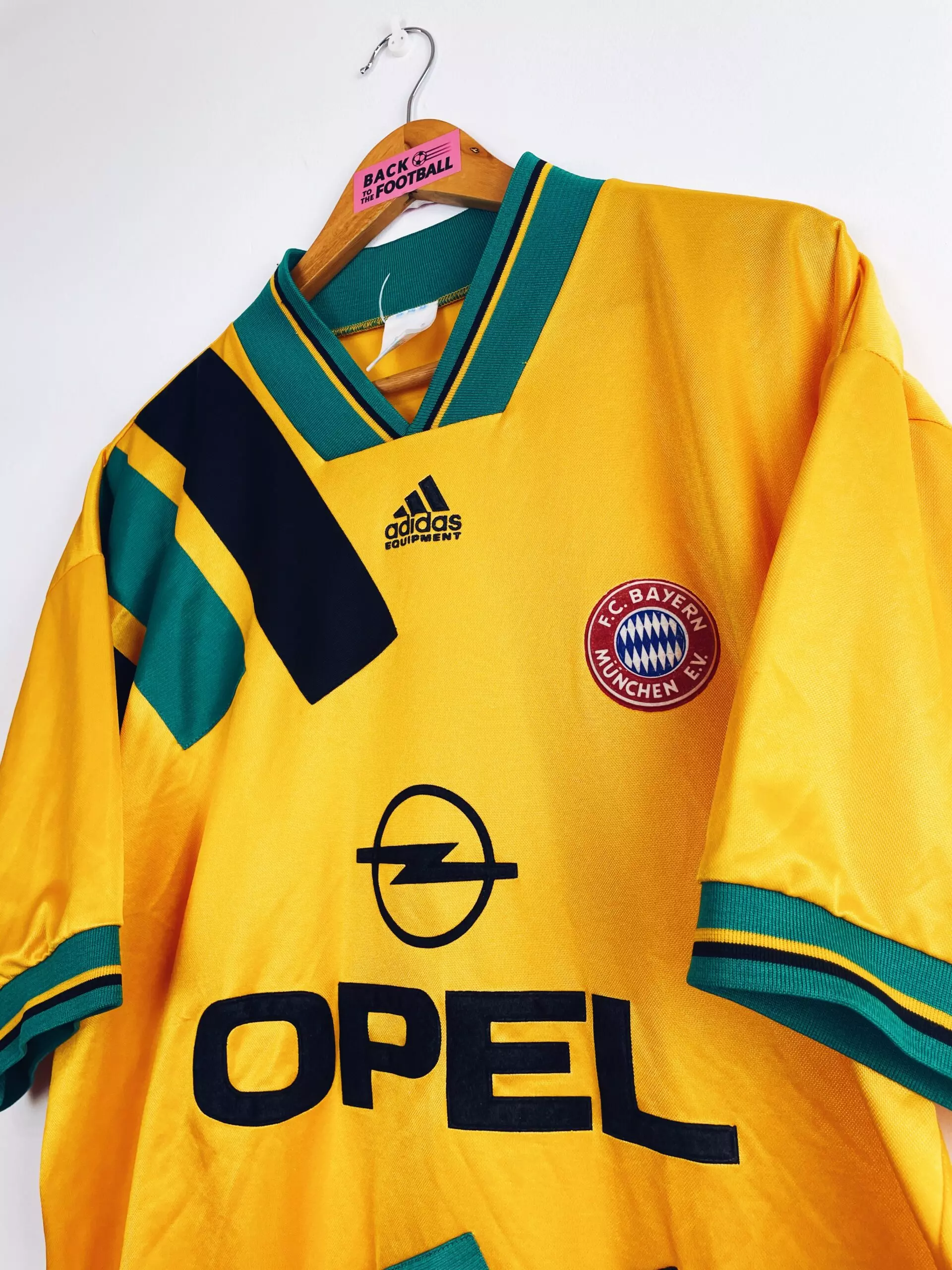 Taille : M Si tu veux plus de détails, tu peux nous contacter par mail ou sur les réseaux 😉 Etat : 8/10, excellent état Le maillot : maillot vintage extérieur du Bayern Munich 1993/1995. Le maillot reprend le design Adidas de l’époque avec les 3 bandes brodées sur le devant. L’écusson, le logo Adidas et le mythique sponsor Opel sont en feutrine. Très beau maillot rétro du Bayern Munich ! Histoire : Le Bayern sera champion de Bundesliga la première saison, à 1 point d’écart avec le deuxième Kaiserslautern. Scholl sera le meilleur buteur avec 13 buts toutes compétitions…