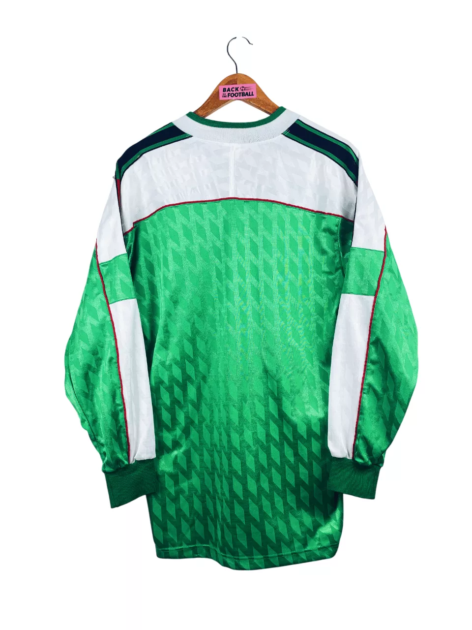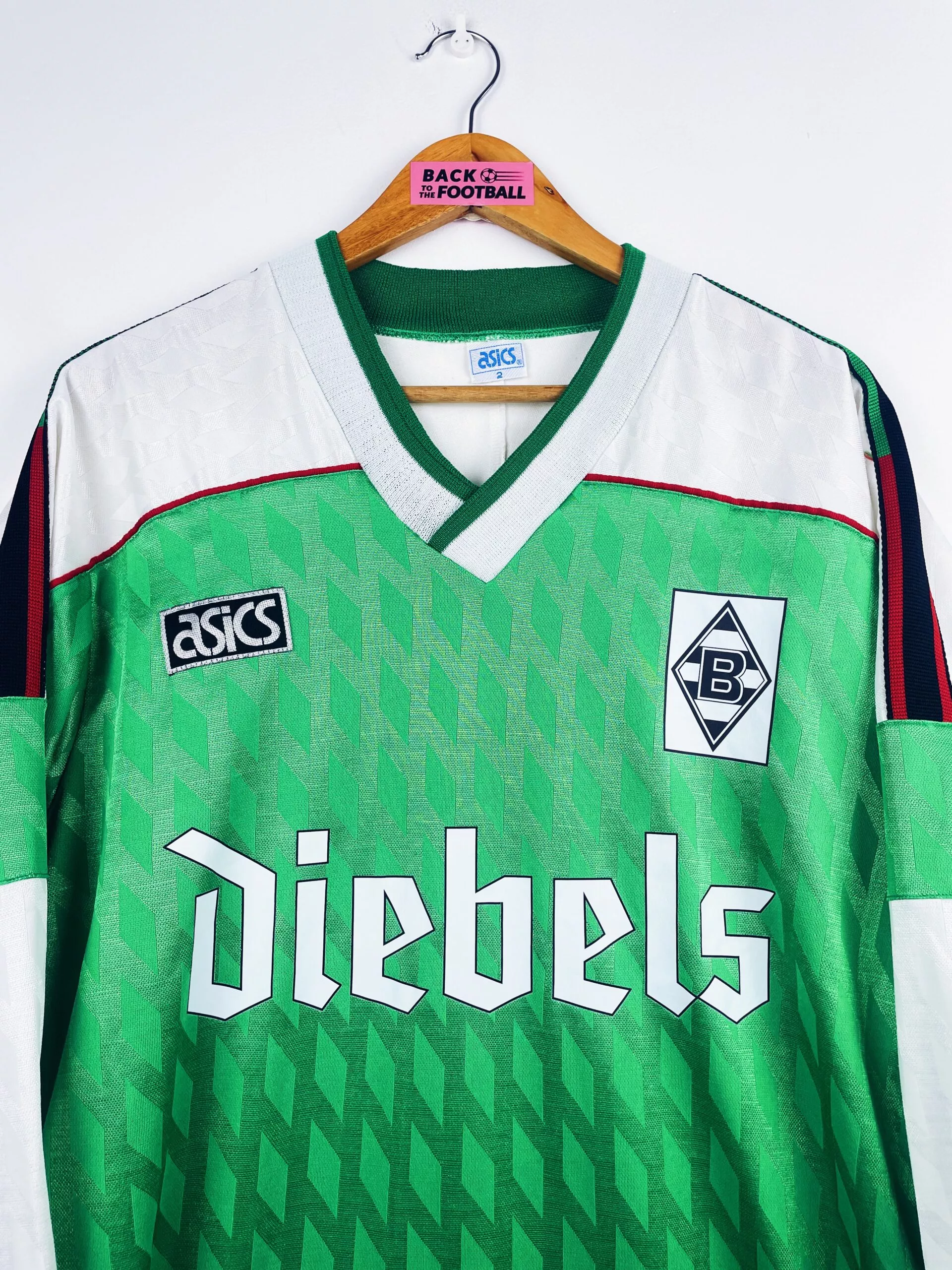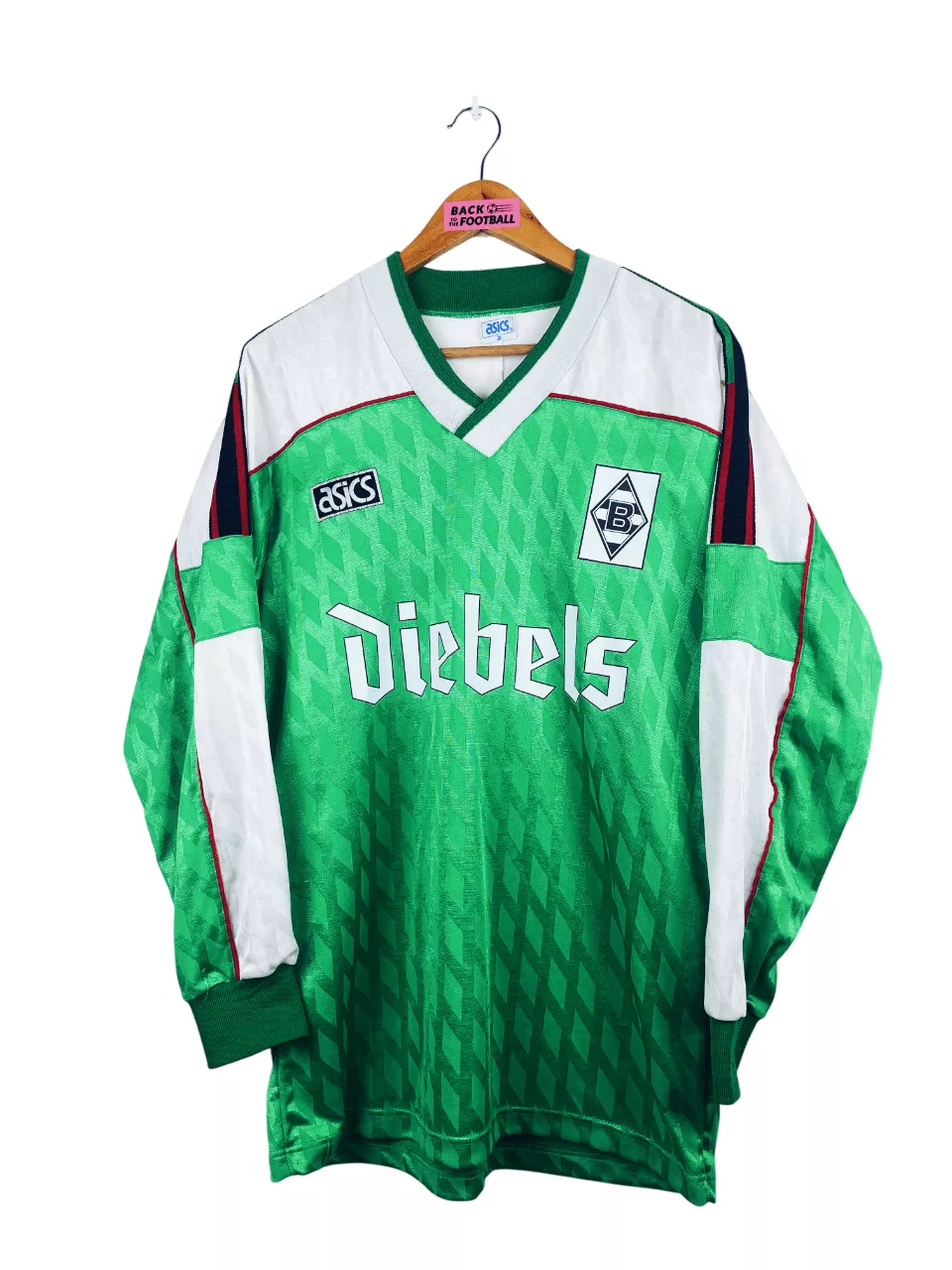 Taille : L Largeur : 53cm (aisselle à aisselle) Longueur : 76cm (base du col au bas) Si tu veux plus de détails, tu peux nous contacter par mail ou sur les réseaux 😉 Etat : 8.5/10, excellent état Le maillot : maillot vintage entrainement du Borussia Monchengladbach 1994/1995. L’écusson et le sponsor sont floqués, le logo Asics est brodé. Très beau maillot rétro du Borussia Monchengladbach ! Histoire : le club remporte la coupe d’Allemagne 3-0 contre Wolfsburg. Il termine à la 5ème place de Bundesliga.