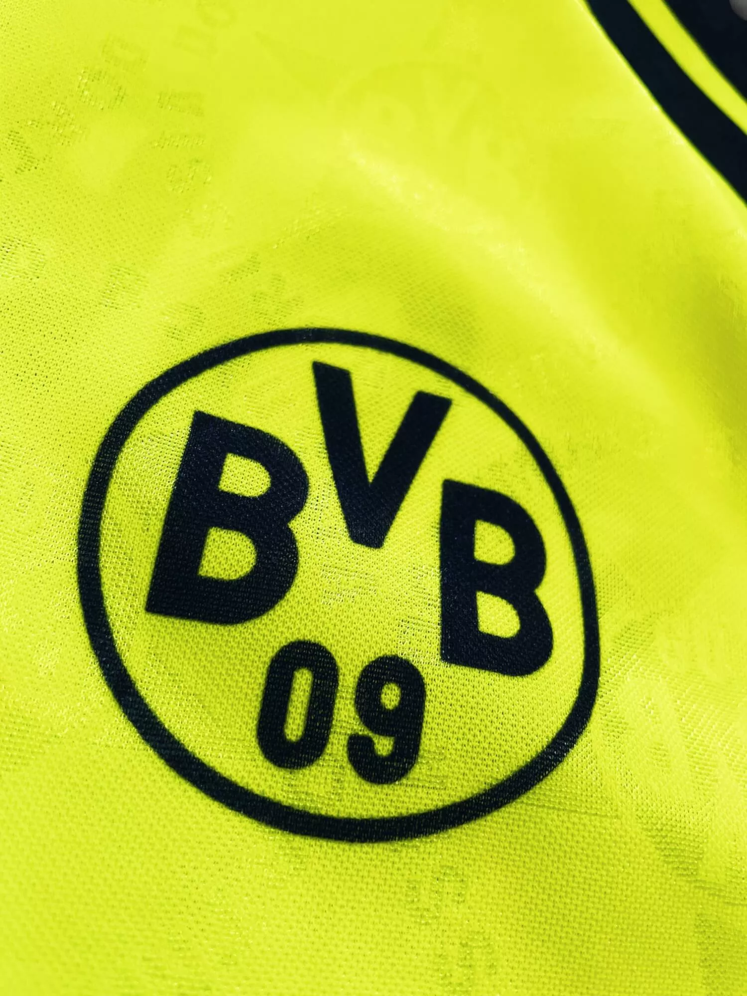Tu attends toujours un deuxième titre en Ligue des Champions en repensant au lobe de Lars Ricken en 1997? Tu trouves qu’il n’y a rien de plus beau que le mur jaune du Signal Iduna Park? Tu as appelé / tu vas appeler ton fils Marco? Tu attends avec impatience le prochain Klassiker? Alors tu trouveras forcément ton bonheur parmi nos maillots vintage du BVB. Et si t’as des pépites à vendre, on peut aussi racheter ton maillot collector du Borussia.