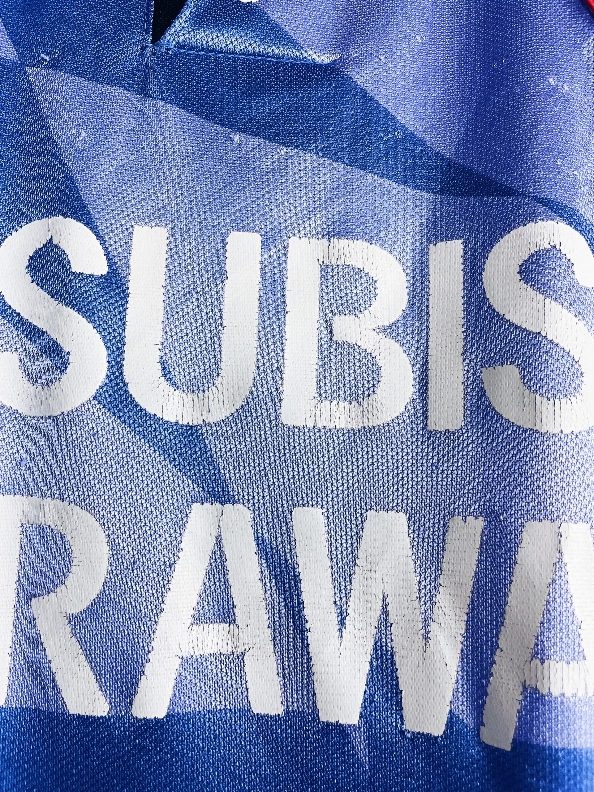 Taille : M Etat : 6/10, bon état mais beaucoup de bouloches Le maillot : maillot vintage du Mitsubishi Urawa 1994/1995. L’écusson est brodé. Le logo Mizuno et le club en sponsor sont floqués. Le patch de la J.League est brodé sur la manche. Rare maillot vintage de la J. League ! Histoire : sur la saison 1994, le club de Saitama termine à la dernière place de la J. League. Sur la saison 1995, les joueurs font mieux avec une 4ème place au classement régulier.