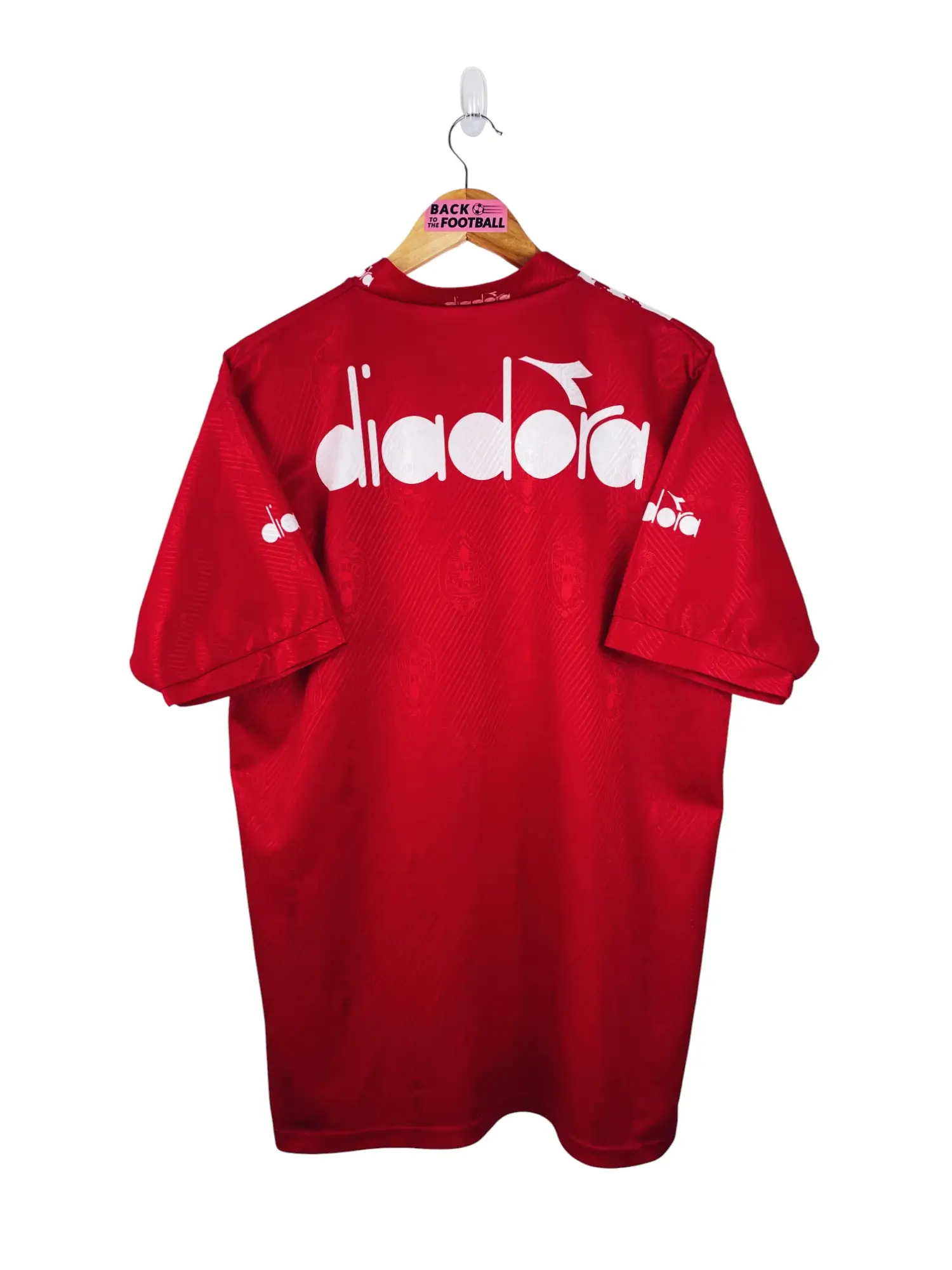 Taille : L/XL Largeur : 56cm (aisselle à aisselle) Longueur : 73cm (base du col au bas) Si tu veux plus de détails, tu peux nous contacter par mail ou sur les réseaux 😉 Etat : 8.5/10, excellent état, quelques bouloches Le maillot : maillot vintage entrainement de la Belgique 1994. L’écusson et le logo Diadora sont incrustés. Très beau maillot rétro de la Belgique ! Histoire : les Diables Rouges se qualifient pour le Mondial 94 en terminant 2èmes de leur groupe derrière la Roumanie. Ils passent le premier tour de la Coupe du Monde en terminant 3èmes de…