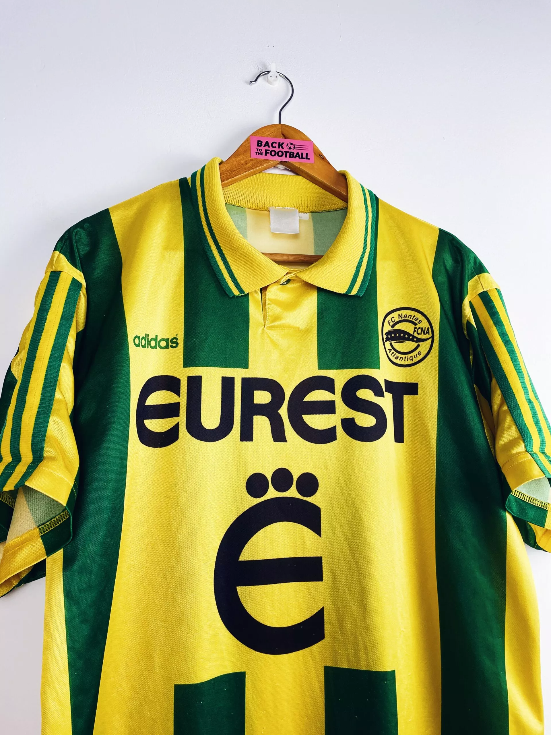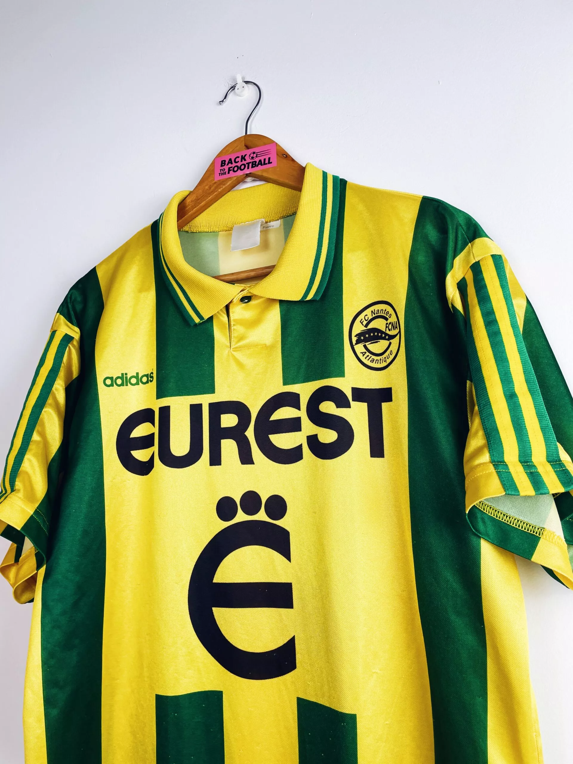 Fan du FC Nantes et de son maillot jaune et vert? Tu as déjà regardé une compilation des buts du jeu à la nantaise? Tu penses que Mickael Landreau est le meilleur gardien de tous les temps? Et que Marama Vahirua a inventé la meilleure célébration? Tu es tous les weekends à la Beaujoire? Alors tu devrais trouver ton bonheur parmi nos maillots de foot vintage de Nantes.