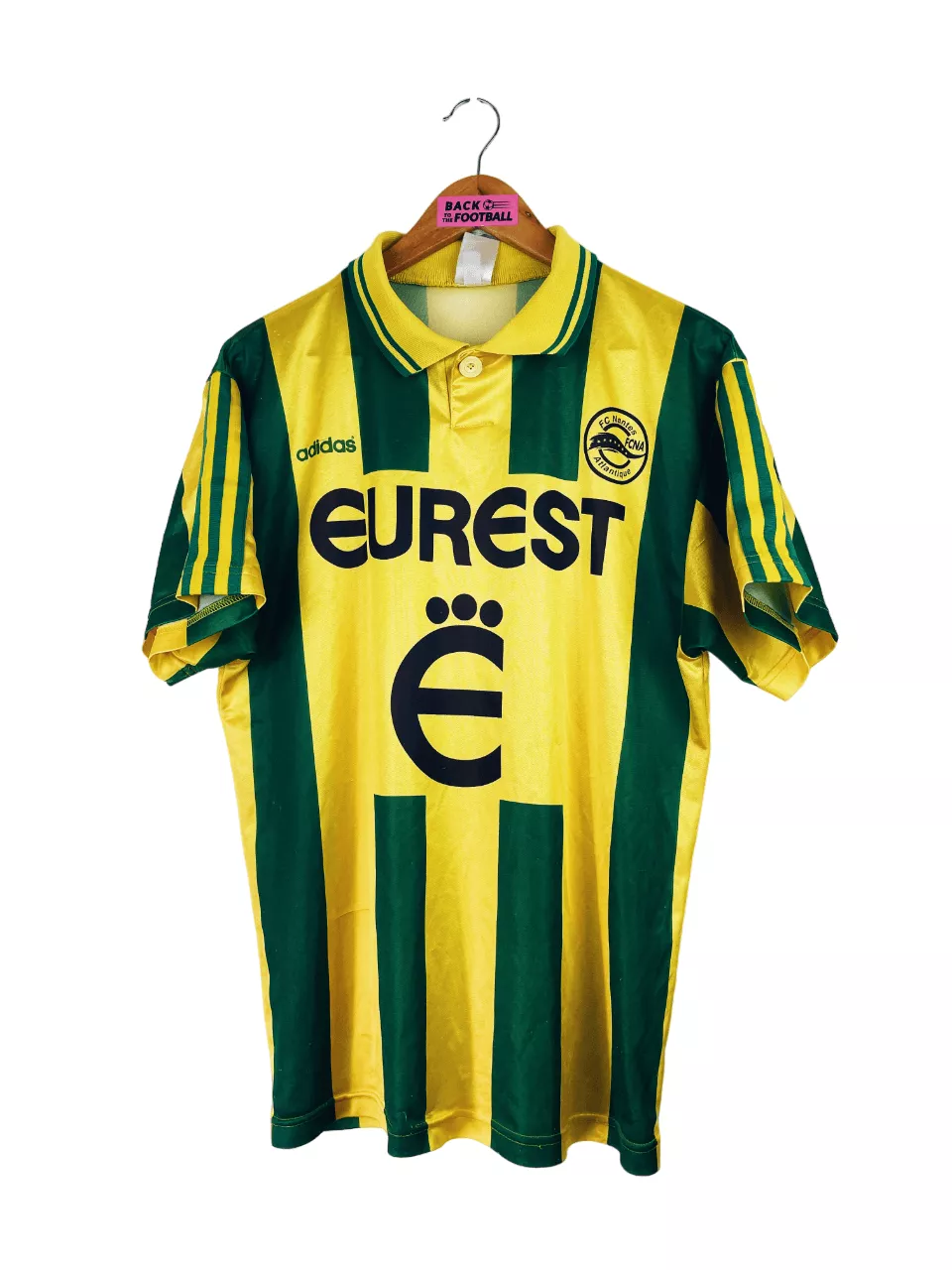 Fan du FC Nantes et de son maillot jaune et vert? Tu as déjà regardé une compilation des buts du jeu à la nantaise? Tu penses que Mickael Landreau est le meilleur gardien de tous les temps? Et que Marama Vahirua a inventé la meilleure célébration? Tu es tous les weekends à la Beaujoire? Alors tu devrais trouver ton bonheur parmi nos maillots de foot vintage de Nantes.