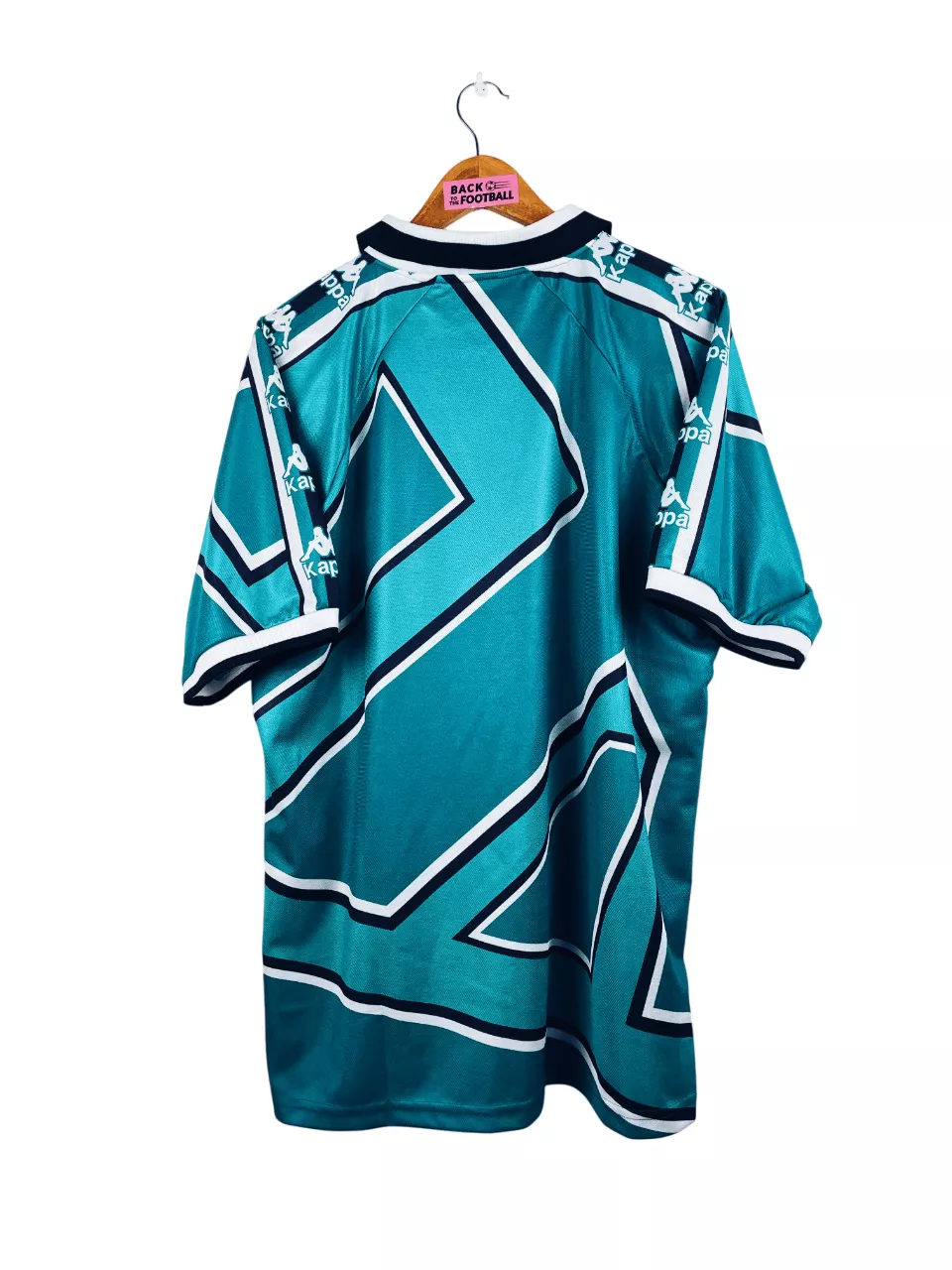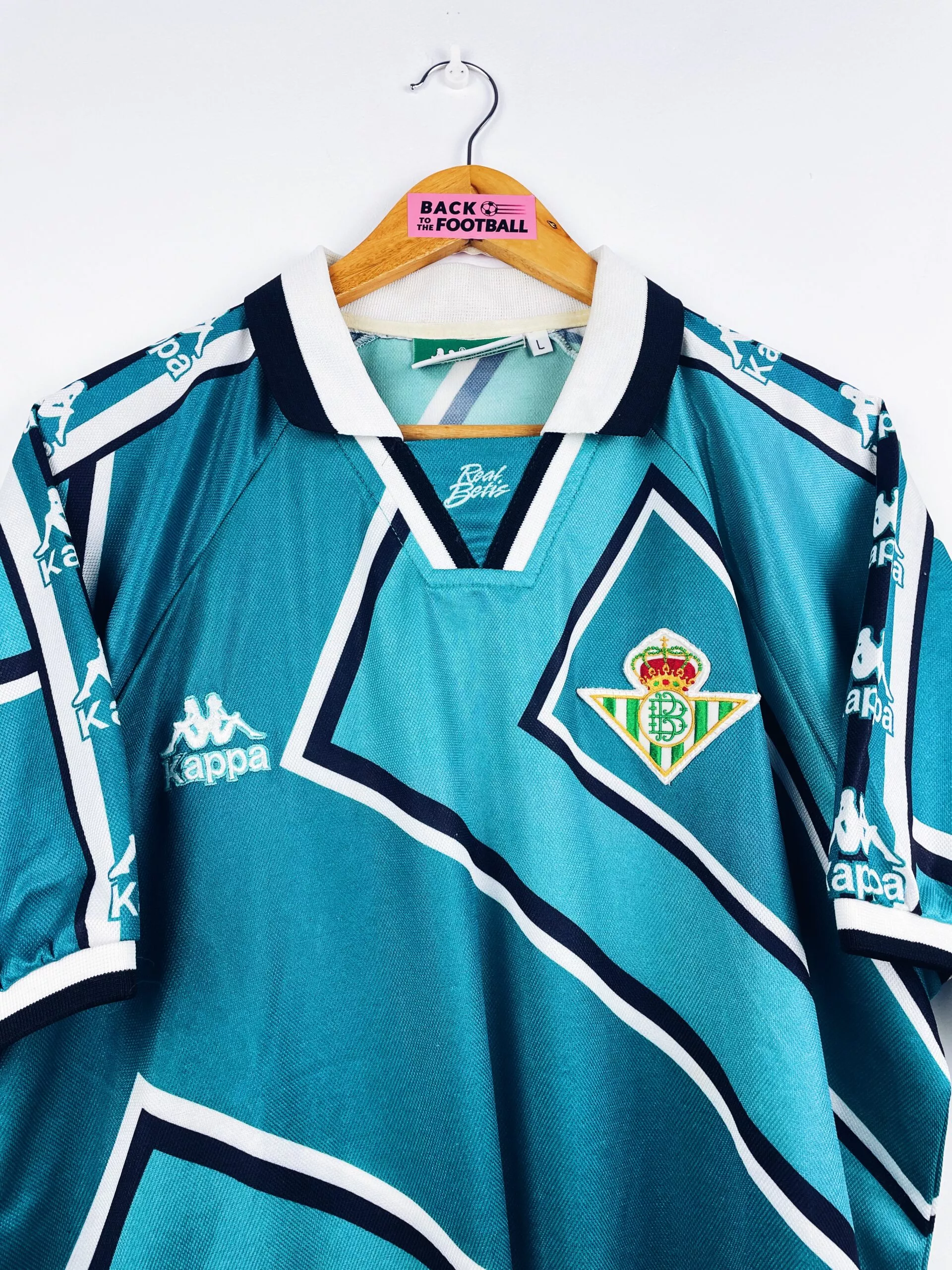 Taille : L Si tu veux plus de détails, tu peux nous contacter par mail ou sur les réseaux 😉 Etat : 9/10, excellent état Le maillot : maillot vintage extérieur du Betis Séville 1995/1997. L’écusson et le logo Kappa sont brodés. Le design est magnifique. Très beau maillot rétro du Real Betis ! Histoire : la première saison, le Betis termine à la 8ème place de Liga. Les Andalous seront éliminés rapidement en Coupe du Roi face à l’Atlético Madrid, futur vainqueur. En Coupe UEFA, le Betis tombera en huitième de finale contre les Girondins, à cause d’un magnifique…