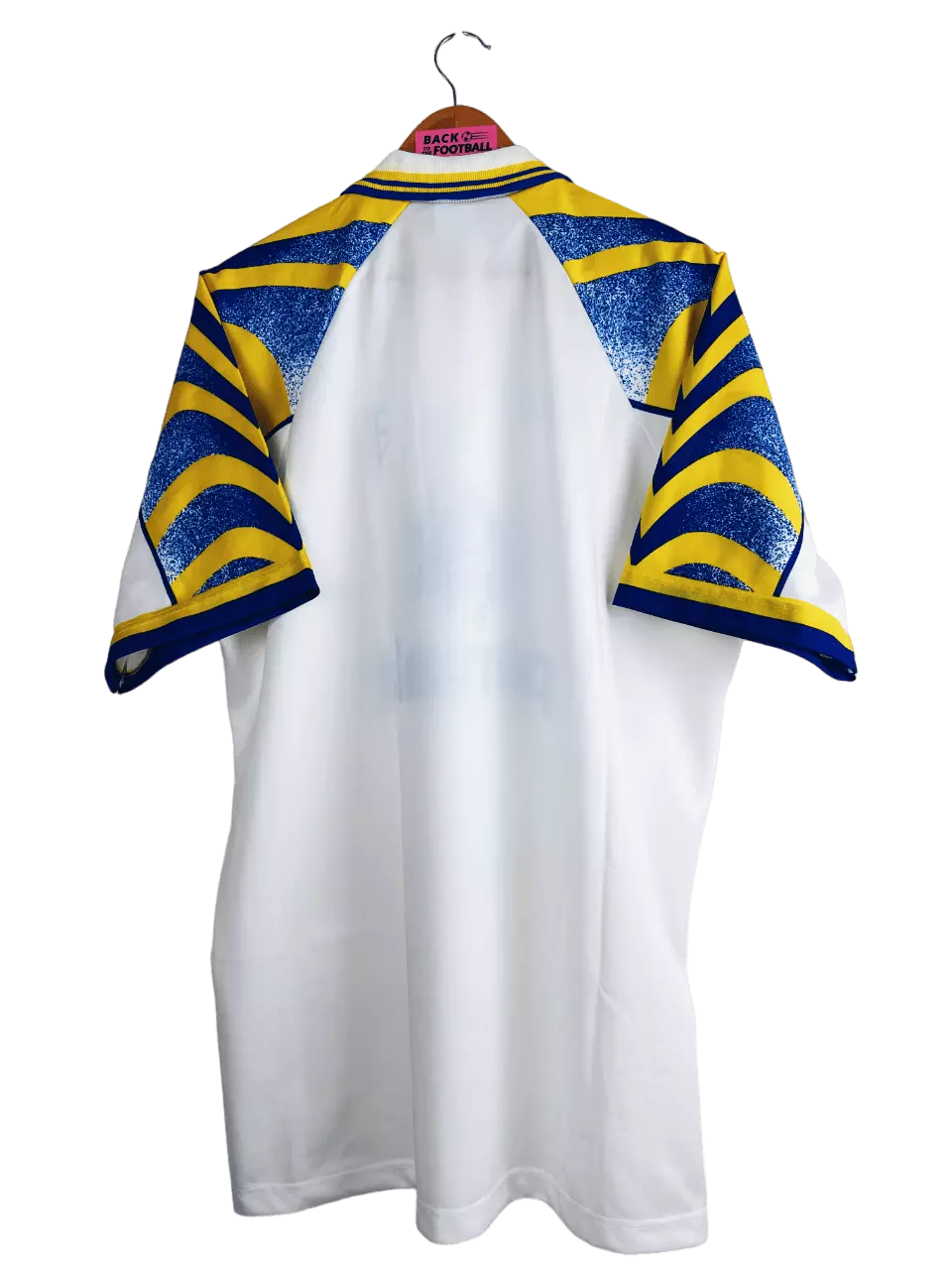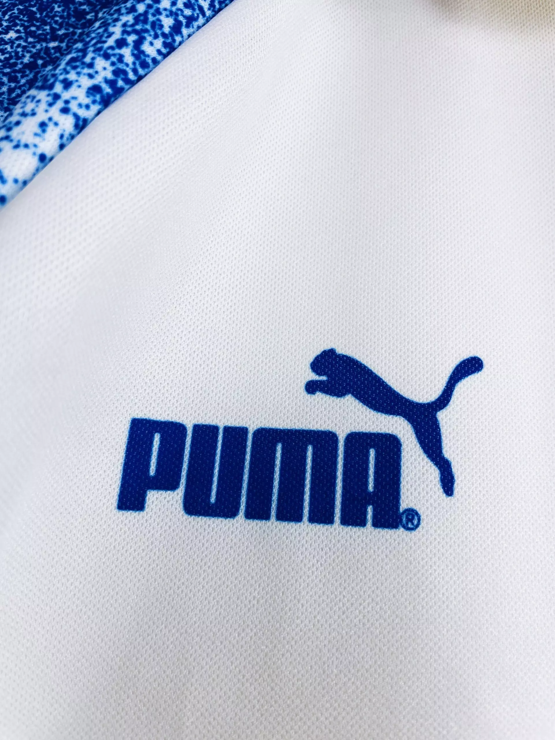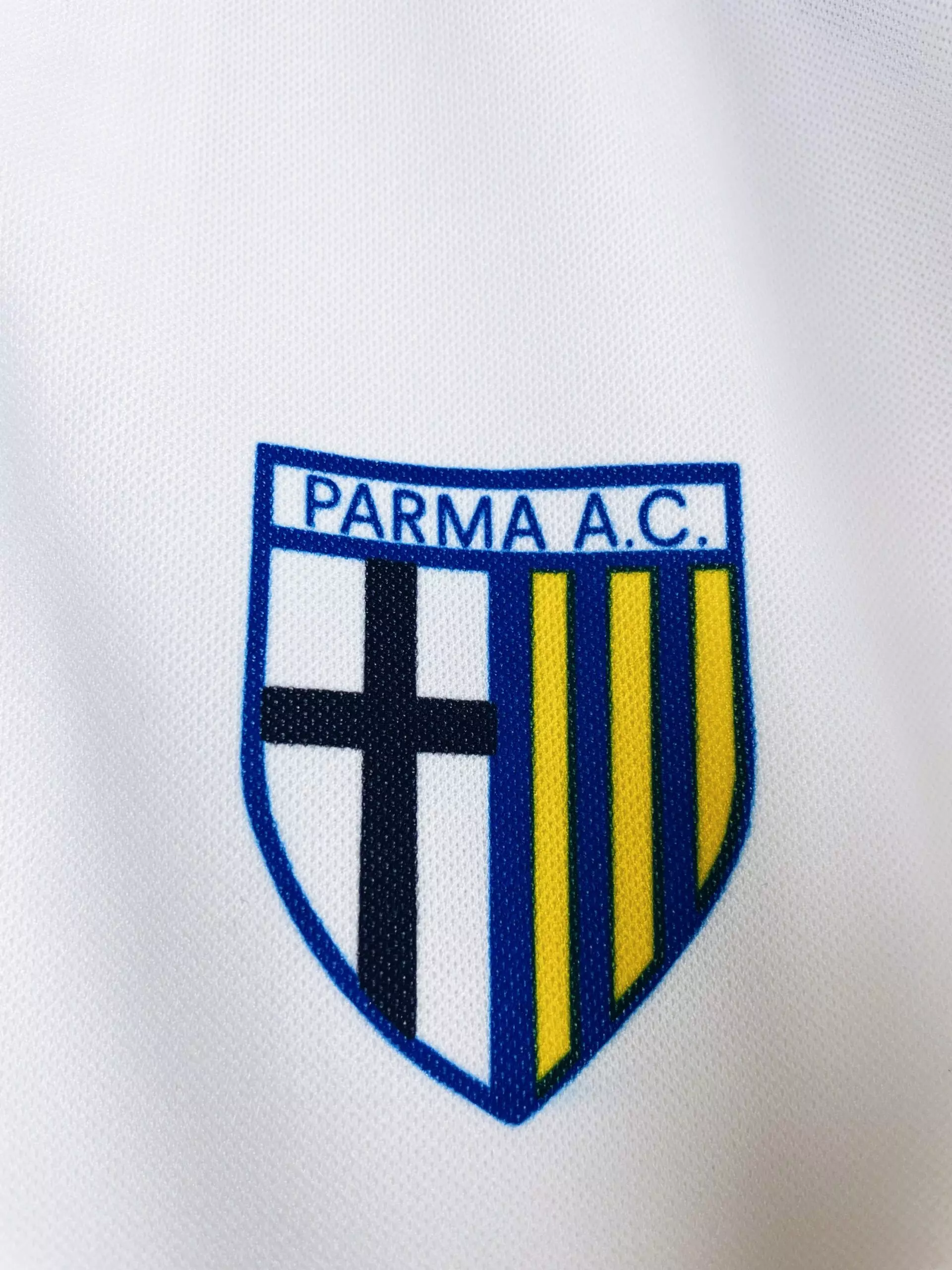 Taille : XL Etat : 8/10, excellent état Le maillot : maillot vintage domicile de Parme saisons 1995/1997. L’écusson, le logo Puma et le sponsor Parmalat sont incrustés au maillot. Les manches sont splendides. Très beau maillot rétro de Parme ! Histoire : le Parma FC terminera à la 6ème place de Serie A la première saison. Les Gialloblu iront jusqu’en quart de finale de la Coupe UEFA des vainqueurs de coupes, et s’inclineront contre le PSG. Zola sera le meilleur buteur avec 12 buts. La 2ème saison est meilleure avec une 2ème place en Serie A, 2 petits points…