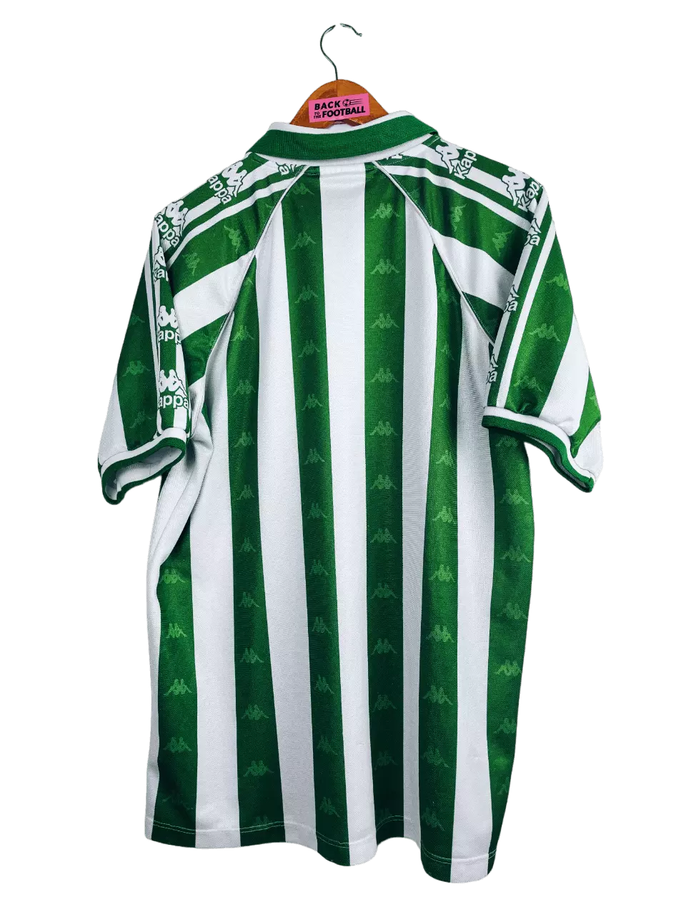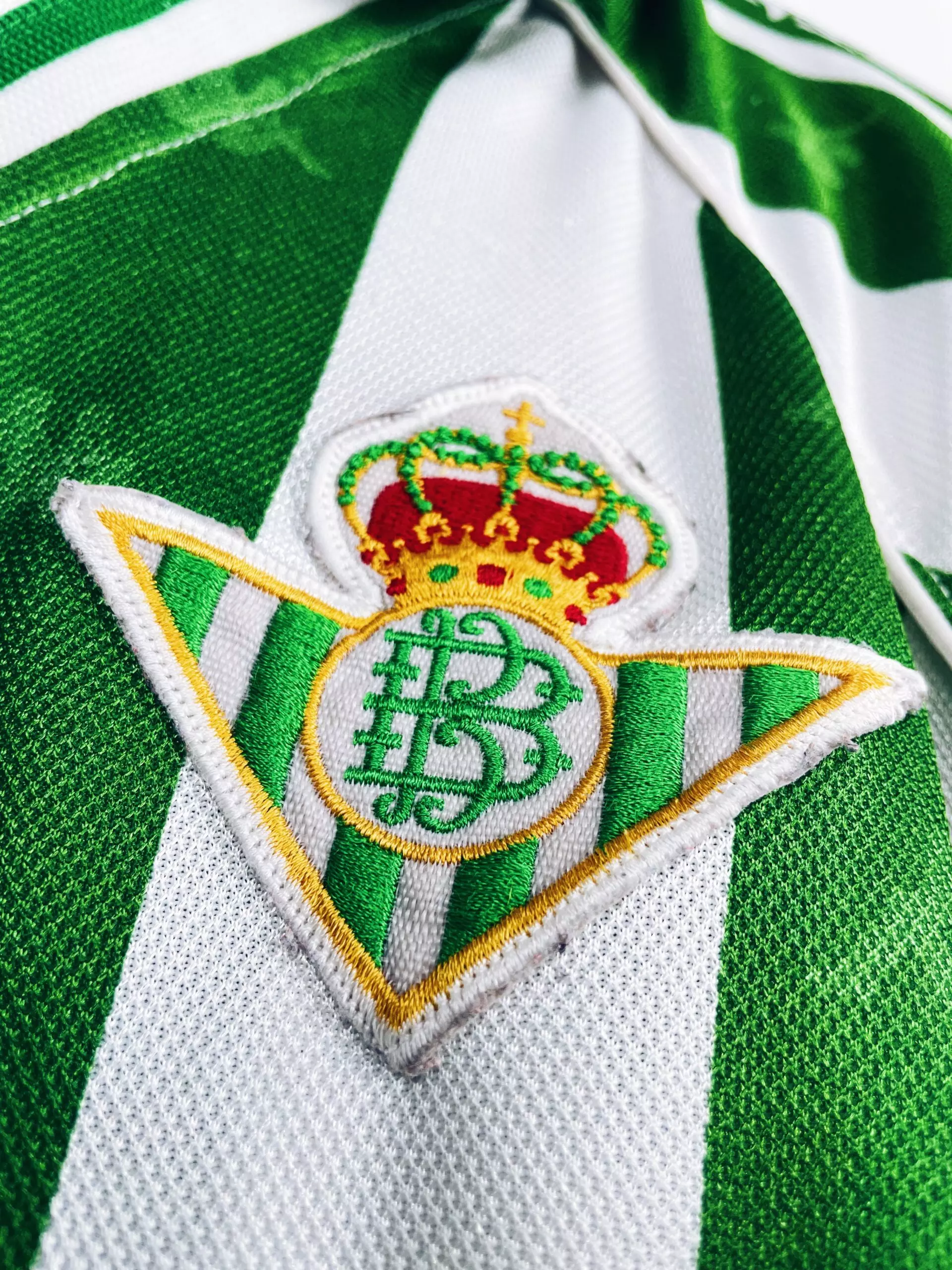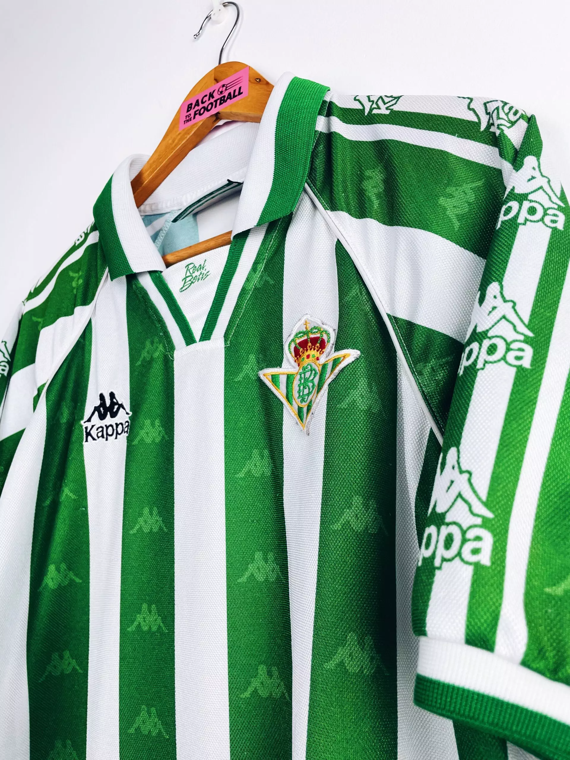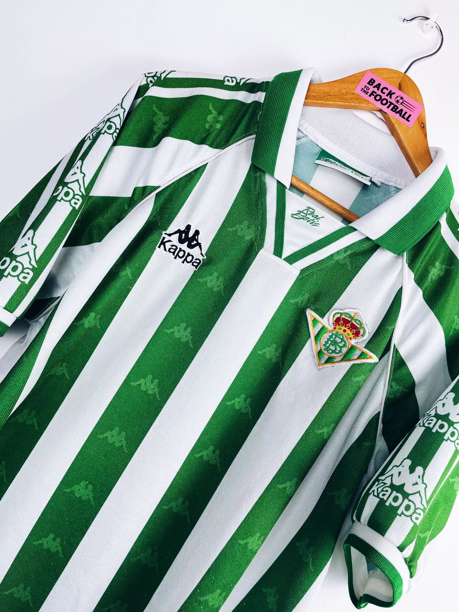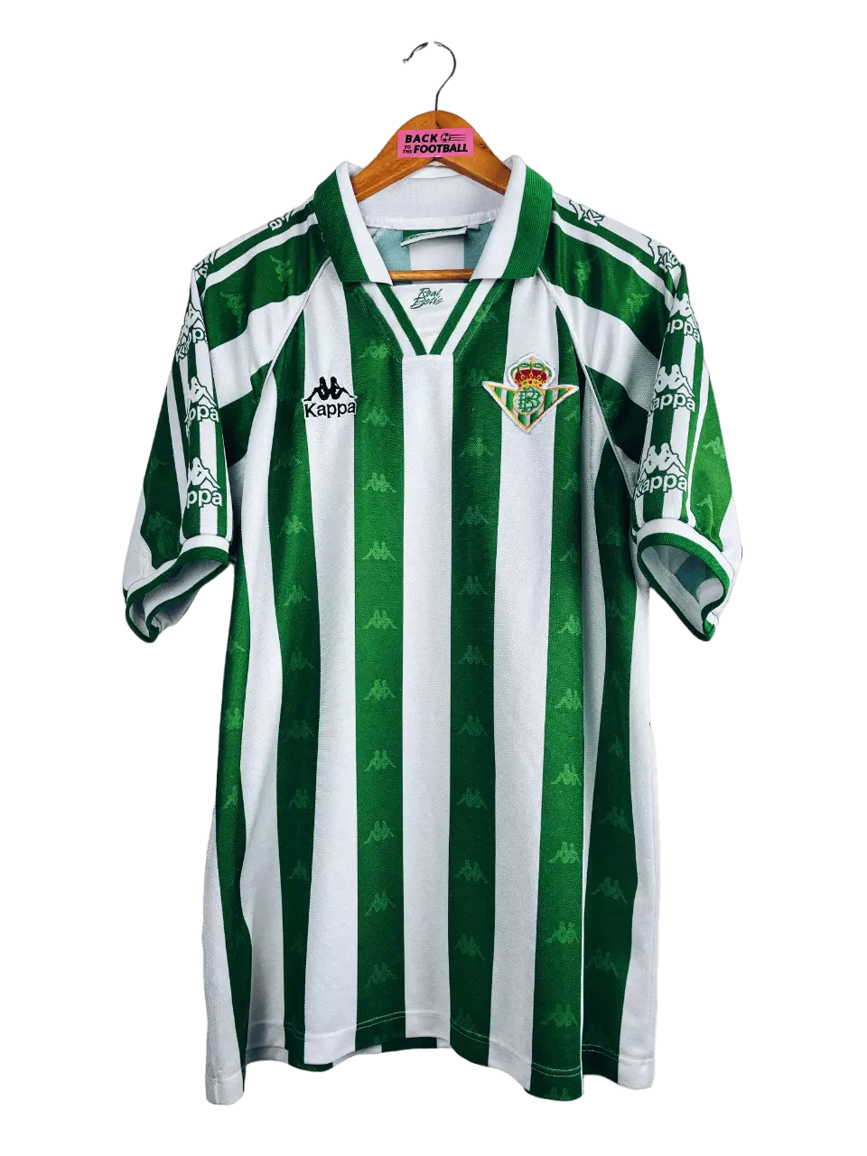 Taille : L Etat : 8/10, excellent état Le maillot : maillot vintage domicile du Betis Séville 1995/1997. L’écusson et le logo Kappa sont brodés. On peut voir le logo Kappa en tramé sur tout le maillot et sur les manches. Très beau maillot rétro du Real Betis ! Histoire : la première saison, le Betis termine à la 8ème place de Liga. Les Andalous seront éliminés rapidement en Coupe du Roi face à l’Atlético Madrid, futur vainqueur. En Coupe UEFA, le Betis tombera en huitième de finale contre les Girondins, à cause d’un magnifique but de Zidane notamment. Sur…