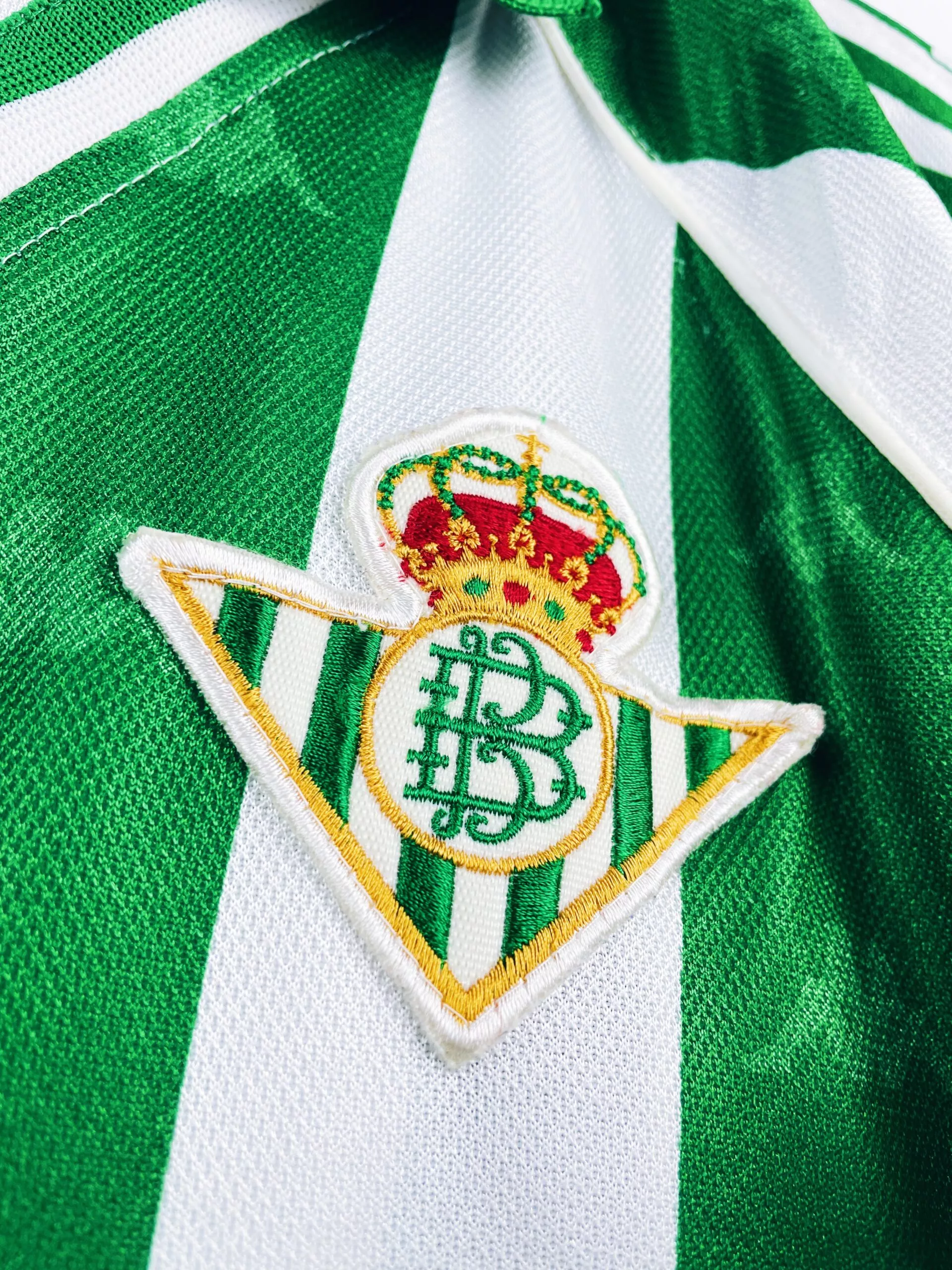 Tu cherches un maillot vintage du Betis? T’es fan des Verdiblancos? et de ce magnifique maillot aux rayures blanches et vertes? Tu attends un second titre en Liga comme l’arrivée du Messie? Pour toi la saison est sauvée du moment que le Betis remporte le derby de Séville? Tu trouves que c’est au stade Benito Villamarín qu’il y a la meilleure ambiance au monde? Tu vénères Joaquín? Alors tu devrais trouver ton bonheur parmi nos maillots de foot vintage du Real Betis.