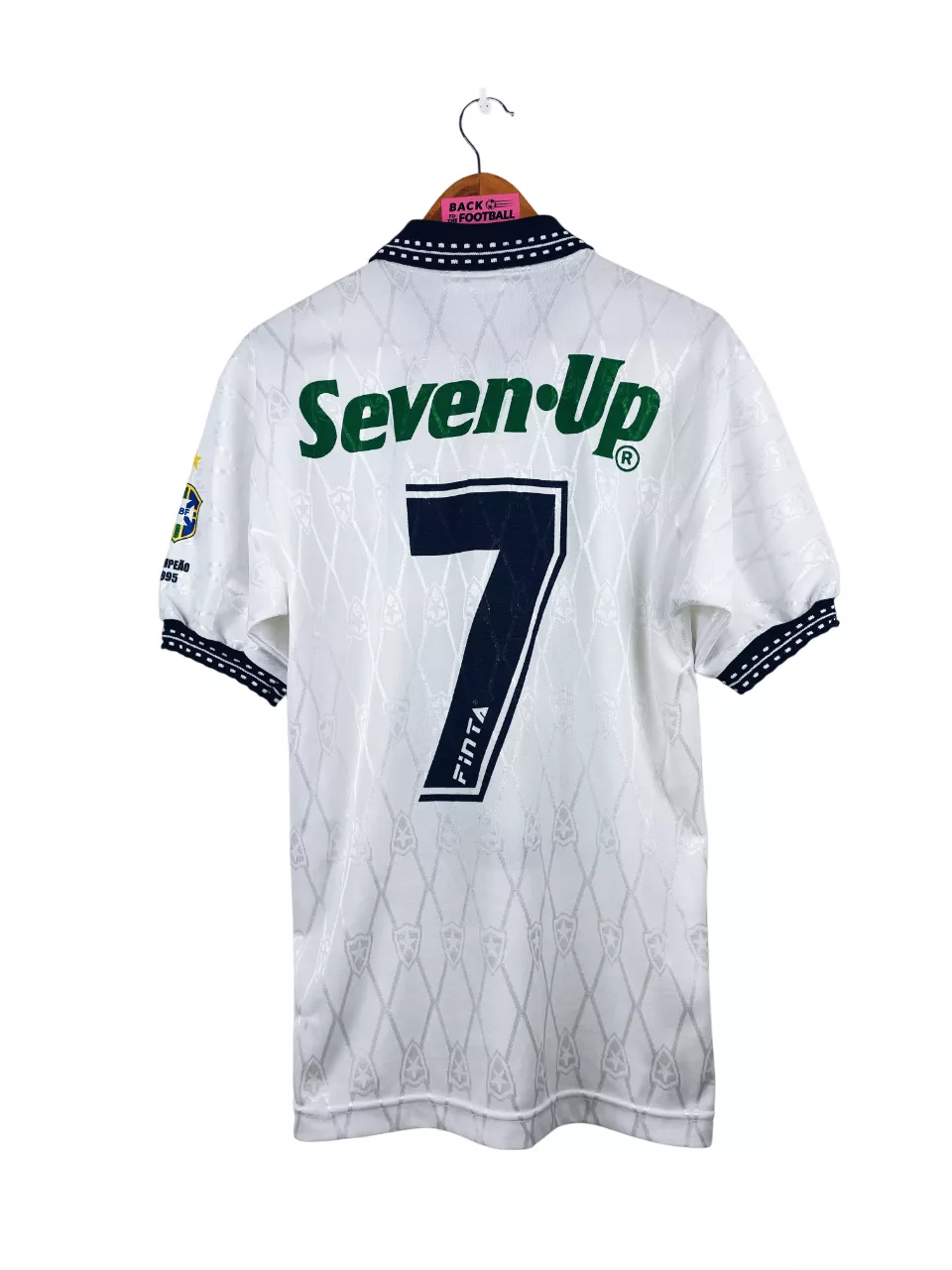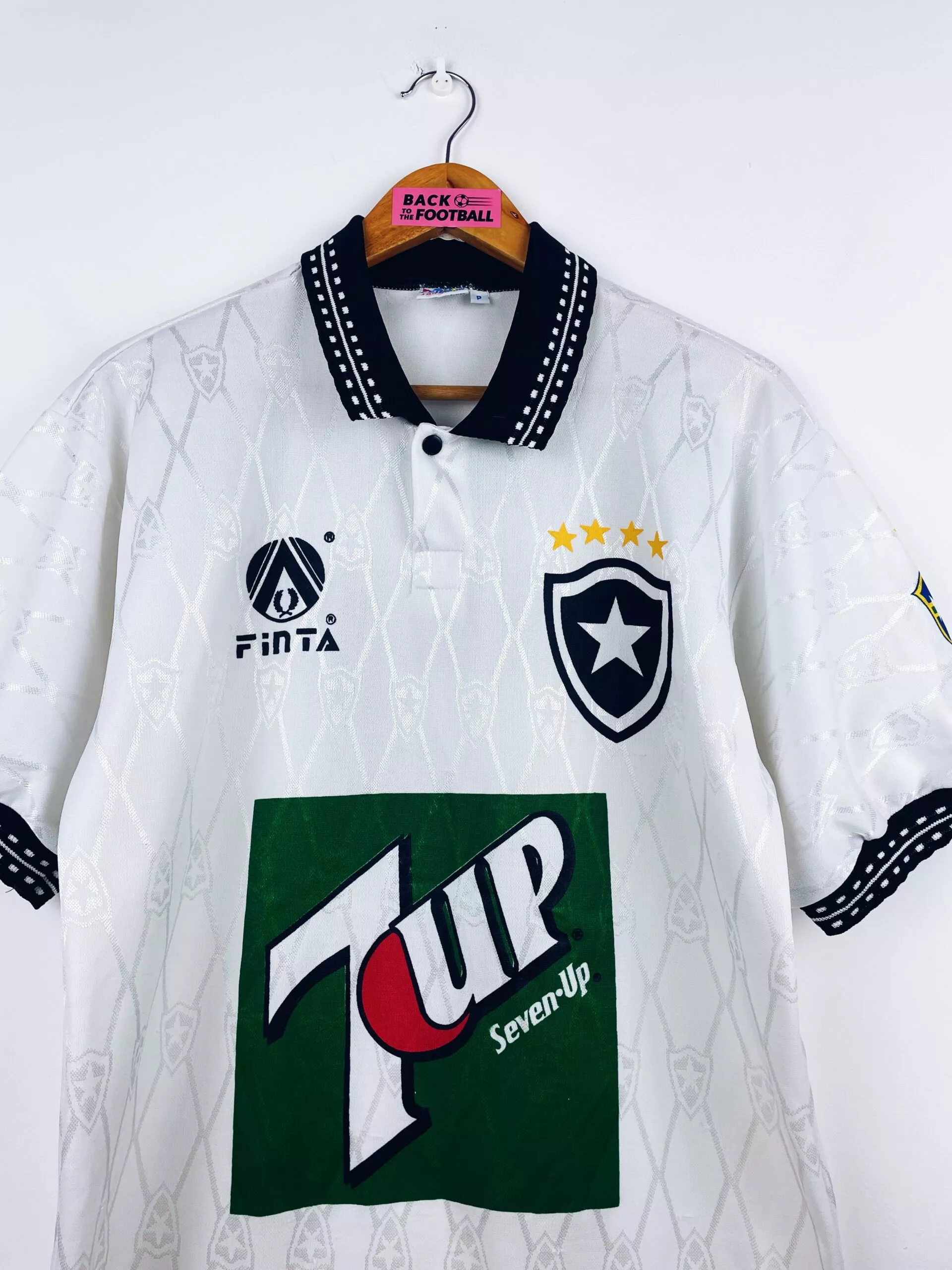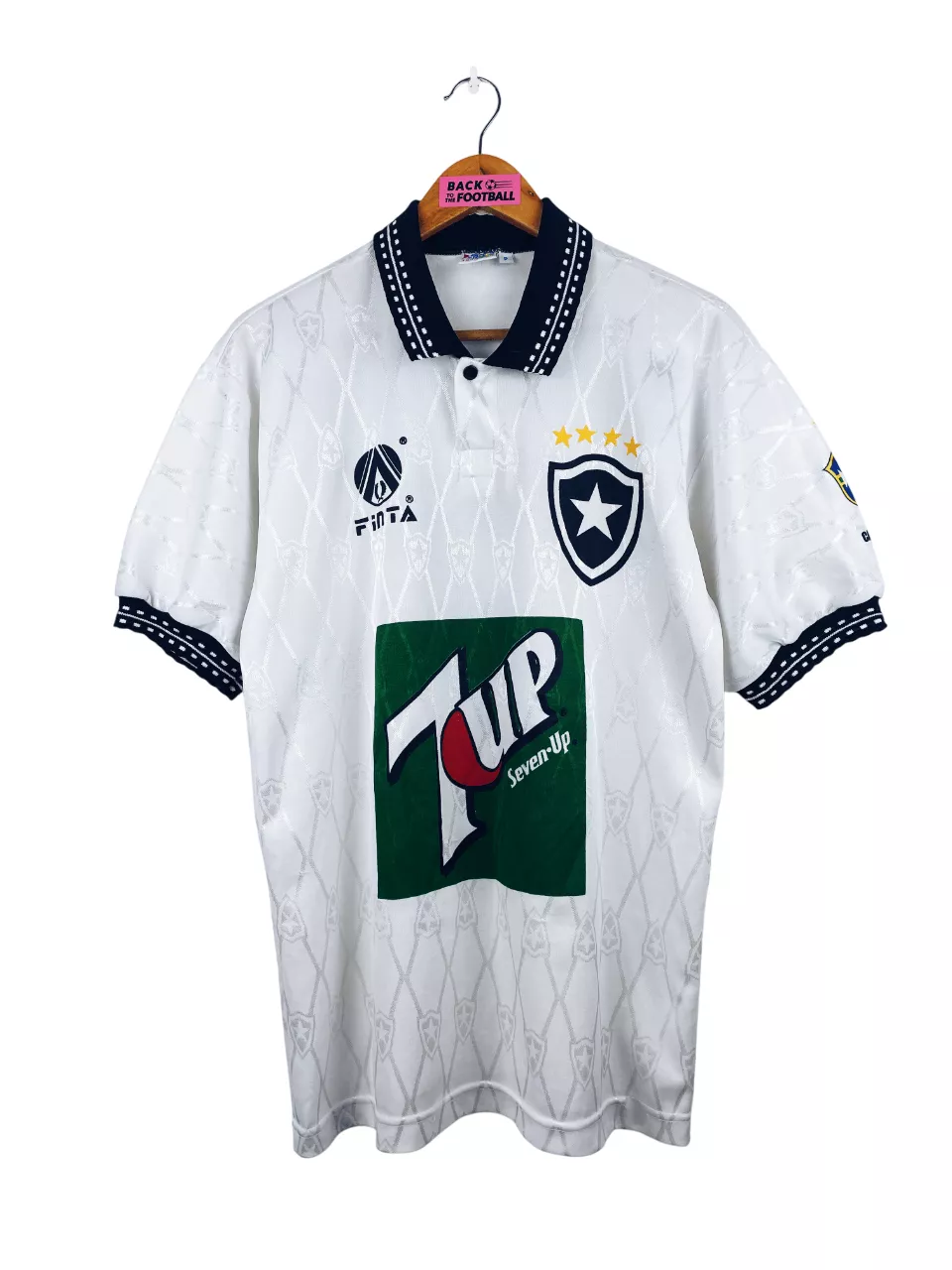 Taille : M Largeur : 50cm (aisselle à aisselle) Longueur : 71cm (base du col au bas) Si tu veux plus de détails, tu peux nous contacter par mail ou sur les réseaux 😉 Etat : 8/10, très bon état Le maillot : maillot vintage extérieur de Botafogo 1995. L’écusson, le logo Finta, le sponsor Seven Up et le numéro 7 au dos sont en flocage épais. Le patch Campeao 1995 sur la manche est incrusté. On peut voir l’écusson en tramé. Très beau maillot rétro de Botafogo ! Histoire : très belle saison du club de Rio de Janeiro…