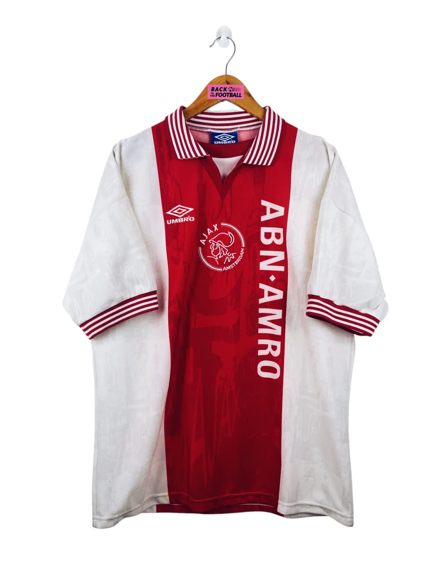 Taille : L – taille large Largeur : 57cm (aisselle à aisselle) Longueur : 74cm (base du col au bas) Si tu veux plus de détails, tu peux nous contacter par mail ou sur les réseaux 😉 Etat : 9/10, excellent état Le maillot : maillot vintage domicile de l’Ajax 1996/1997. L’écusson et le logo Umbro sont brodés, le sponsor ABN AMRO est incrusté. Très beau maillot rétro de l’Ajax Amsterdam ! Histoire : l’Ajax, tenant du titre, finira à la 4ème place d’Eredivisie. En Ligue des Champions, l’Ajax sort de son groupe 2ème, derrière l’AJ Auxerre. En quart, les…