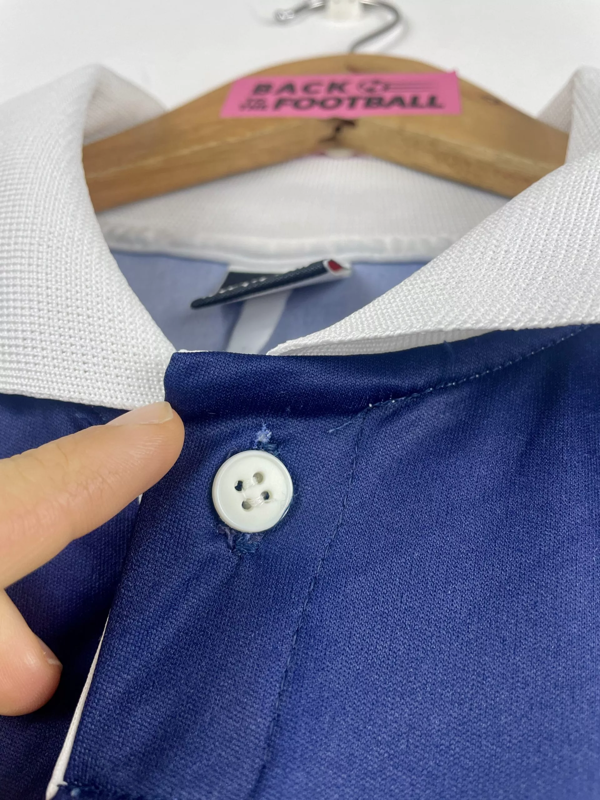 Taille : L Largeur : 54cm (aisselle à aisselle) Longueur : 73cm (base du col au bas) Si tu veux plus de détails, tu peux nous contacter par mail ou sur les réseaux 😉 Etat : 8/10, très bon état, des peluches sur le devant, un accroc au niveau du bouton (voir photos) Le maillot : maillot vintage domicile des Girondins de Bordeaux 1996/1997. L’écusson, le logo Le Coq Sportif et le sponsor Waïti sont incrustés. Très beau maillot rétro des Girondins ! Histoire : le FCGB de Rolland Courbis termine à la 4ème place de D1. Les girondins seront…