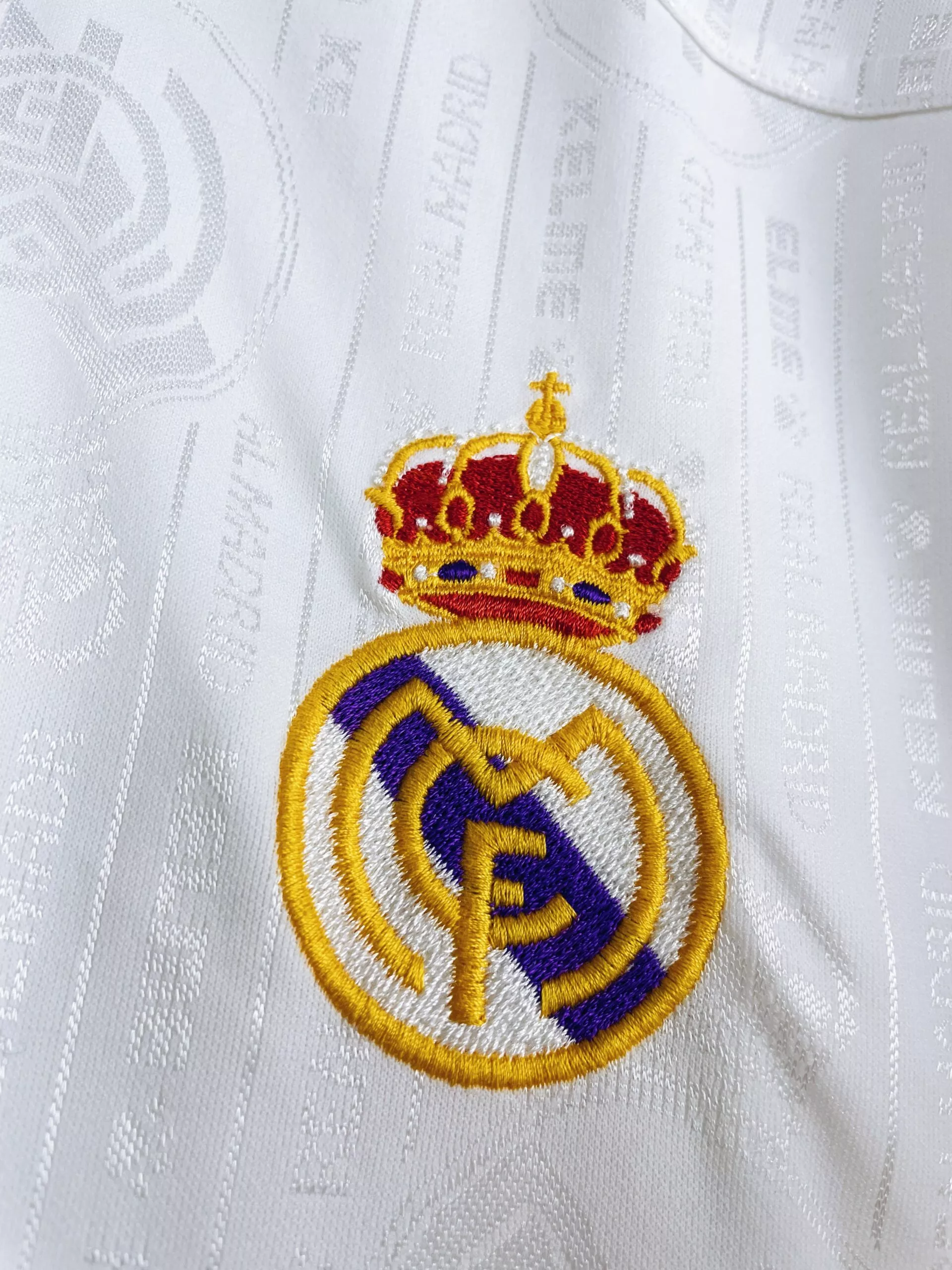 Fan du Real Madrid et de son maillot blanc? Tu considères que les Galactiques étaient les meilleurs joueurs du monde? Tu as une photo de Zidane sur ta table de chevet? Et un tatouage de Cristiano Ronaldo sur le mollet? Tu trouves que le Santiago Bernabéu est le plus beau stade au monde? Alors tu devrais trouver ton bonheur parmi nos maillots de foot vintage du Real Madrid.