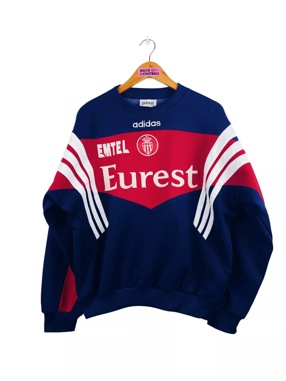 Taille : M Si tu veux plus de détails, tu peux nous contacter par mail ou sur les réseaux 😉 Etat : 8/10, très bon état, des petites bouloches Le sweatshirt : sweat vintage de l’AS Monaco 1996/1998. L’écusson et les sponsors sont en feutrine, le logo Adidas est brodé. Très beau sweat rétro de Monaco ! Histoire : la 1ère saison, les hommes de Jean Tigana remportent le championnat. Ils iront jusqu’en demi de Coupe UEFA mais s’inclineront contre l’Inter. La 2ème saison, les monégasques terminent à la 3ème place de D1. Ils arrivent jusqu’en demi de Ligue des…