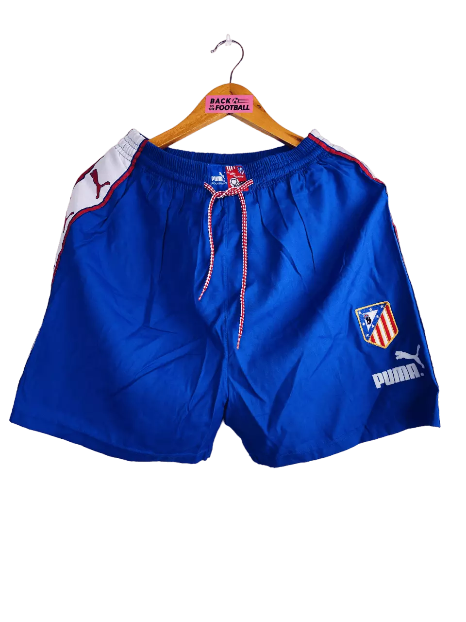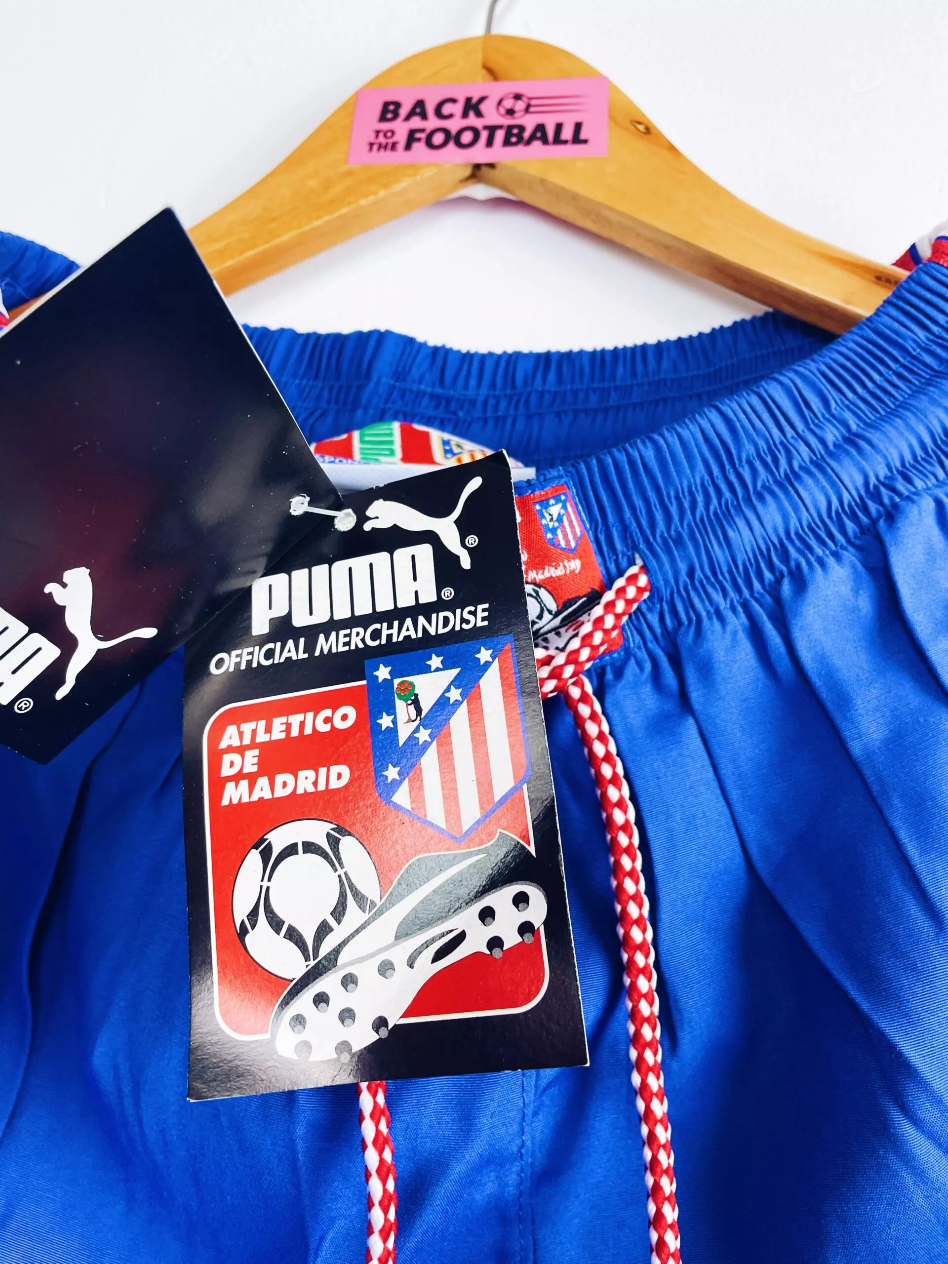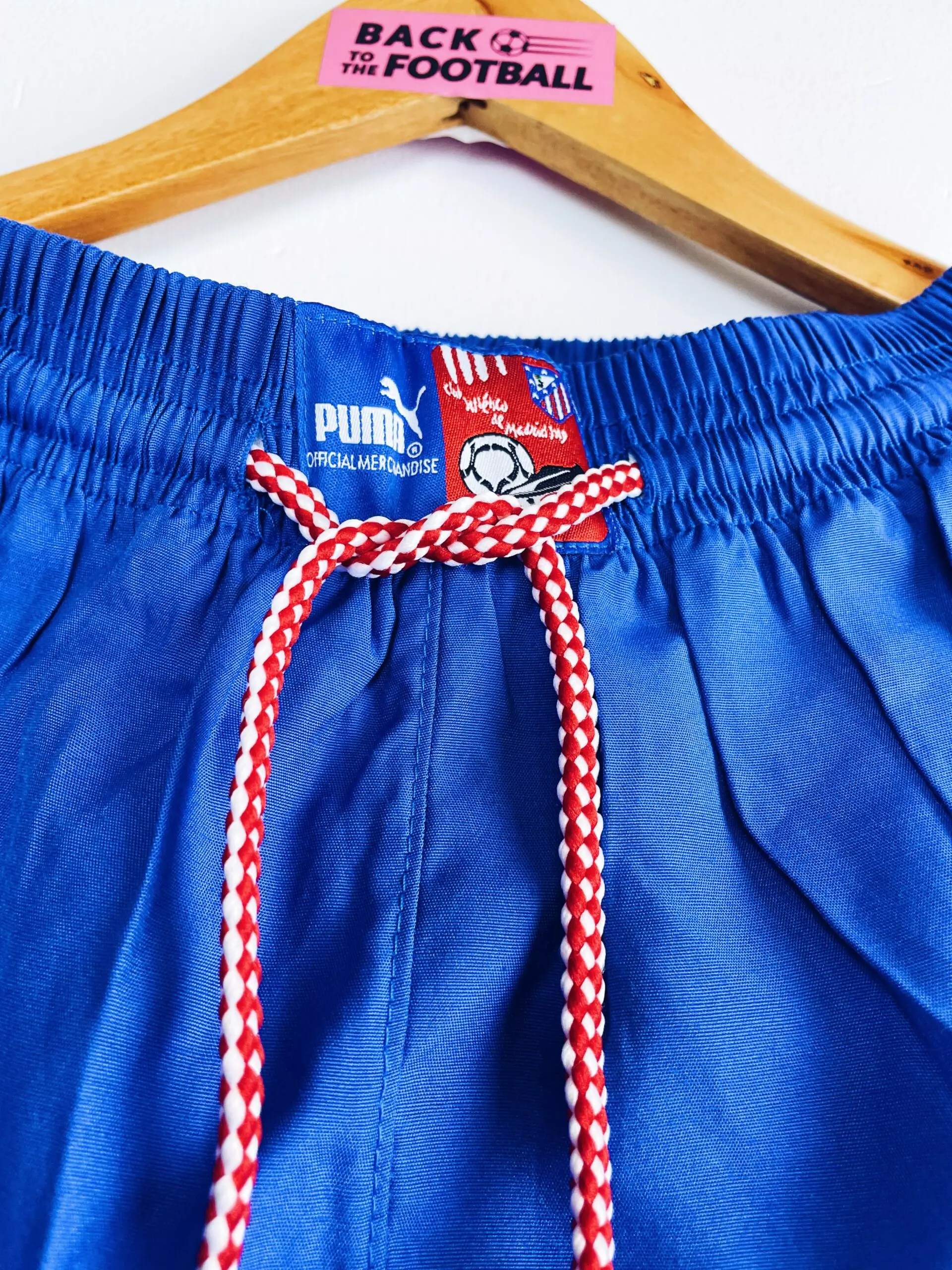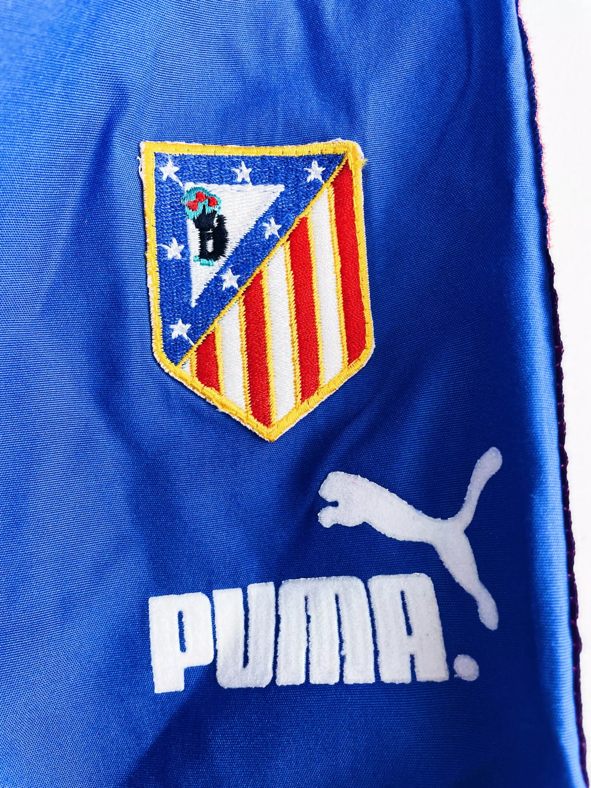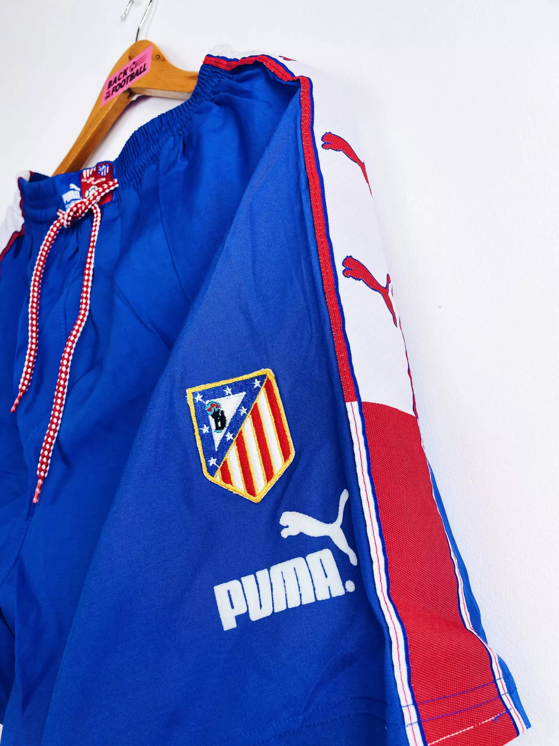 Taille : L Etat : neuf avec étiquettes (BNWT) Le short : short vintage domicile de l’Atlético Madrid 1997/1998 BNWT (neuf avec étiquettes). L’écusson est brodé, le logo Puma est en feutrine. Le short a toujours les étiquettes d’époque, en pesetas ! Très beau short rétro de l’Atlético Madrid ! Et le maillot assorti est dispo ici (mais en XL). Histoire : saison correcte de l’Atlético Madrid qui terminera à la 7ème place de Liga. Les Colchoneros feront surtout un beau parcours en Coupe UEFA. Après avoir éliminé Leicester, le PAOK, le Dinamo Zagreb et Aston Villa, ils seront éliminés…