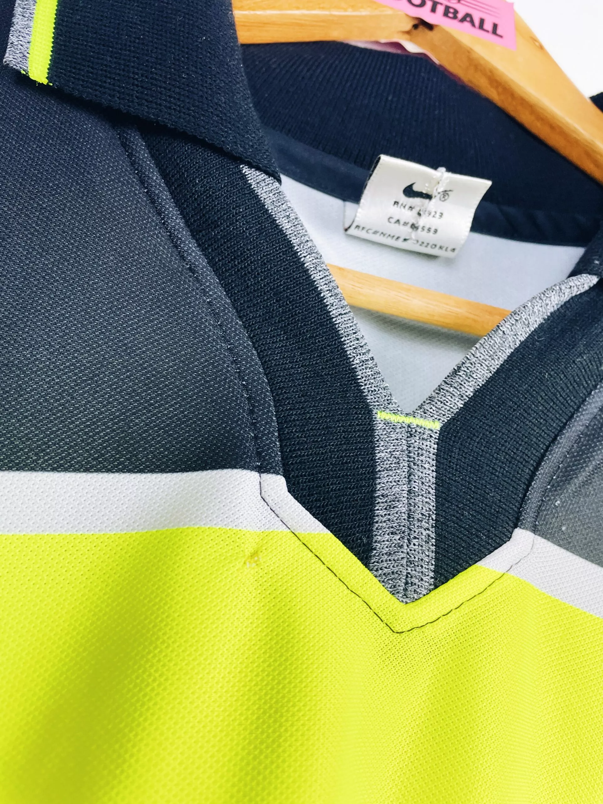 Taille : M Etat : 8/10, très bon état, hormis un accroc au niveau du col (voir photo) Le maillot : maillot vintage domicile du Borussia Dortmund 1997/1998, en version manches longues. L’écusson et le logo Nike sont brodés. Le sponsor Die Continentale est incrusté au maillot. Très beau maillot rétro de Dortmund ! Histoire : le BVB fera une mauvaise saison en Bundesliga avec une 10ème place. Les joueurs feront un très beau parcours en Ligue des Champions, après avoir été champions la saison passée. Après être sortis à la première place de leur groupe, devant Parme, le Sparta…
