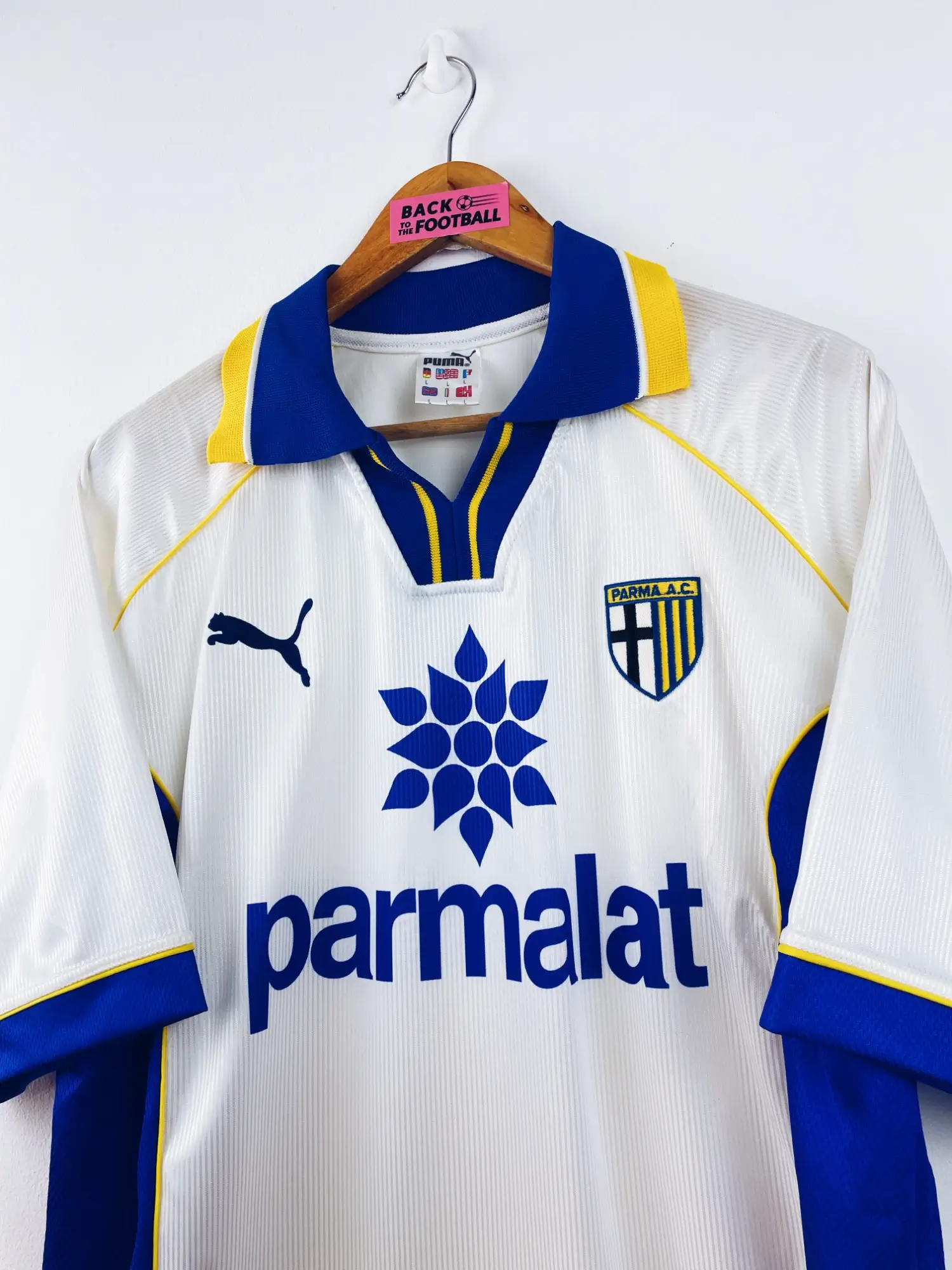 Tu rêves encore des années 90 et des épopées Européennes? Et des Thuram, Cannavaro, Buffon, Crespo, Boghossian…? Tu ne loupes pas un match au Stadio Ennio Tardini? Et encore moins le derby dell’Emilia contre Bologne? Tu attends impatiemment un retour en Serie A et encore plus un premier titre de champion? Alors tu devrais trouver ton bonheur parmi nos maillots de foot vintage de Parme. Et si t’as des pépites à vendre, on peut aussi racheter ton maillot collector de Parma.