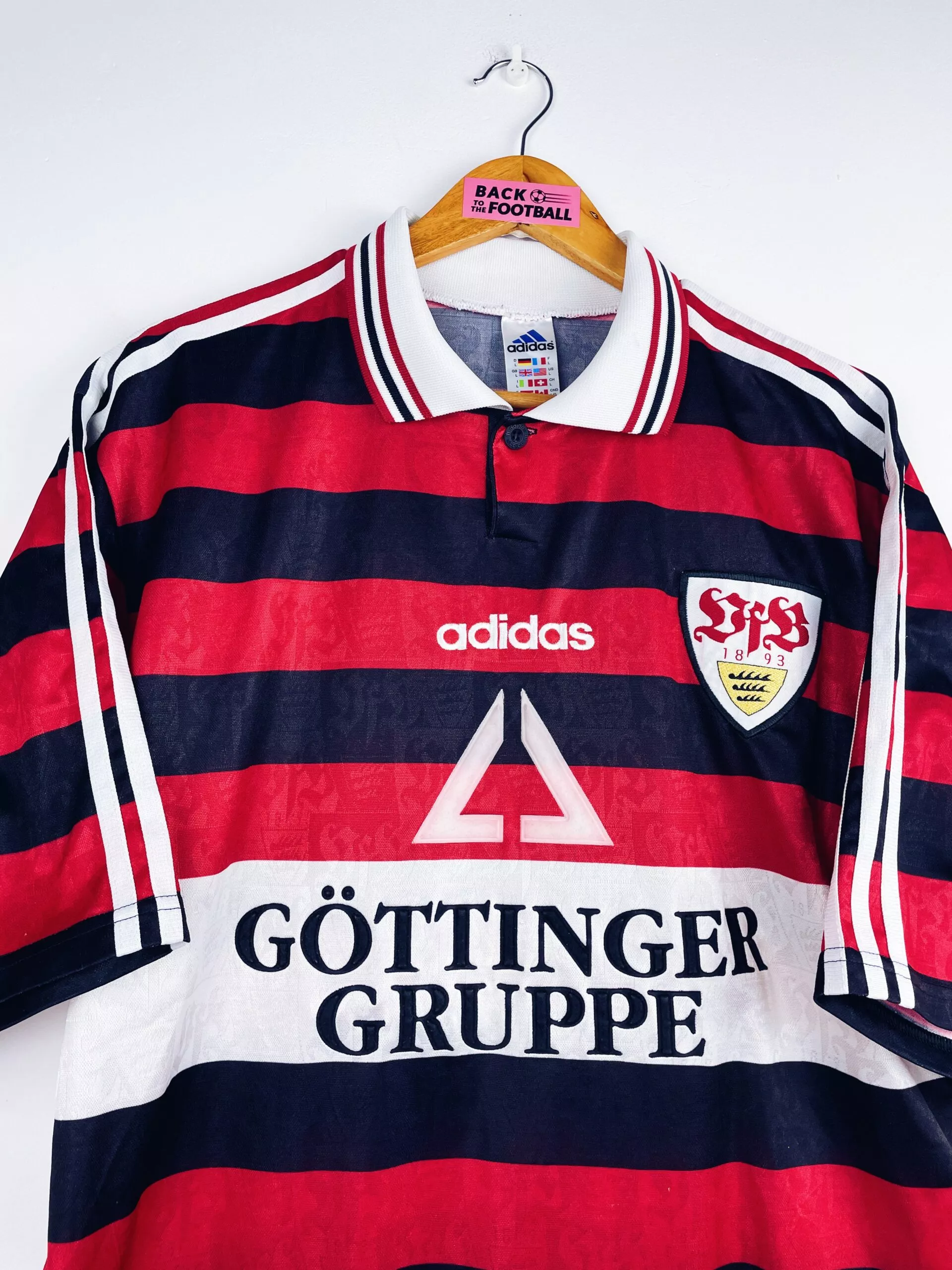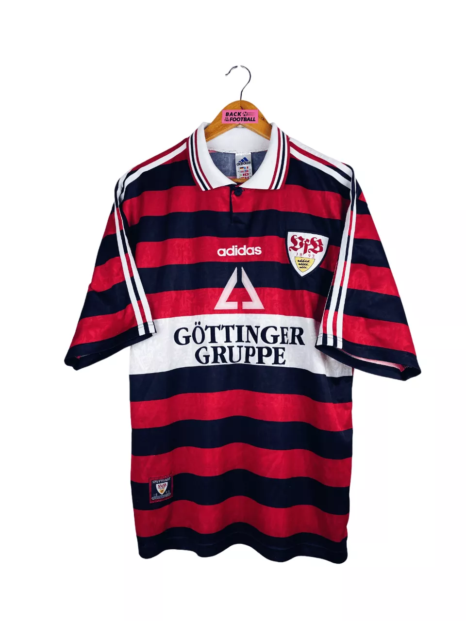 Taille : L Si tu veux plus de détails, tu peux nous contacter par mail ou sur les réseaux 😉 Etat : 8/10, très bon état, quelques légères bouloches Le maillot : maillot vintage extérieur de Stuttgart 1997/1998. L’écusson et le logo Adidas sont brodés, le sponsor est en feutrine. Très beau maillot rétro de Stuttgart ! Histoire : Suttgart terminera à la 4ème place de Bundesliga. Le VfB sera éliminé en demi de coupe d’Allemagne face au Bayern. Très beau parcours en Coupe d’Europe des vainqueurs de coupe avec une finale, malheureusement perdue face à Chelsea.