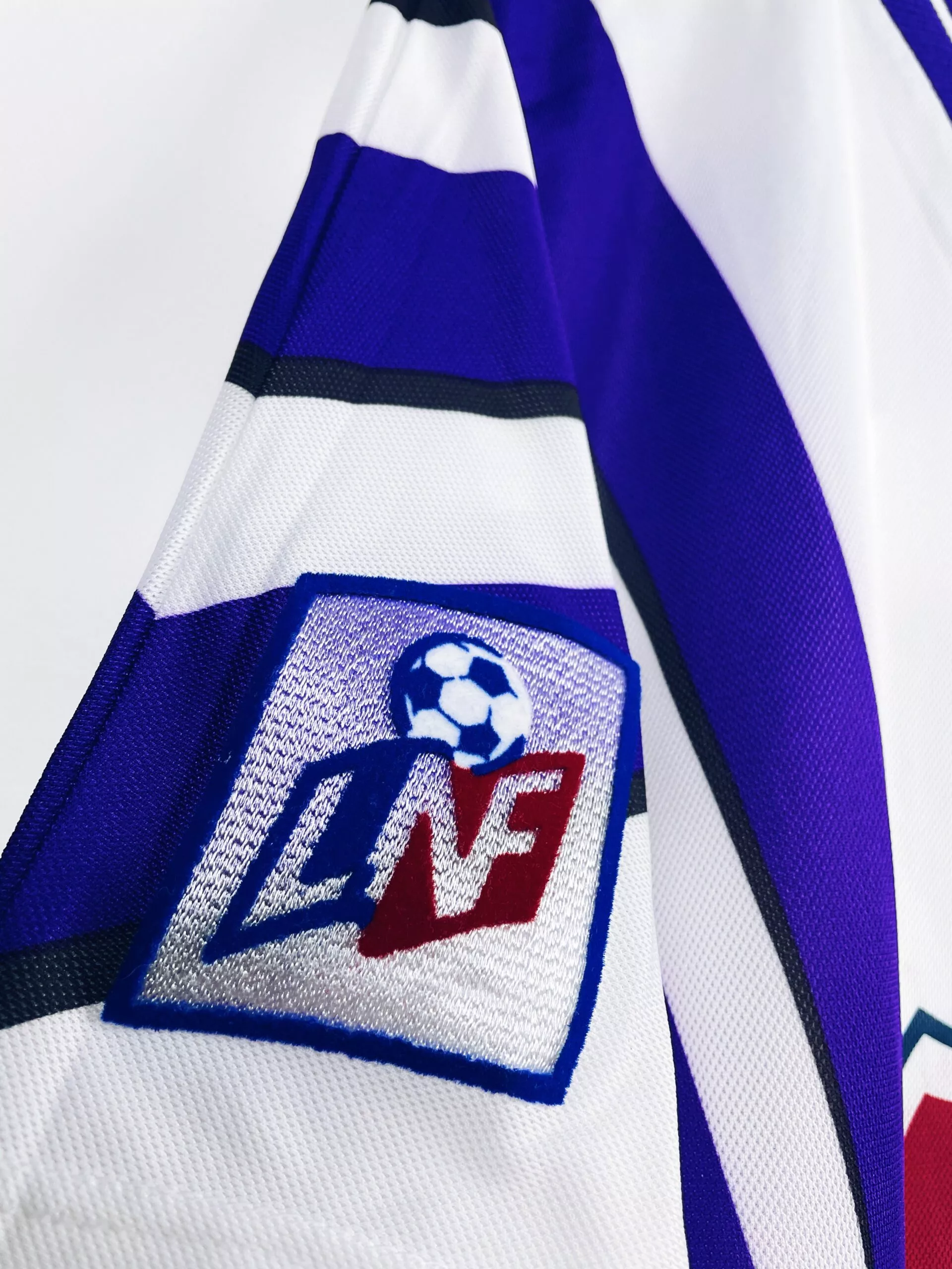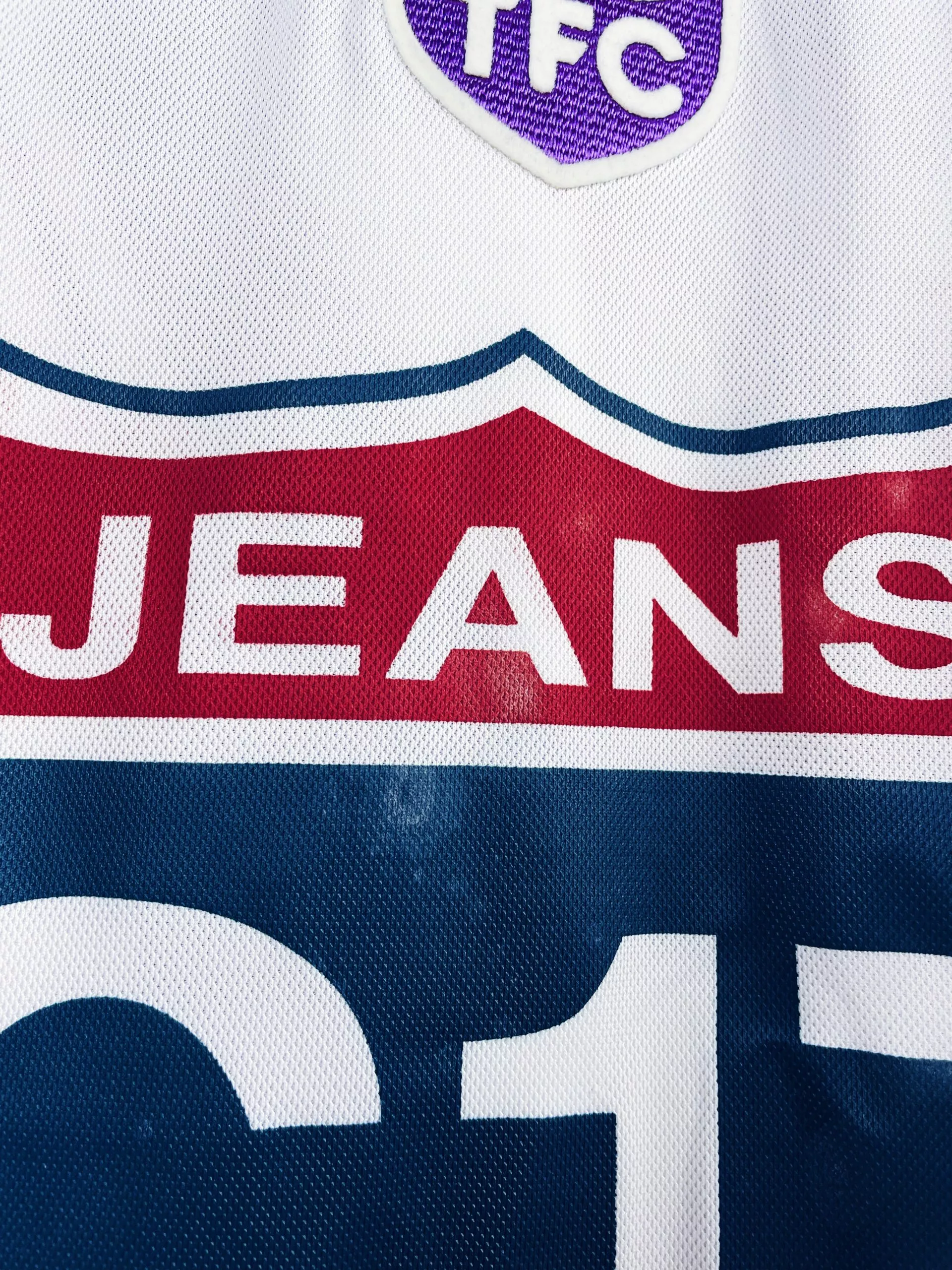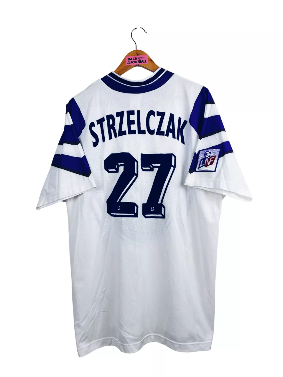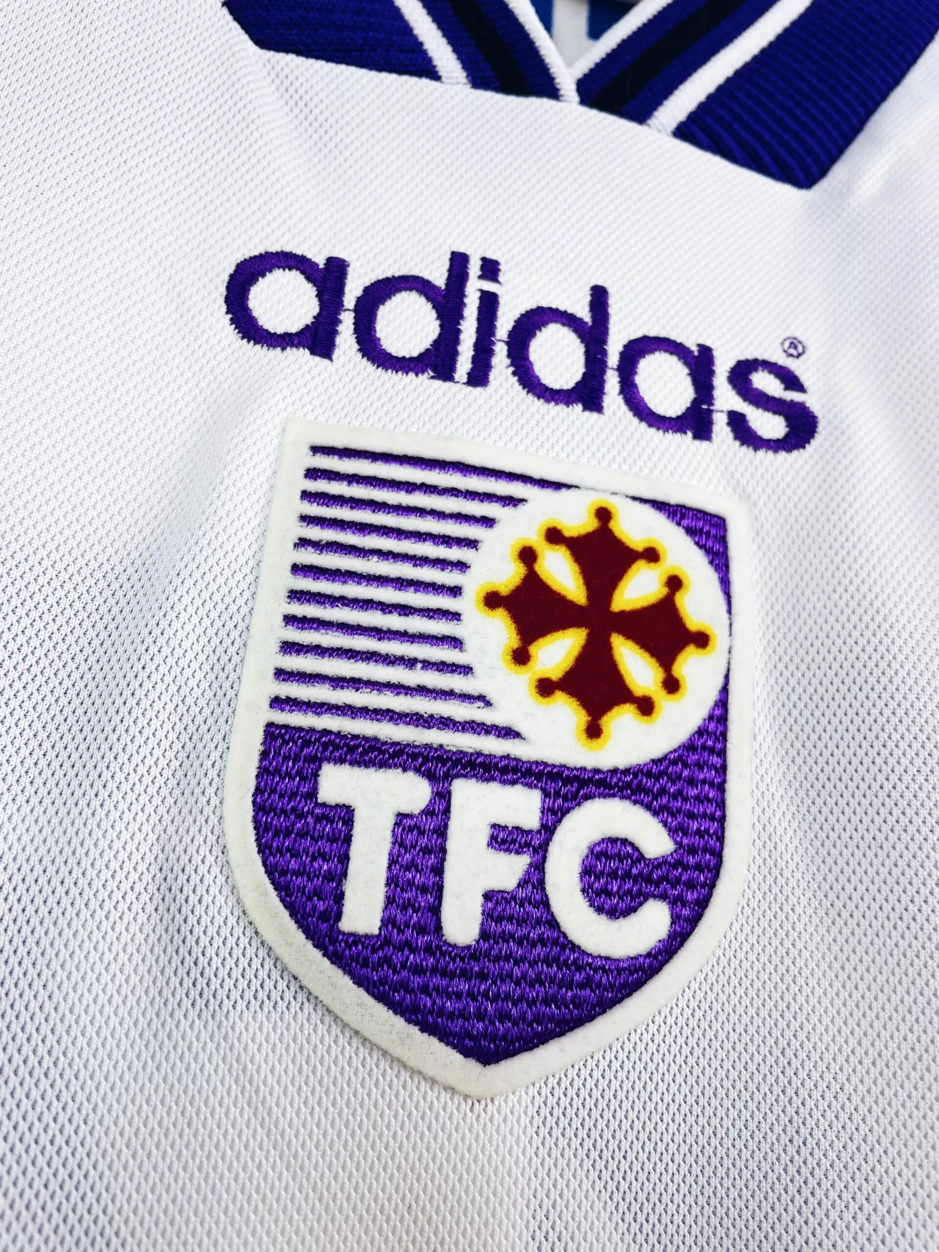 Taille : XL Si tu veux plus de détails, tu peux nous contacter par mail ou sur les réseaux 😉 Etat : 8/10, très bon état, minis traces sur le sponsor (voir photo) Le maillot : maillot vintage domicile du Toulouse FC 1997/1998 préparé (match issue) ou porté (match worn) par Strzelczak #27. L’écusson est en feutrine, le logo Adidas brodé, le sponsor Jeans C17 floqué et le patch LNF et Strzelczak #27 sont en feutrine. Très beau maillot rétro du TFC ! Histoire : c’est le template de la saison précédente mais porté en tout début de saison 97/98…