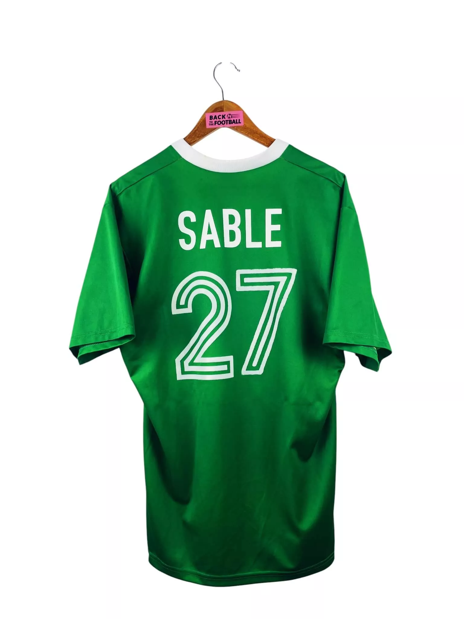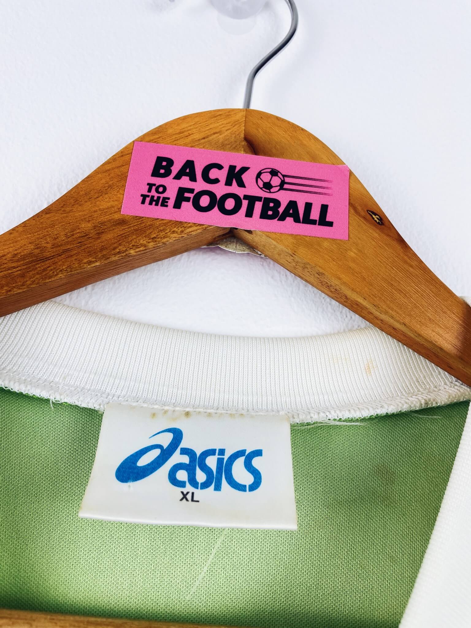 Taille : XL Largeur : 54cm (aisselle à aisselle) Longueur : 75cm (base du col au bas) Si tu veux plus de détails, tu peux nous contacter par mail ou sur les réseaux 😉 Etat : 8/10, très bon état mais une trace devant (voir photo). Le maillot sent un peu le renfermé, on n’a pas osé le laver. Le maillot : maillot vintage domicile de l’AS Saint-Etienne 1998/1999 porté (match worn) par Sablé #27. L’écusson, le logo Asics, le sponsor Casino et Sable sont floqués, le numéro 27 est en feutrine. Maillot utilisé lors d’un match de pré-saison. Récupéré…