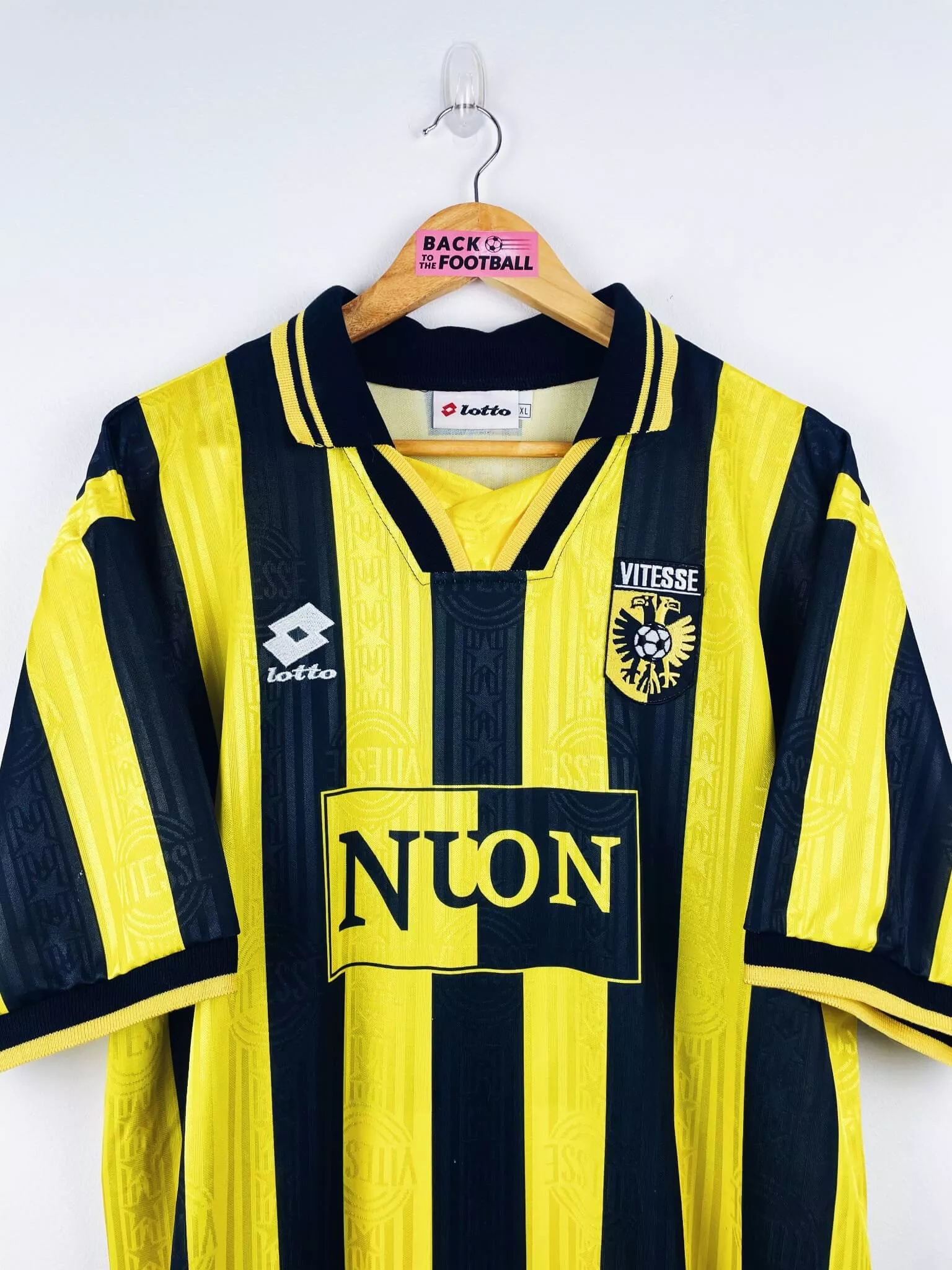 Taille : XL Largeur : 59cm (aisselle à aisselle) Longueur : 78cm (base du col au bas) Si tu veux plus de détails, tu peux nous contacter par mail ou sur les réseaux 😉 Etat : 9/10, excellent état. Sent un peu le renfermé, on n’a pas osé le laver. Le maillot : maillot vintage domicile Vitesse 1998/1999 porté (match worn) par Zeman #5 : logo Lotto et étiquette Lotto différents de la version boutique, flocage officiel Coupe d’Europe. Echangé avec un joueur bordelais en Coupe UEFA, défaite 0-1 du club hollandais lors du match aller à domicile. Maillot récupéré…