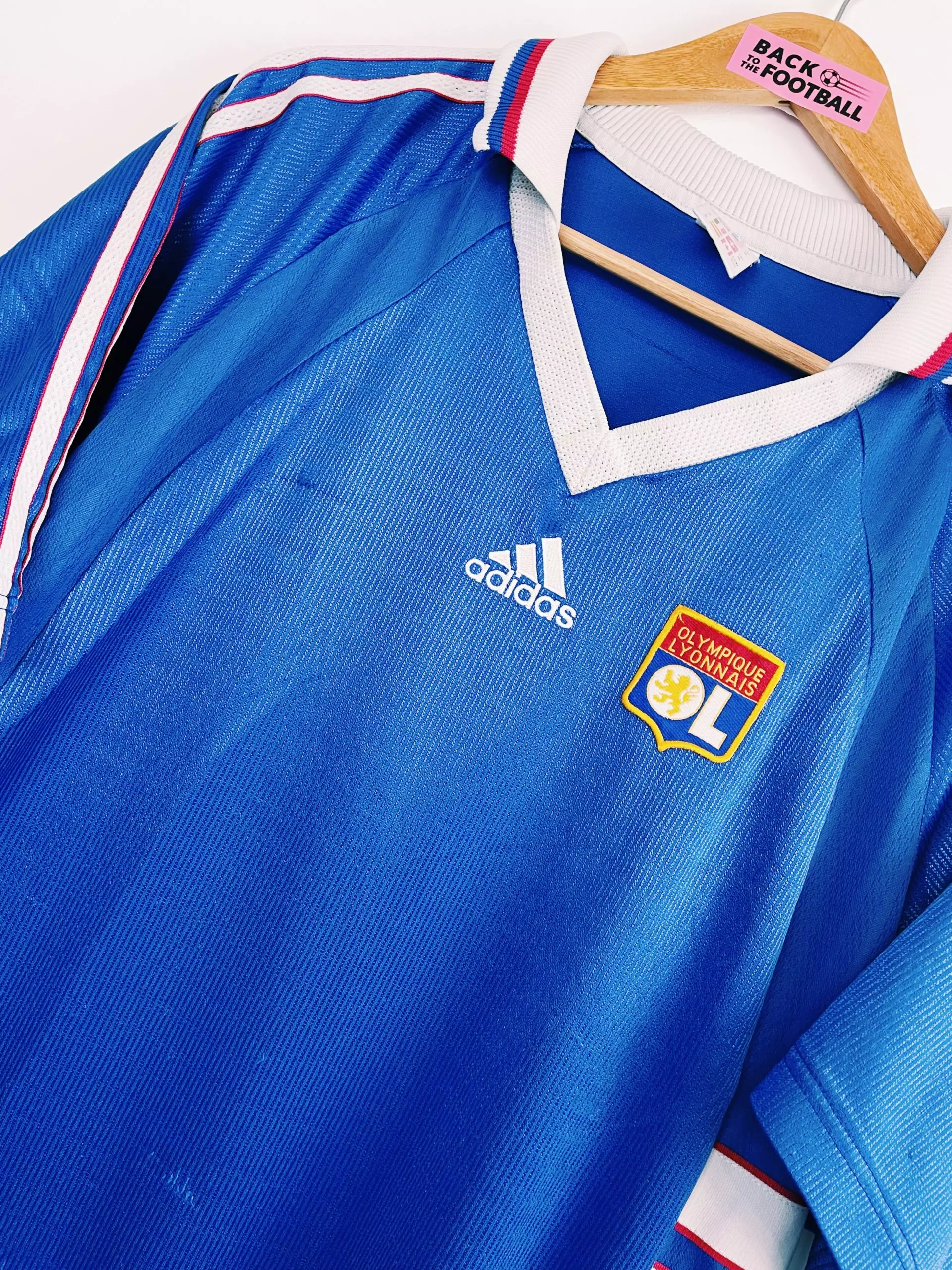 Taille : XL Etat : 6/10, des bouloches et de nombreux accrocs (voir photo). Sinon le reste est bien conservé. Le maillot : rare maillot vintage extérieur de l’Olympique Lyonnais 1998/2000. L’écusson et le logo Adidas sont brodés. Les bandes Adidas sur les côtés aussi. Un très beau maillot rétro de l’OL ! Histoire : 2 belles saisons pour l’OL qui termine à la 3ème place de Ligue 1. Sur la saison 98/99, les Gones iront jusqu’en quart de finale de la Coupe UEFA où ils perdront contre Bologne. Ils feront moins bien la saison d’après avec un seizième de…