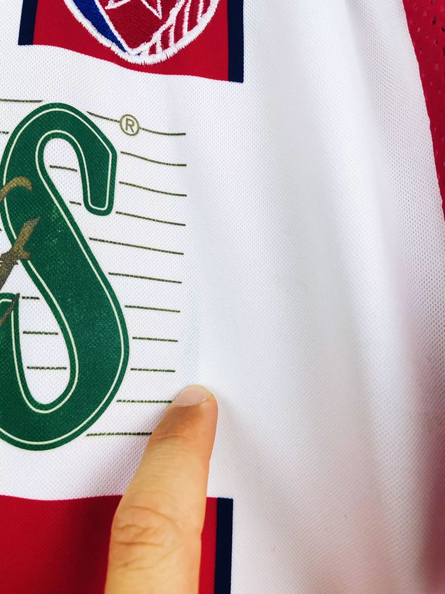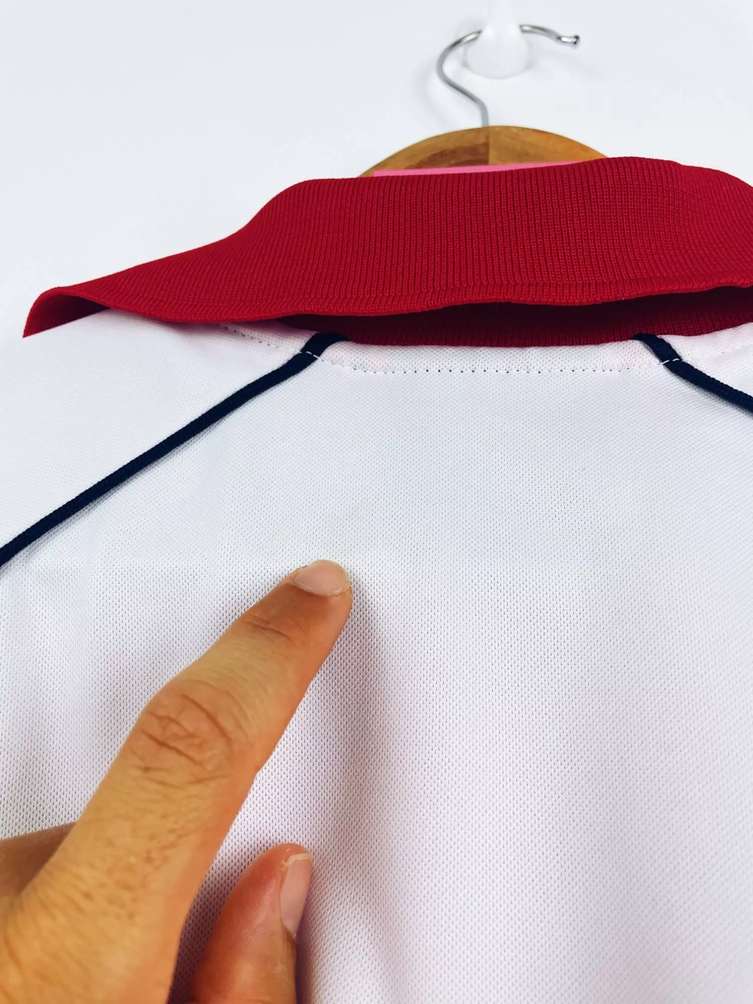 Taille : L Largeur : 54cm (aisselle à aisselle) Longueur : 74cm (base du col au bas) Si tu veux plus de détails, tu peux nous contacter par mail ou sur les réseaux 😉 Etat : 8/10, très bon état, minis traces à côté du sponsor et au dos, fils tirés en bas (voir photos) Le maillot : maillot vintage domicile du Red Star Belgrade 1998/2001. L’écusson et le logo Kappa sont brodés, le sponsor Pils est floqué. Très beau maillot rétro de l’Etoile Rouge de Belgrade ! Histoire : sur les trois saisons, le Red Star remporte 2 championnats et 2…