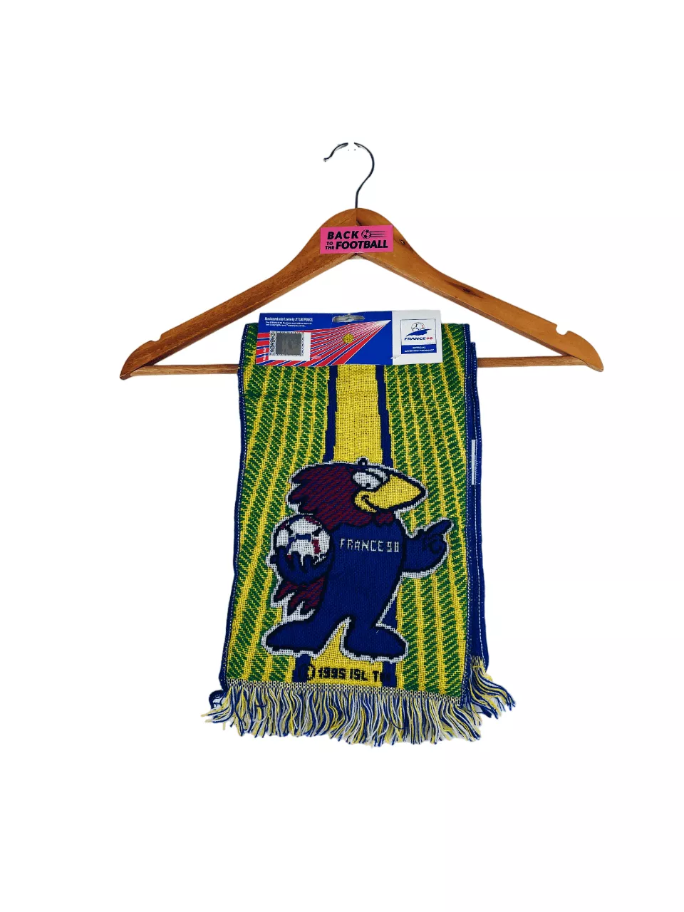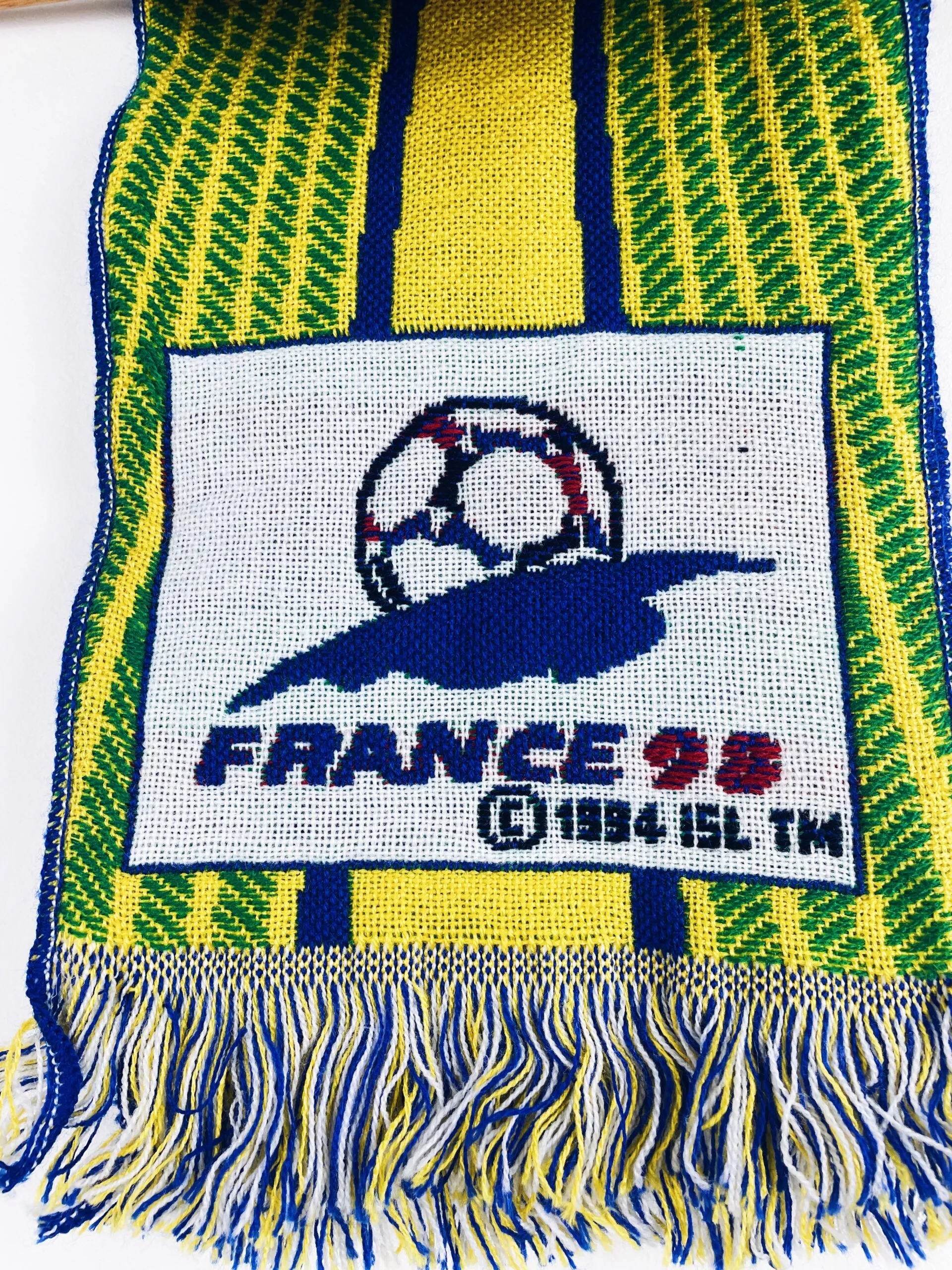 Etat : encore neuf avec étiquettes (BNWT) L’écharpe : écharpe vintage du Brésil 1998 pour la Coupe du Monde 98. Version officielle. Histoire : on connait bien l’histoire, avec la finale perdue 3-0 face aux français. Pourtant la Seleçao avait une sacré équipe : Cafu, Roberto Carlos, Dunga, Rivaldo, Leonardo, Denilson, Bebeto et Ronaldo…