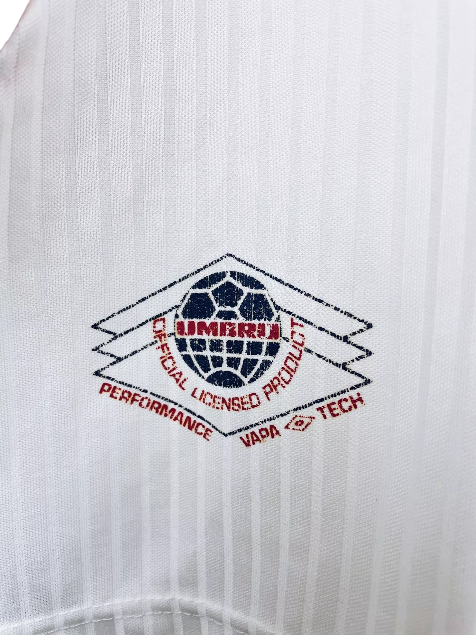 Un maillot vintage de l’Angleterre, ça te tente? Back To The Football t’a sélectionné la crème de la crème des maillots rétros de l’Angleterre. Chaque maillot de l’Angleterre est unique et authentique. Qui dit maillot d’époque dit stock limité, premier arrivé, premier servi !