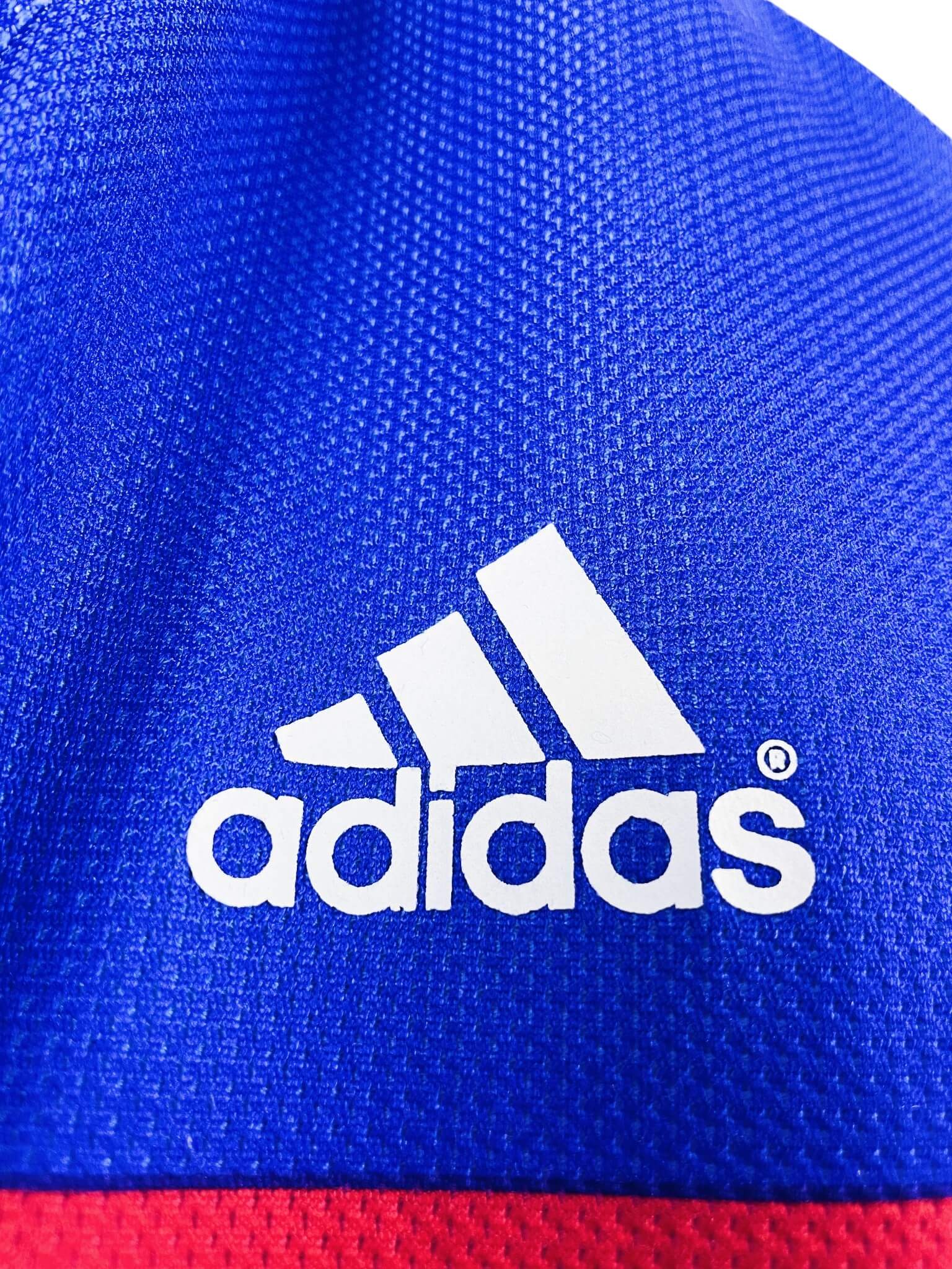 Taille : XL Largeur : 57cm (aisselle à aisselle) Longueur : 74cm (base du col au bas) Si tu veux plus d’infos, tu peux nous contacter par mail ou sur les réseaux 😉 Etat : 8/10, très bon état hormis une trace en bas et le numéro 2 très légèrement abimé (voir photos) Le maillot : maillot vintage domicile de l’équipe de France 1998 préparé (match issue) ou porté (match worn) par le #2 en espoirs : manches longues, logo Adidas floqué, écusson thermocollé, la police du numéro 2 correspond aux espoirs. Incroyable maillot rétro de l’équipe de France !…