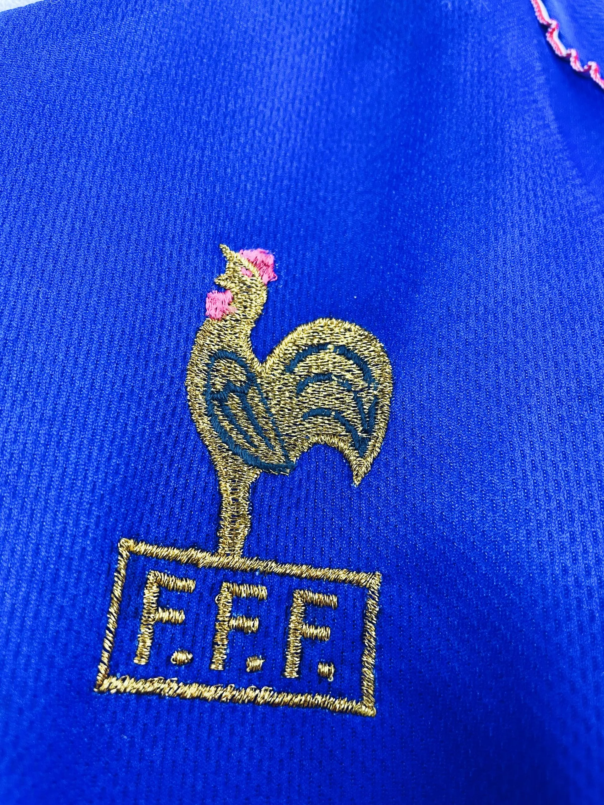 Tu cherches un maillot vintage de l’équipe de France? Tu connais la finale de la Coupe du Monde 1998 par coeur? Tu regardes les compilations des contrôles de Zidane sur Youtube? Tu penses souvent au poteau de Gignac? Ou à la volée de Kolo Muani? Puis tu penses au second poteau Pavard et ça va mieux? T’espères avoir une 3ème étoile? Alors tu devrais trouver ton bonheur parmi nos maillots de foot vintage de l’équipe de France.