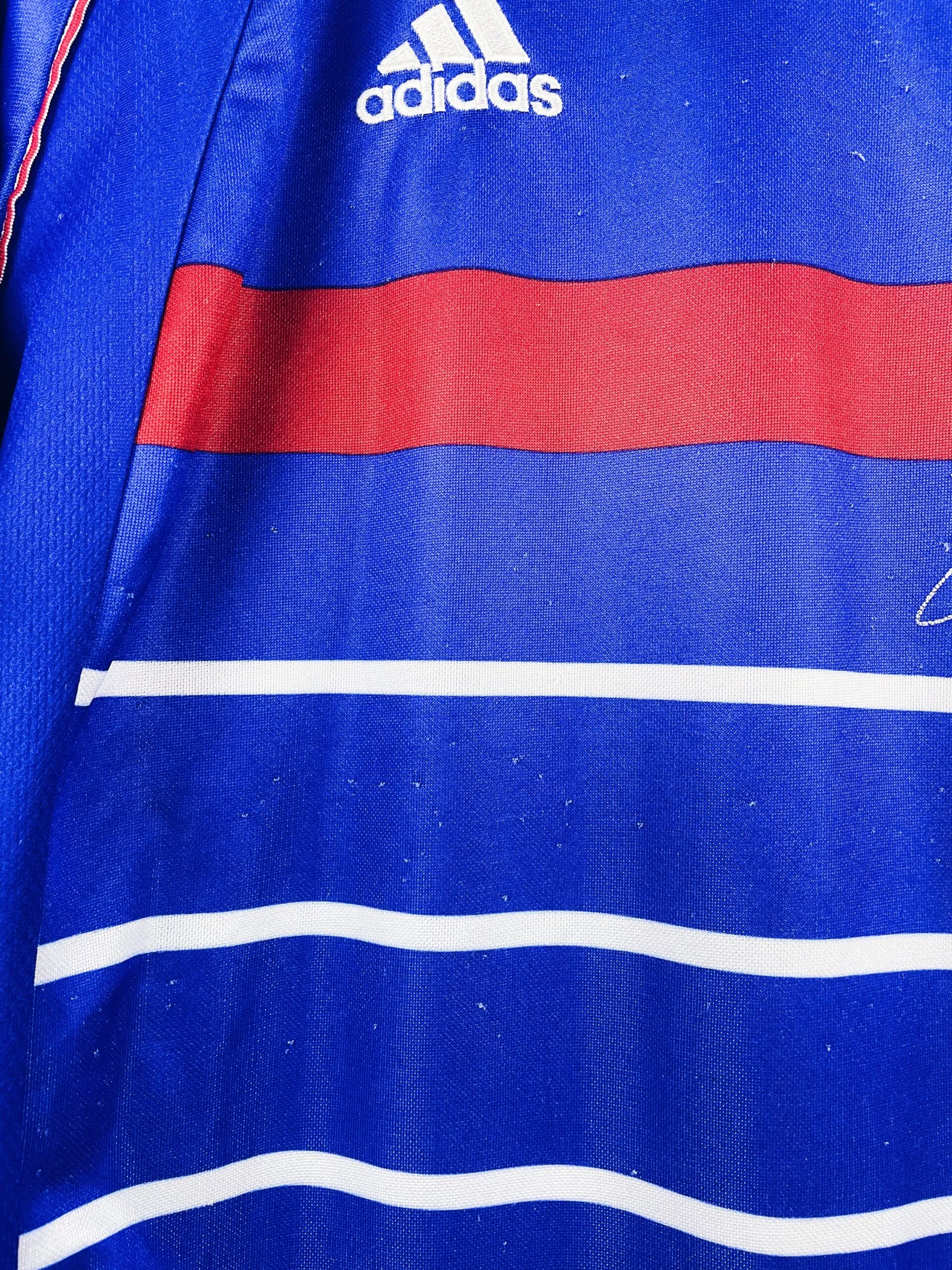 Tu connais la finale de la Coupe du Monde 1998 par coeur? Tu regardes les compilations des contrôles de Zidane sur Youtube? Tu penses souvent au poteau de Gignac? Puis tu penses au second poteau Pavard et ça va mieux? T’espères avoir une 3ème étoile? Alors tu devrais trouver ton bonheur parmi nos maillots de foot vintage de l’équipe de France. Et si t’as des pépites à vendre, on peut aussi racheter ton maillot collector des Bleus.