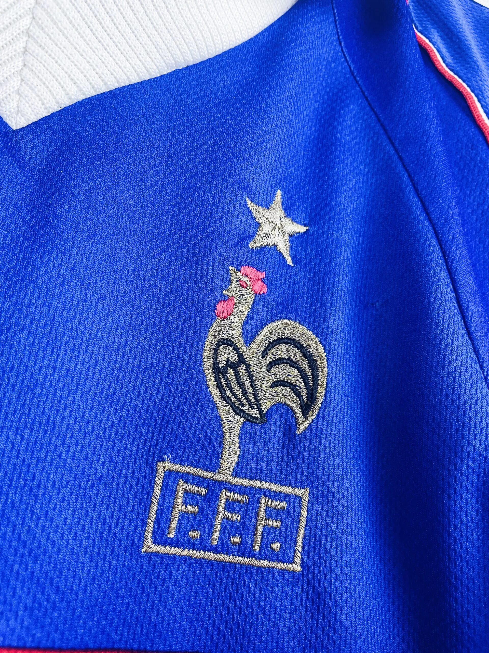 Tu cherches un maillot vintage de l’équipe de France? Tu connais la finale de la Coupe du Monde 1998 par coeur? Tu regardes les compilations des contrôles de Zidane sur Youtube? Tu penses souvent au poteau de Gignac? Ou à la volée de Kolo Muani? Puis tu penses au second poteau Pavard et ça va mieux? T’espères avoir une 3ème étoile? Alors tu devrais trouver ton bonheur parmi nos maillots de foot vintage de l’équipe de France.