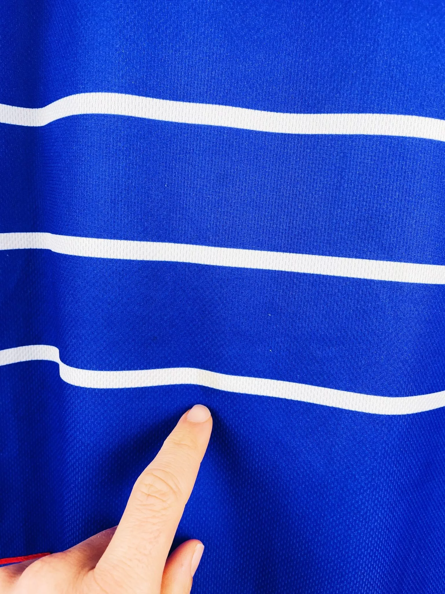 Tu connais la finale de la Coupe du Monde 1998 par coeur? Tu regardes les compilations des contrôles de Zidane sur Youtube? Tu penses souvent au poteau de Gignac? Puis tu penses au second poteau Pavard et ça va mieux? T’espères avoir une 3ème étoile? Alors tu devrais trouver ton bonheur parmi nos maillots de foot vintage de l’équipe de France. Et si t’as des pépites à vendre, on peut aussi racheter ton maillot collector des Bleus.