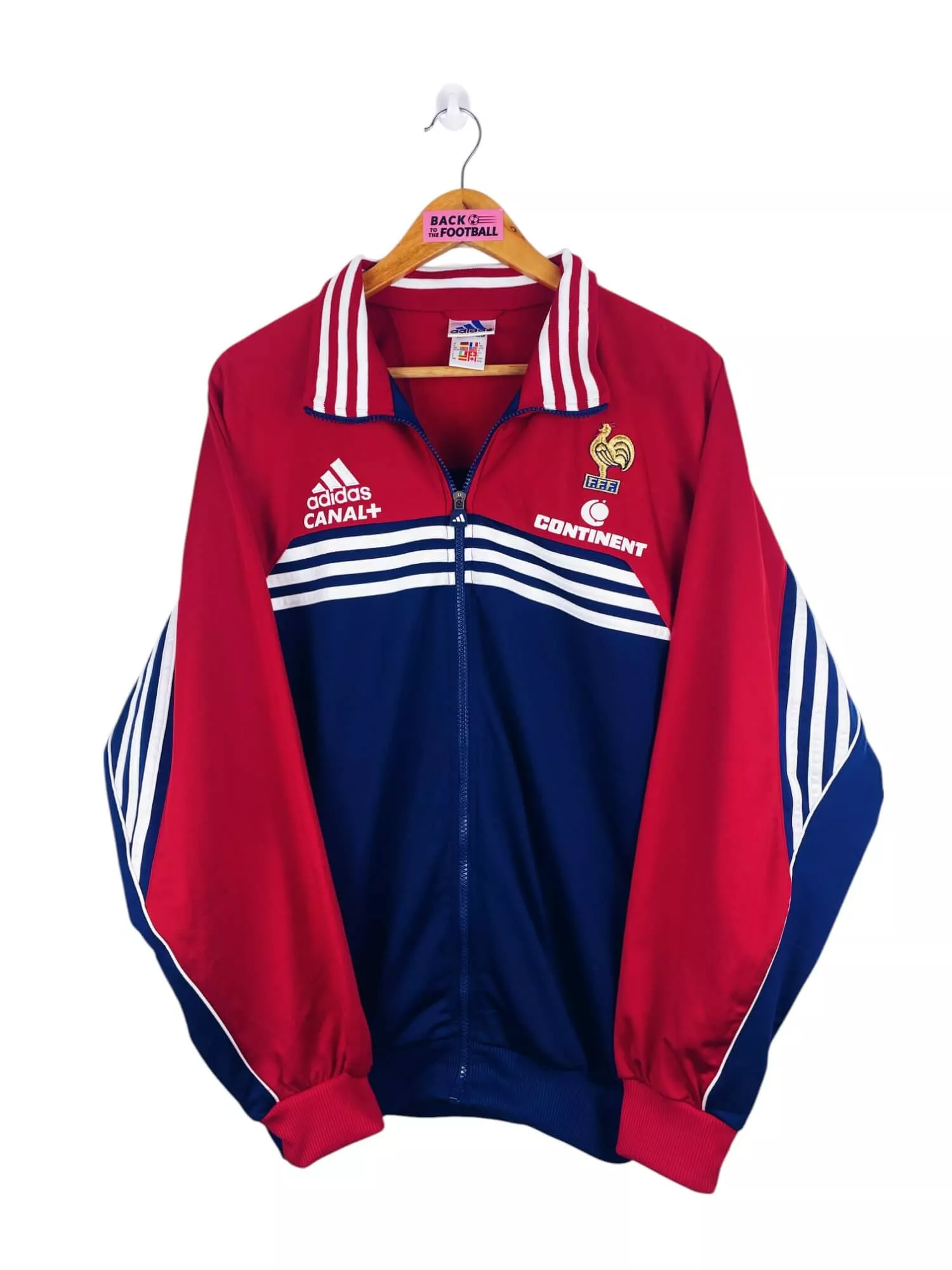 Taille : M Largeur : 57cm (aisselle à aisselle) Longueur : 70cm (base du col au bas) Si tu veux plus de détails, tu peux nous contacter par mail ou sur les réseaux 😉 Etat : 9/10, excellent état La veste : veste vintage de l’équipe de France 1998. Attention : il s’agit sûrement d’une veste vierge Adidas sur laquelle quelqu’un est venu posé les différents éléments comme l’écusson par exemple. L’écusson et le logo Adidas sont brodés. Les sponsors sont floqués. Très belle veste rétro de la France ! Histoire : la première étoile des bleus ! tout le…