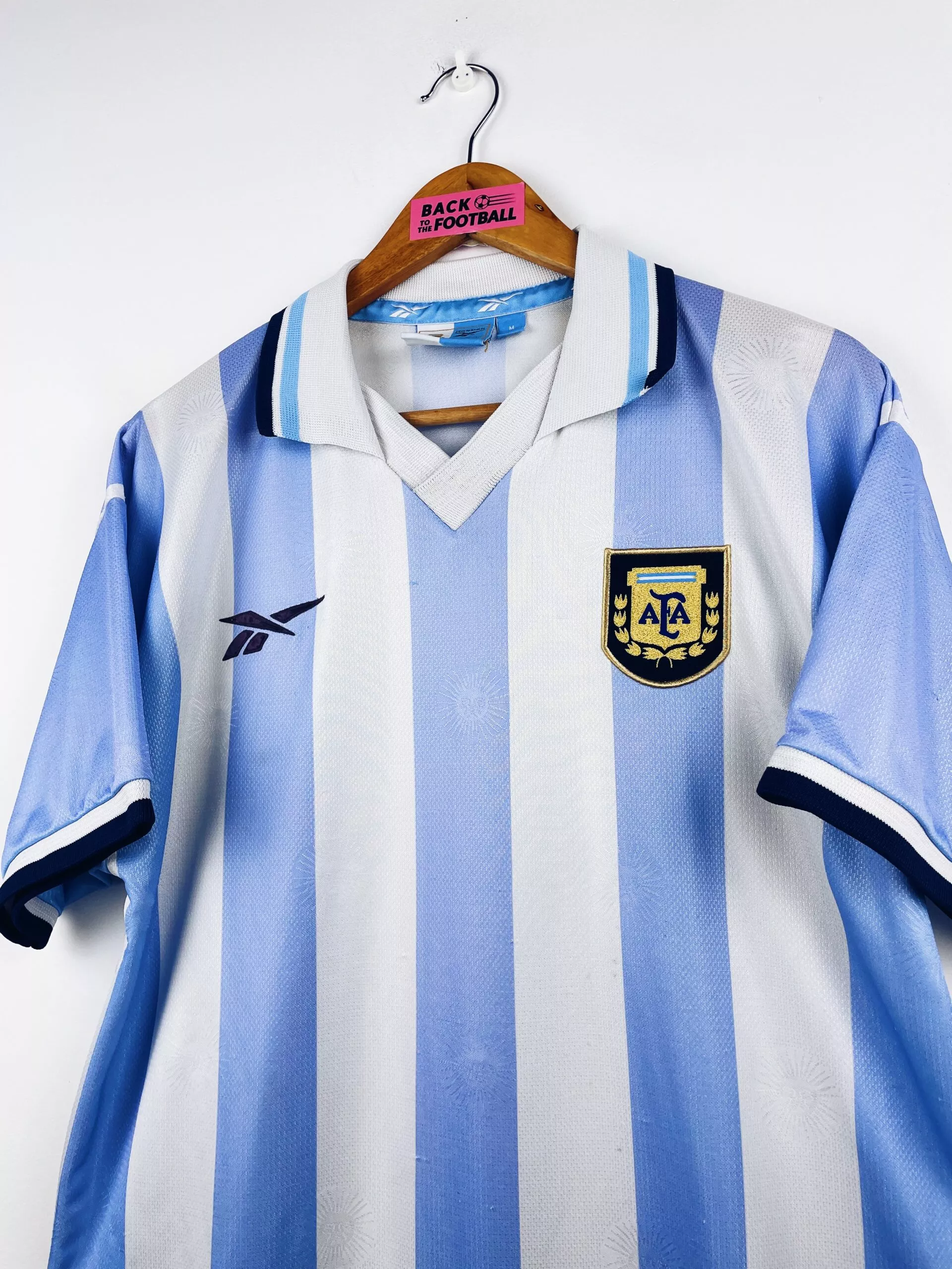 Tu cherches un maillot vintage de l’Argentine? Fan de l’Albiceleste? T’étais un/une des rares en France à être heureux le 18 décembre 2022? Tu as un tatouage de Maradona sur le coeur et un autre de Messi sur le mollet? Tu as une coupe mulet? Alors tu trouveras forcément ton bonheur parmi les maillots vintage de l’Argentine de Back To The Football.