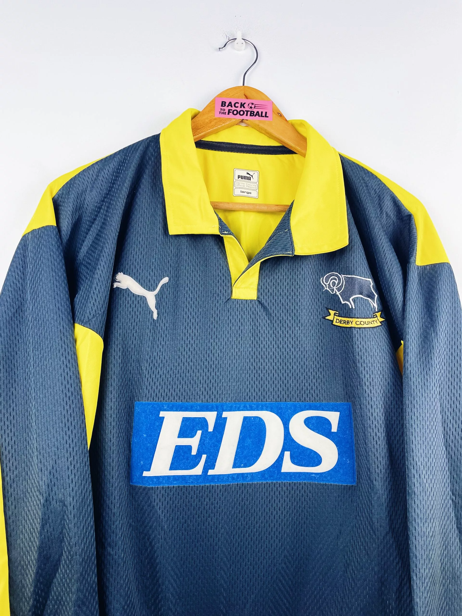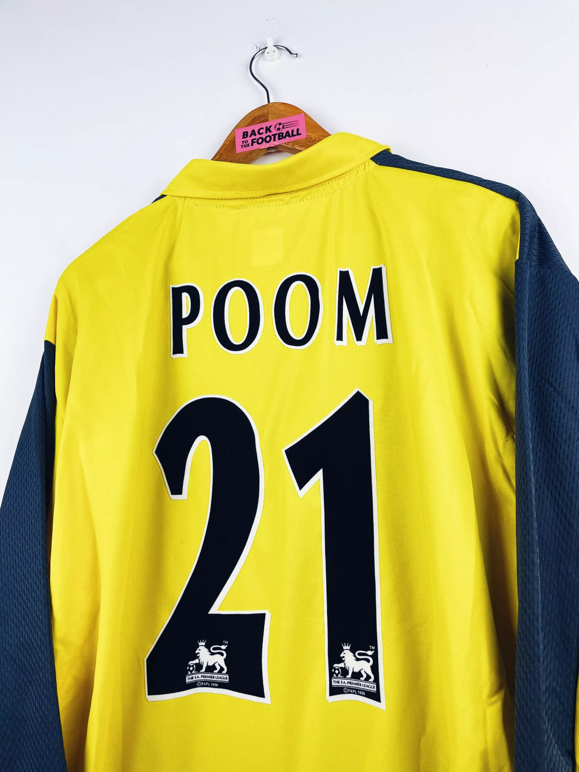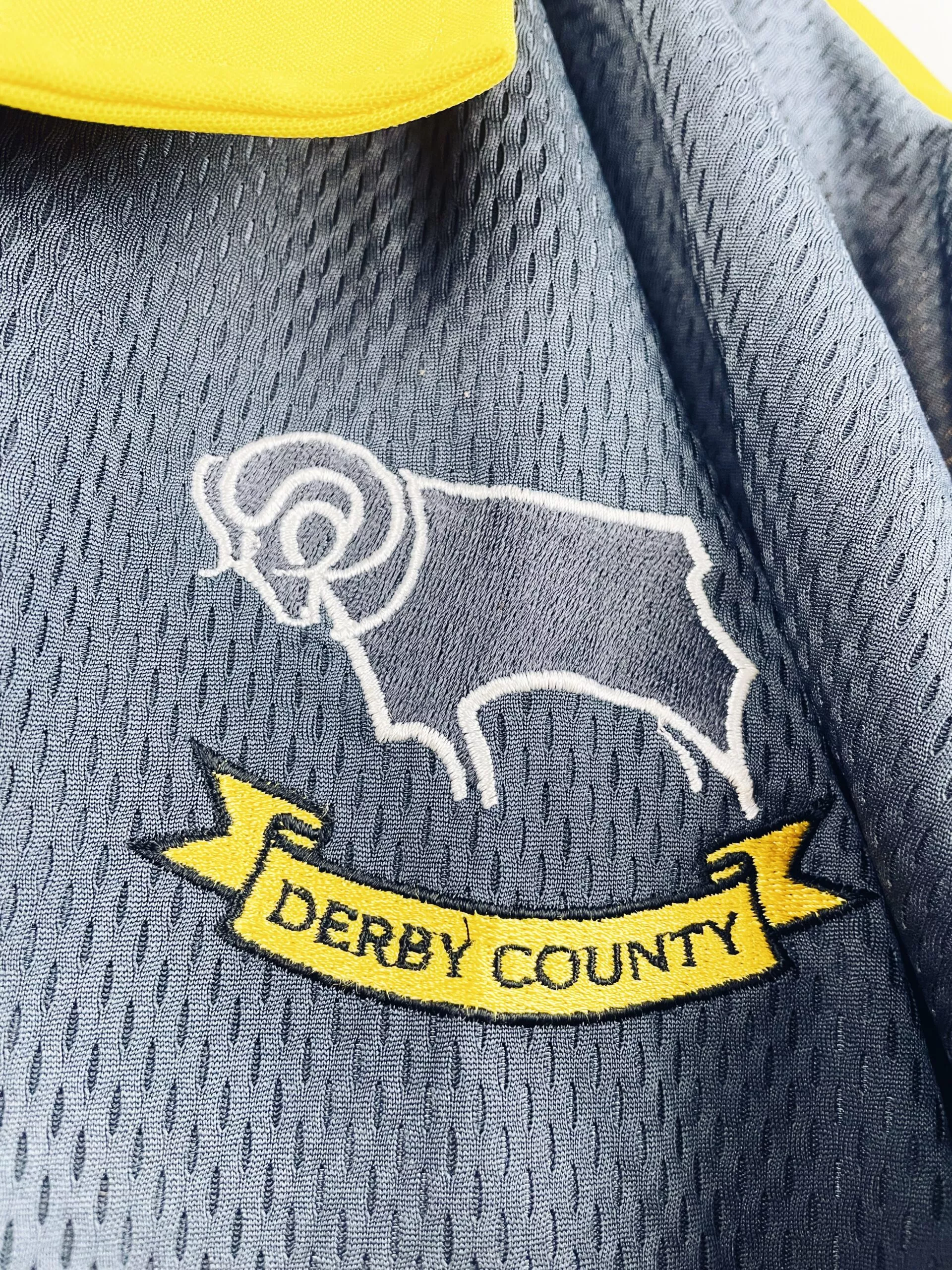 Taille : L Si tu veux plus de détails, tu peux nous contacter par mail ou sur les réseaux 😉 Etat : 8.5/10, excellent état Le maillot : maillot vintage gardien de Derby County 1999/2001 manches longues floqué Poom #21. L’écusson est brodé, le logo Puma, le sponsor et Poom #21 sont en feutrine. Très beau maillot rétro de Derby County ! Histoire : Derby County se sauve de justesse en Premier League. Les Rams seront vite éliminés en coupes. Mart Poom jouera 29 matchs cette saison.