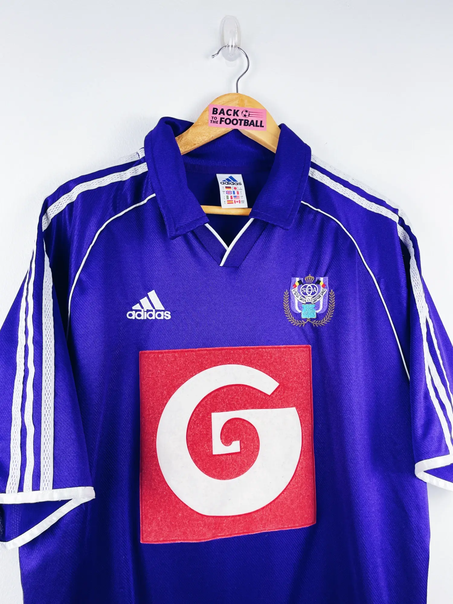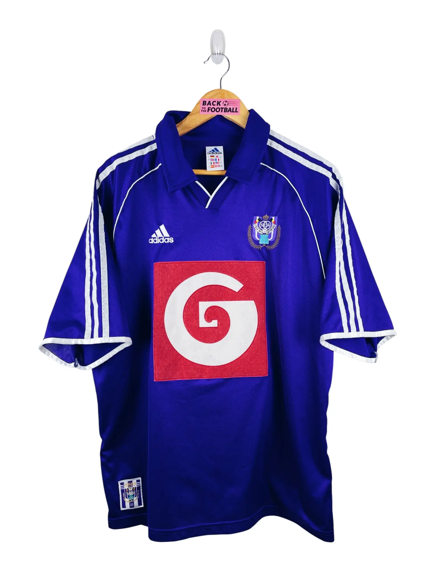 Taille : L Largeur : 58cm (aisselle à aisselle) Longueur : 73cm (base du col au bas) Si tu veux plus de détails, tu peux nous contacter par mail ou sur les réseaux 😉 Etat : 8.5/10, excellent état, quelques légers accrocs (voir photos) Le maillot : maillot vintage extérieur d’Anderlecht 1999/2000. L’écusson et le logo Adidas sont brodés, le sponsor est en feutrine. Très beau maillot rétro d’Anderlecht ! Histoire : grosse saison du RSC d’Anderlecht qui fait le doublé championnat / la Coupe de la Ligue belge.